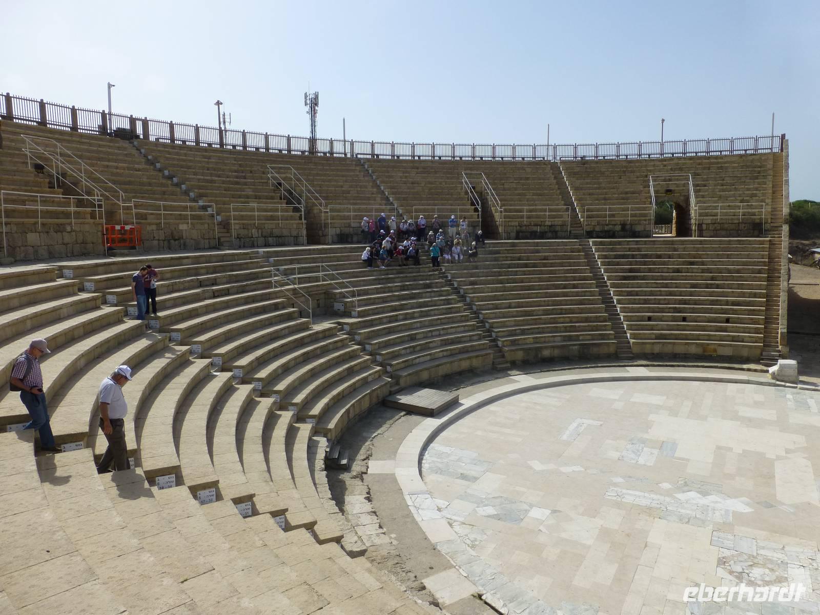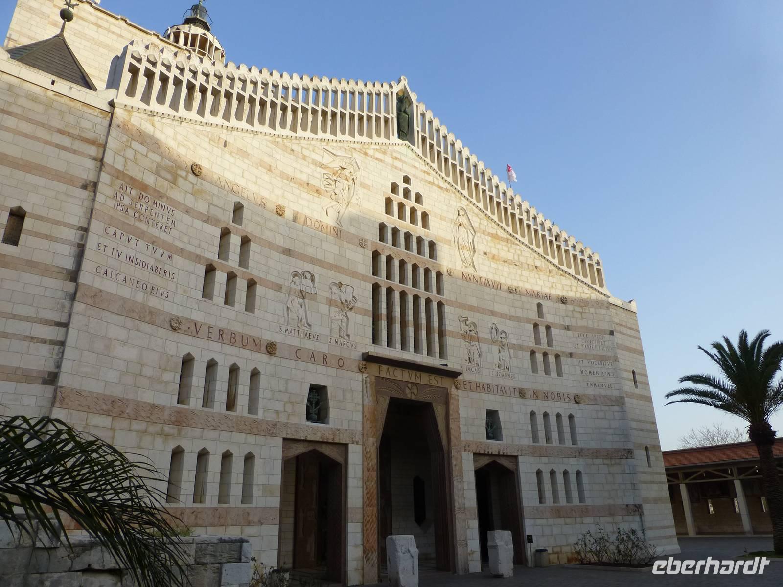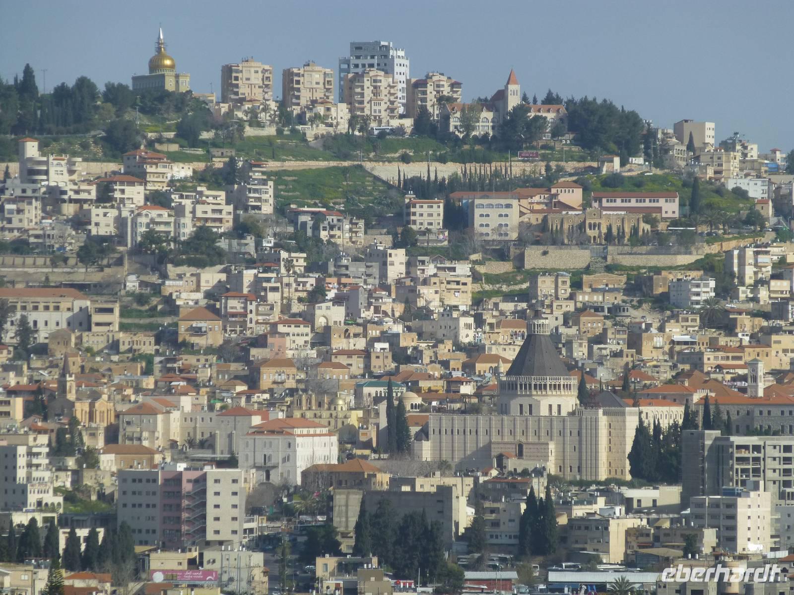 Nach einem guten Frühstück auf der Dachterrasse unseres Hotels verlassen wir Tel Aviv Richtung Norden. Die Stadt wurde nach einer Idee von Theodor Herzl gebaut, er war der Begründer des Zionismus. Der Name Tel Aviv bedeutet „Hügel des Frühlings". Vorbei an Herzelya, benannt nach Herzl erreichen wir die alte Stadt Cäsarea. Die von Herodes dem Großen von 22 - 10 v.Chr. ausgebaute Hafenstadt lässt uns noch heute ihre einstige Größe spüren. Zuerst sehen wir einen kurzen Film, welcher eine geschichtliche Einordnung ermöglicht. Das gewaltige Amphitheater bestaunen wir Ehrfürchtig und Adi erklärt uns den Auf- und Niedergang der Stadt. Nicht nur Herodes genoss die Vorzüge hier, sondern zum Beispiel auch der römische Statthalter Pontius Pilatus, er wohnte in dem von Herodes errichtetem Palast. Immer wieder wurde die Stadt von Kriegen und Eroberungen erschüttert aber auch durch ein Erdbeben verwüstet. Viele Israelis nutzen den heutigen freien Tag, es ist Sabbat, den Ruhetag der Juden, um mit Ihren Kindern das Hippodrom zu besuchen. Für Kinder wird hier eine ganze Menge geboten, manche kommen kostümiert, denn es ist immer noch Fasching. Nach dem Ende unseres Rundgangs fahren wir weiter nach Zippori. Die alte Stadt Sepphoris befindet sich auf einem Hügel und war früher eine der wichtigsten Handelsstädte der Region sowie eine Zeit lang auch Hauptstadt von Galiläa. Der Name kommt vom aramäischen Wort Hauptstraße mit einer Kreuzung, so dass alle vier Himmelsrichtungen angesteuert werden können. Alle römischen Städte waren so gebaut. Das hatte vor allem eine strategische Bedeutung. So konnte sich der neu stationierte Soldat sofort in der Stadt orientieren, auch wenn er gerade erst einen Tag hier weilte. Von großer Bedeutung sind die hier gefundenen Mosaiken. Zum einem im „Nilhaus" und zum anderen das in einer alten Villa gefundene „Antlitz der Mona Lisa". Nicht weit entfernt befindet sich die Stadt Nazareth. Sie liegt am Nordrand der Israel-Ebene und ist die größte arabische Stadt in Israel. Nach einer Stärkung mit Falafel, besuchen wir die Verkündigungskirche. Nach biblischer Überlieferung empfing Maria hier durch Erzengel Gabriel die Nachricht das Sie einen Sohn gebären wird und Jesus selbst verbrachte hier seine Kindheit und Jugend. Die heutige monumentale Kirche aus dem Jahre 1969 ist sehr beeindruckend und der größte christliche Bau im Nahen Osten. Mir persönlich gefällt vor allem die Gestaltung der Eingangstüren und auch ein Teil er Mosaiken im Kreuzgang. Auf dem gleichen Gelände findet sich auch die St. Josefs Kirche, eine dreischiffige Basilika. An dieser Stelle verehrt man die Werkstatt Josephs, er war ein Tischler und Zimmermann und hat wahrscheinlich an dieser Stelle gelebt. In der Unterkirche kann man verschiedene Grundmauern mit 2000 jähriger Vergangenheit sehen. Ebenfalls sehen wir eine Mikwe, ein im Judentum gebräuchliches Tauchbad mit fließendem Wasser welches der rituellen Reinigung dient.