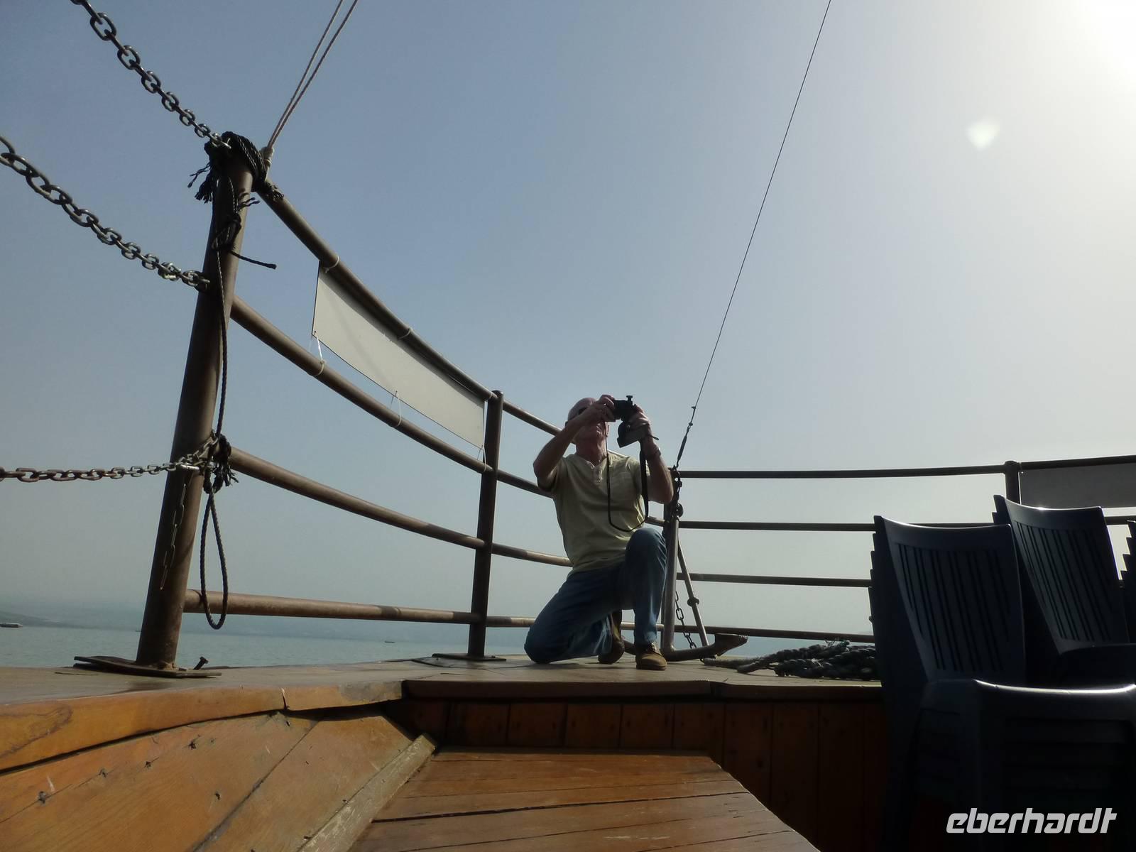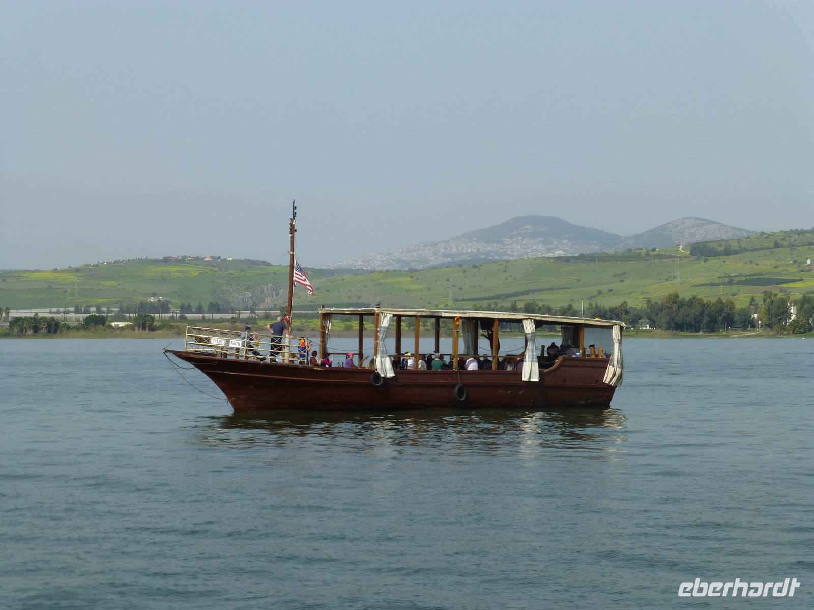 Am Morgen scheint wie auch gestern bereits wieder die Sonne. Wir fahren zum See Genezareth und passieren auf der Fahrt auch das, in der Bibel erwähnte Dorf Kanaan. Zuerst unternehmen wir eine kleine Bootsfahrt auf dem See Genezareth, welche uns einen guten Überblick über die Lage der biblischen Stätten hier gibt. Der „Berg der Seligpreisung" ist danach unser erstes Ziel. Der Überlieferung nach hat Jesus hier vor einer großen Zahl an Menschen seine Worte der Seligpreisungen gesprochen. Besser bekannt als die Bergpredigt. Zu finden unter Matthäus, Kapitel 5.1. Natürlich nutzen auch wir die Bibel um an diesen geschichtsträchtigen Orten selbige lebendig werden zu lassen. Nur wenige Minuten entfernt findet sich die Brotvermehrungskirche. An dieser Stelle soll Jesus mit nur zwei Fischen und fünf Broten 5000 Menschen gespeist haben. Auch hier findet sich die entsprechende Stelle in der Bibel. Nur ein kurzes Stück entfernt findet sich Kapernaum. In diesem Dorf hielt sich Jesus auf und es finden sich hier beeindruckende Reste einer Synagoge. Auch findet man hier einen, zumindest bildlichen, Hinweis auf die Bundeslade. Zum Mittagessen bekommen wir heute den traditionellen St. Peter Fisch serviert. Anschließend führt uns die Fahrt über einen Teil der Golanhöhen zur Banjas-Quelle. Der Jordan, wichtigster Fluss Israels und Jordaniens wird von drei Quellen gebildet. Die anderen beiden sind die Dan-Quelle und die Hermon-Quelle. Neben der Quelle befand sich hier ein Heiligtum für den Gott Pan. Wir nutzen den kleinen angelegten Rundweg und freuen uns dabei über die zahlreichen wilden Blumen. Der Weg zurück nach Nazareth führt uns noch in die kleine Stadt Metula. Sie liegt direkt an der Grenze zu Libanon. Es ist schon ein etwas sonderbares Gefühl an so einem Grenzzaun zu stehen und auf der libanesischen Seite eine Patrolie der UNO zu beobachten. Vom Aussichtspunkt Dado, benannt nach einem General aus dem Jom Kippur Krieg 1973, können wir auch das schneebedeckte 2814 m hohe Bergmassiv Hermon sehen, aber auch die zahlreichen blühenden Obstbäumen in der Ebene. Zurück im Hotel lassen wir uns das Abendessen schmecken.