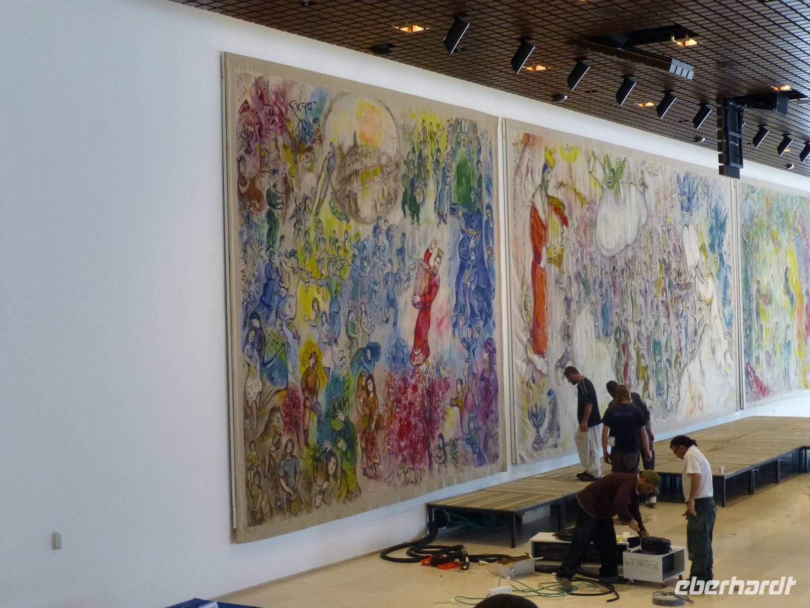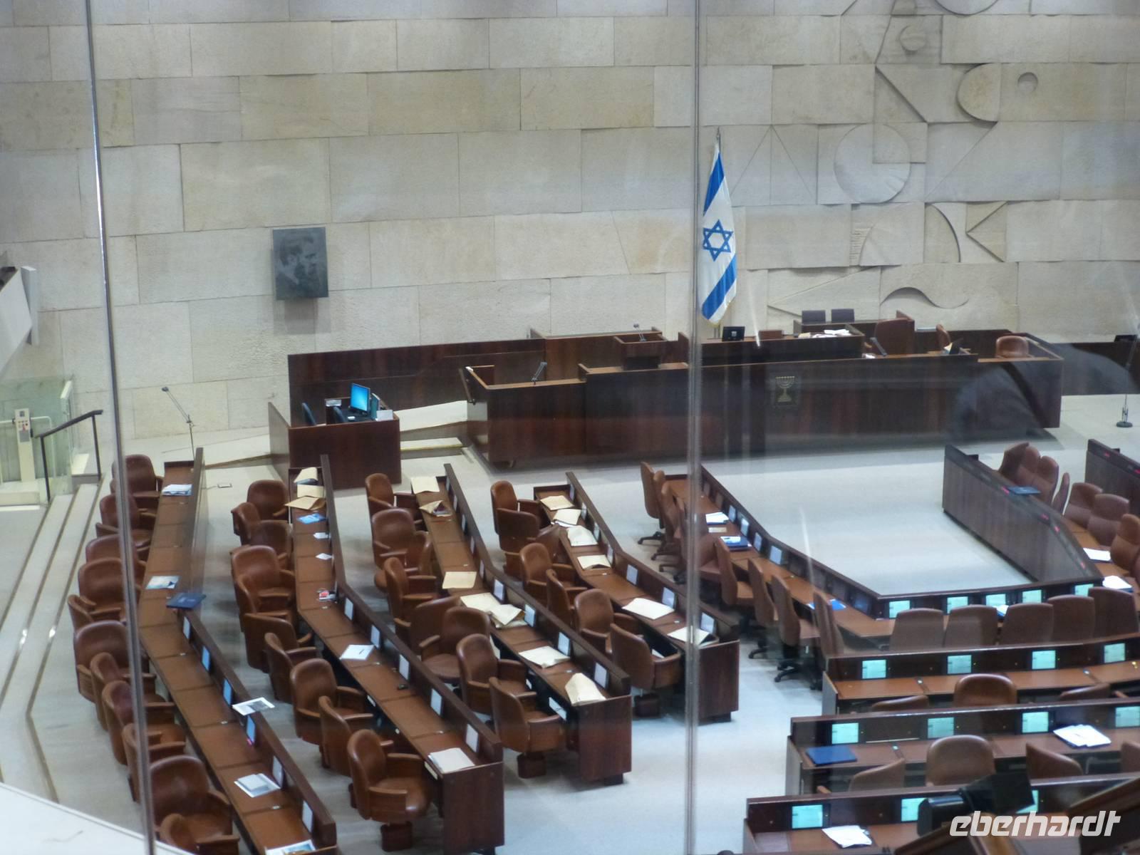 Nun steht das heutige Israel auf unserem Programm. Wir sind für einen Besuch in der Knesset, dem israelischen Parlament, angemeldet. Nach einer kleinen Sicherheitskontrolle werden wir von Robert, einem aus Hessen stammenden Studenten, empfangen. Er führt uns durch die Knesset und macht es möglich, dass wir fast alle Bereiche besuchen können. Natürlich den Plenarsaal, einen Ausschussraum und auch das Fernsehstudio. Die Wandteppiche von Chagall können wir nur von der Seite sehen, in diesem Bereich wird gearbeitet. Er berichtet aber auch sehr unterhaltsam über den Politikbetrieb im Parlament. Nach einer guten Stunde verlassen wir das Hohe Haus wieder. Auf dem Weg zum Bus werden wir noch damit überrascht, dass der Premierminister Benjamin Netanjahu mit dem Hubschrauber landet und mit seinem Konvoi an uns vorüber fährt. Wir fahren weiter zur Gedenkstätte Yad Vashem. Hier gedenkt man all der jüdischen Opfer des zweiten Weltkrieges. Wir sind in der sehr bedrückenden Gedenkstätte für die 1,5 Mio. ermordeten Kinder, in der Halle der Erinnerung mit dem ewigen Feuer und gehen auch über Allee der Gerechten, wo Nichtjuden gedacht wird welche sich für das Leben von Juden einsetzten. Am bekanntesten ist für uns hier Oskar Schindler. Abschließend führt der Rundgang durch eine Ausstellung über den Holocaust. Auch wenn wir mit der Geschichte recht gut vertraut sind berührt die Gedenkstätte immer wieder. Eigentlich wäre jetzt unser Programm beendet gewesen, aber wir hatten schon am Vortag den Wunsch noch einmal in die Altstadt zurück zu kehren um durch den Basar zu gehen. Adi bringt uns zum Jaffa Tor, wo der Basar auch gleich beginnt und so findet mancher ein Erinnerungsstück an diese Reise. Nach einer guten Stunde holt uns Adi an gleicher Stelle wieder ab, wir fahren zurück ins Hotel und genießen die hervorragende Küche des Kibbuz Ramat Rachel zum Abendessen.