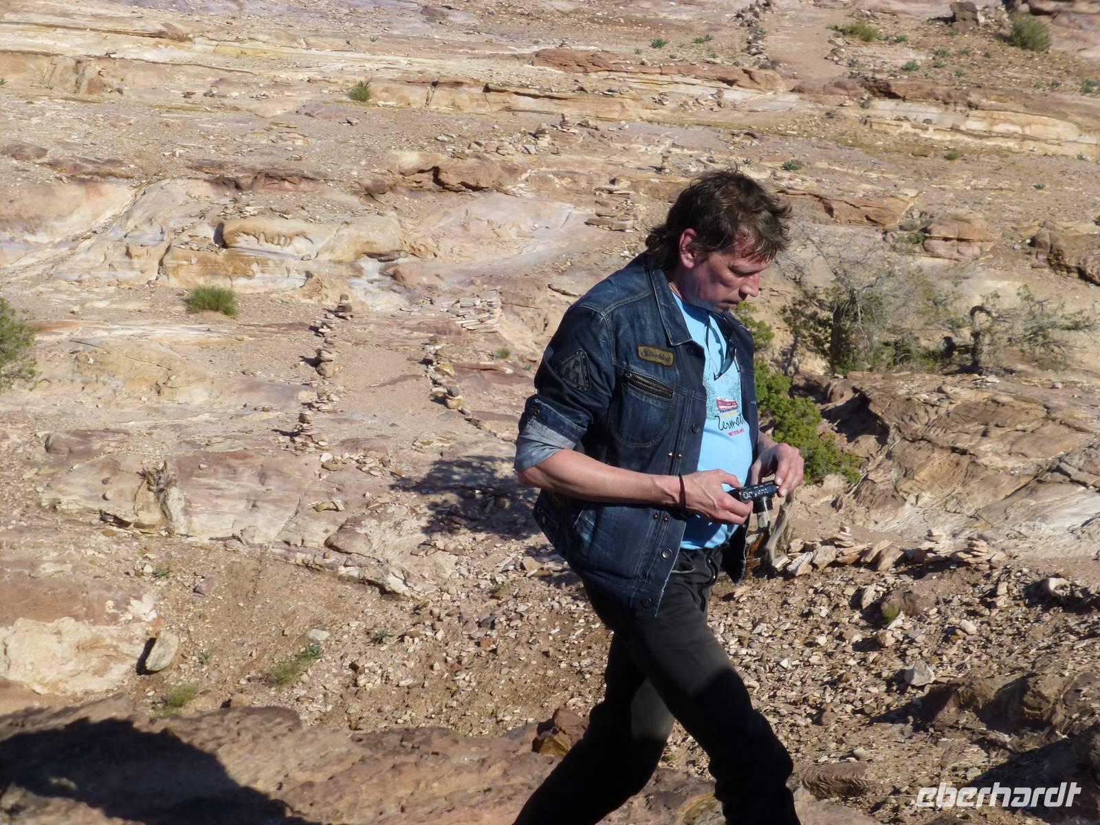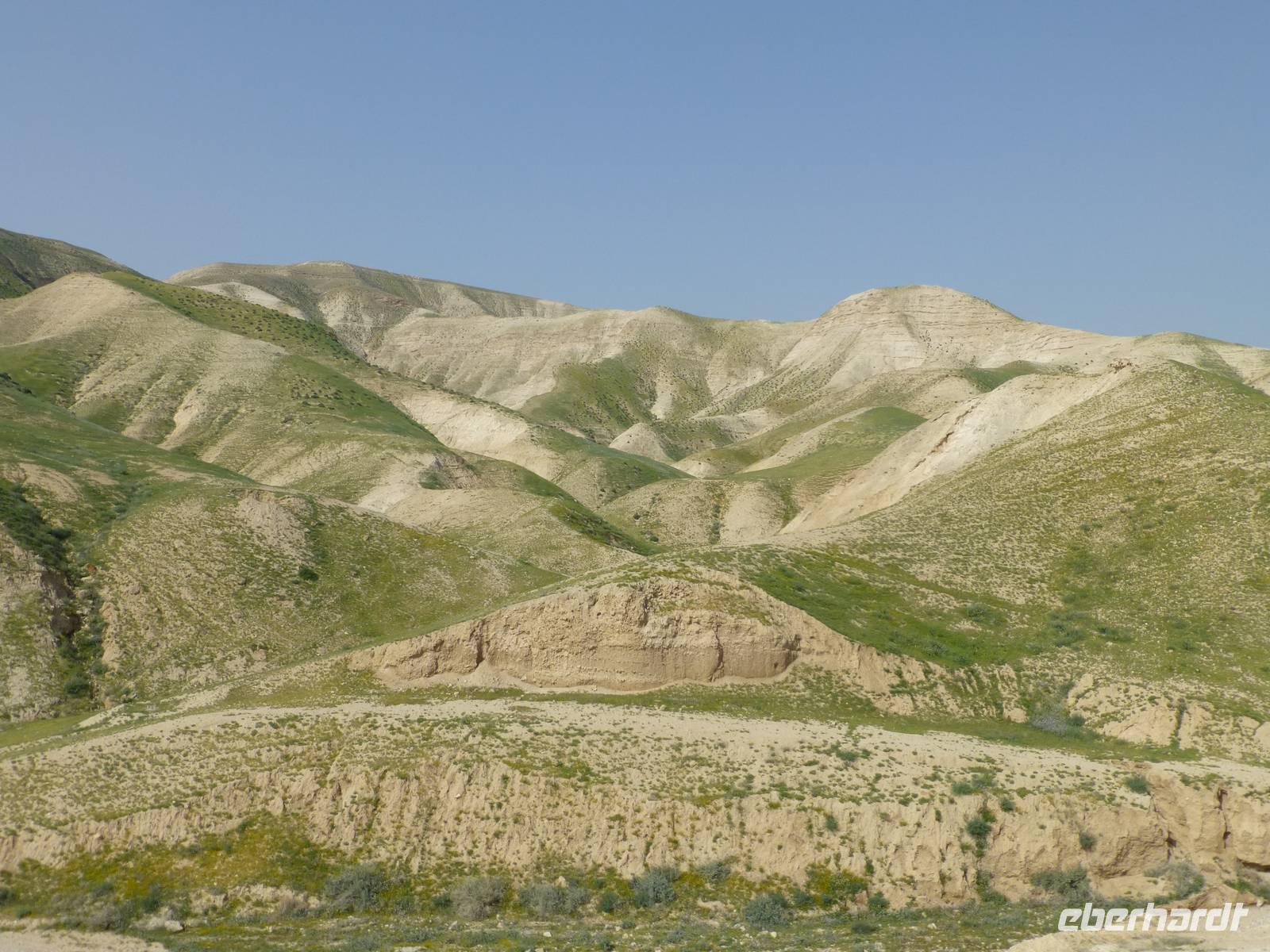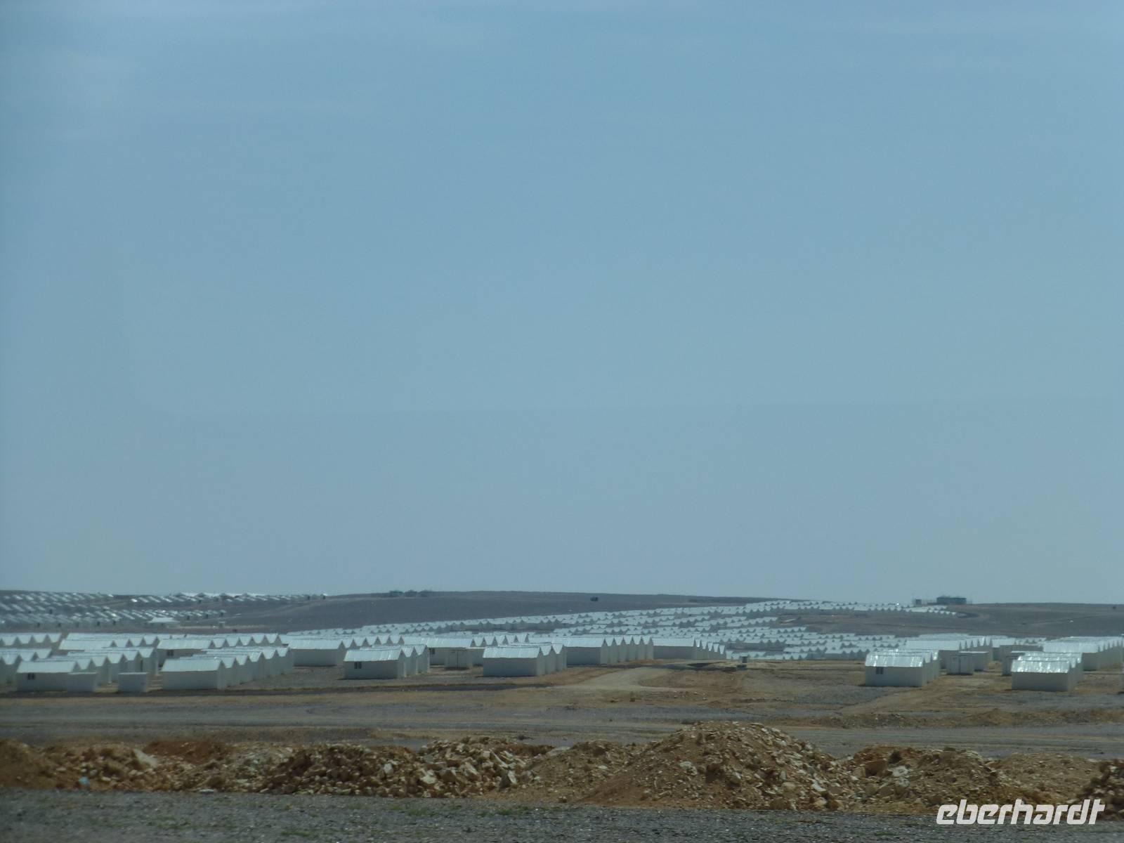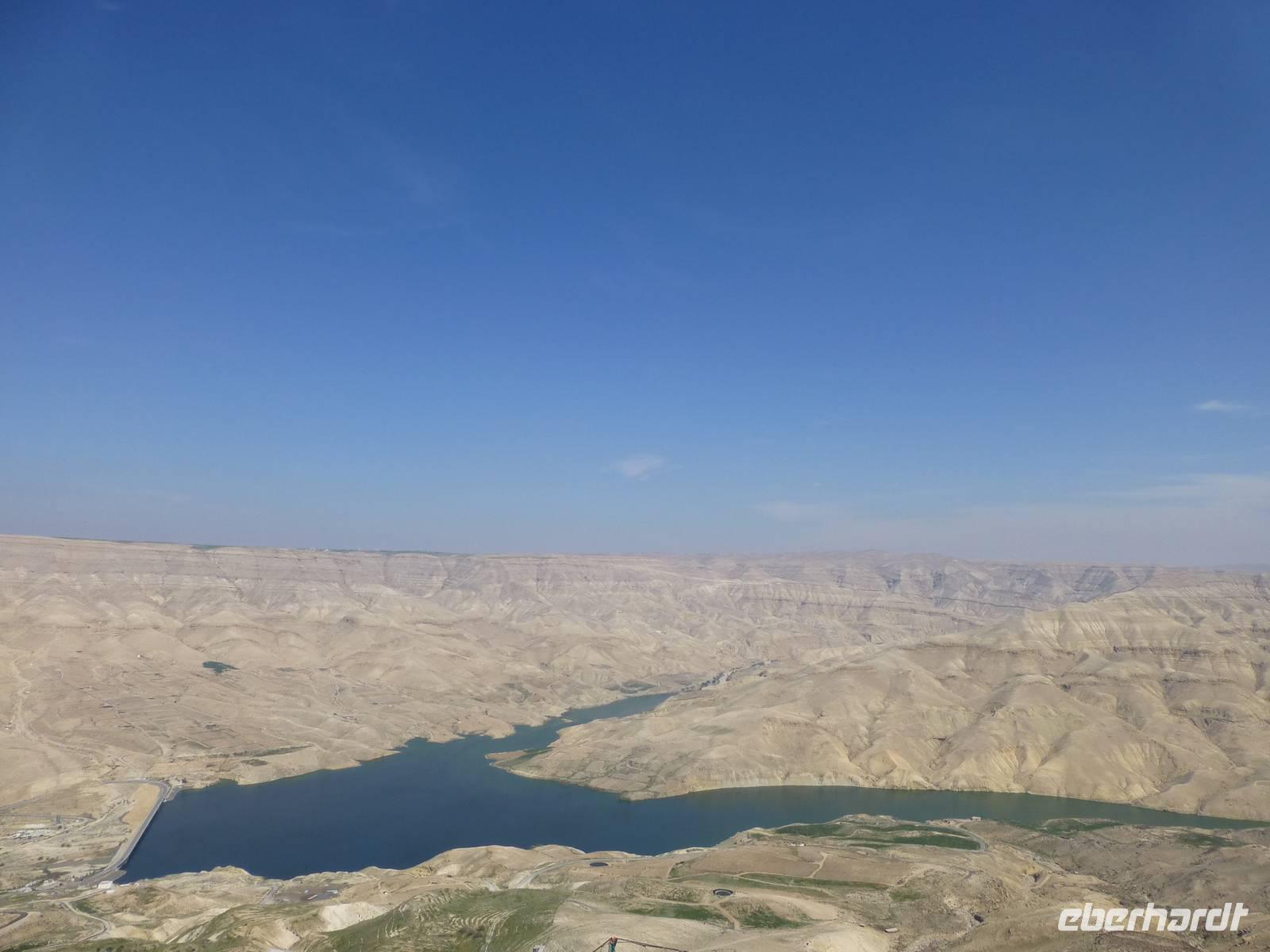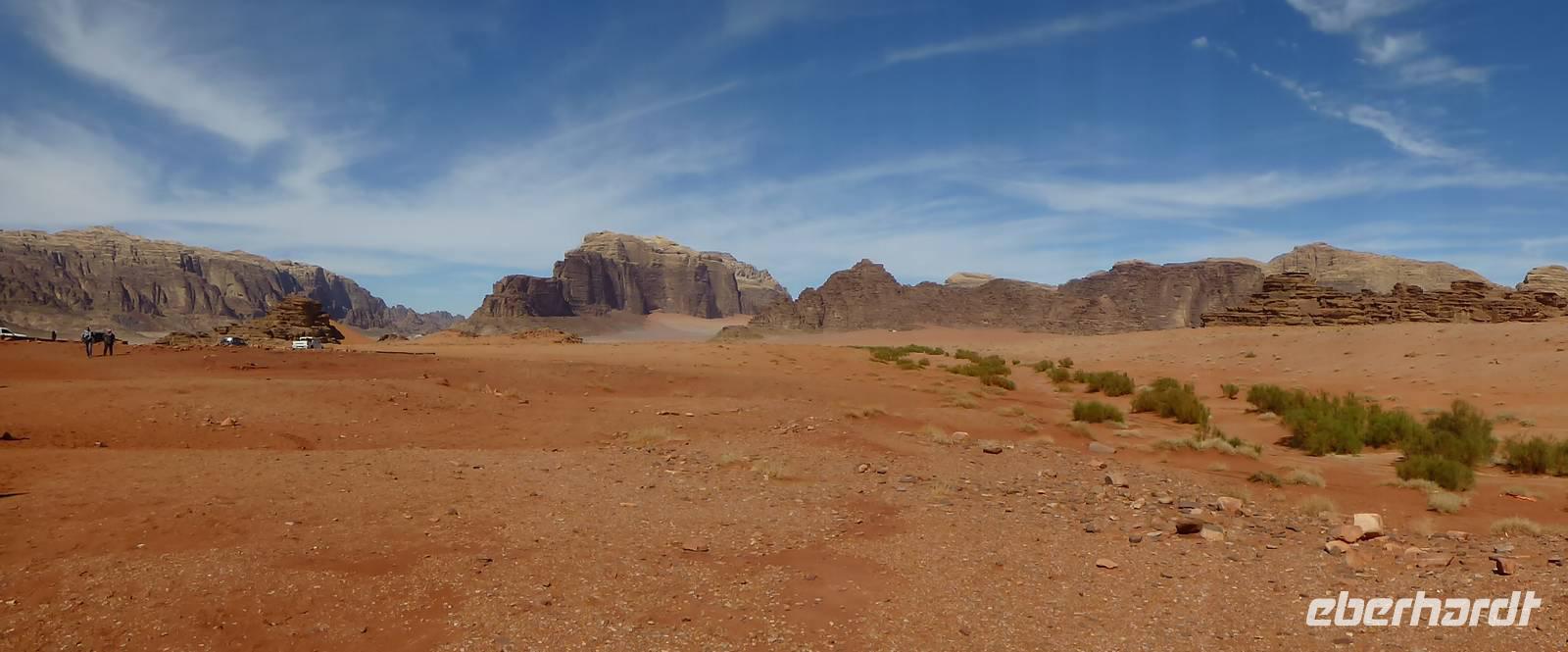 Am Morgen werden wir von Gabi im Hotel abgeholt. Sie betreut uns betreut uns bei Grenzübertritt nach Jordanien auf israelischer Seite. Die Formalitäten sind schnell erledigt. Durch einen Streifen Niemandsland ziehen wir unsere Koffer und in Jordanien werden wir schon mit einem Schild von Eberhardt TRAVEL erwartet. Auch unser jordanischer Reiseleiter Mahmoud wartet bereits. Auch hier geht die Erledigung der Formalitäten zügig und nach nicht mal einer Stunde ist der komplette Grenzübertritt erledigt.