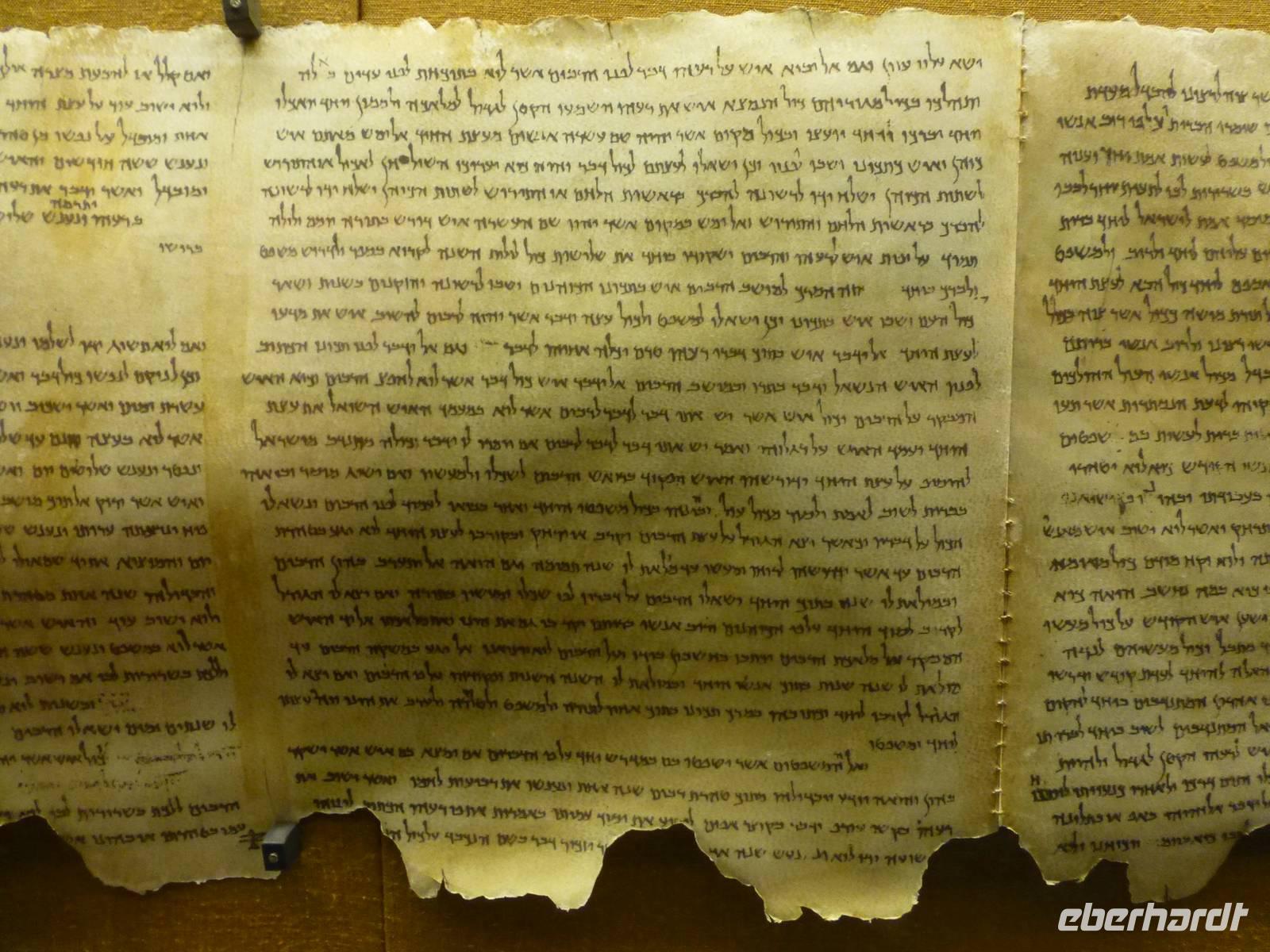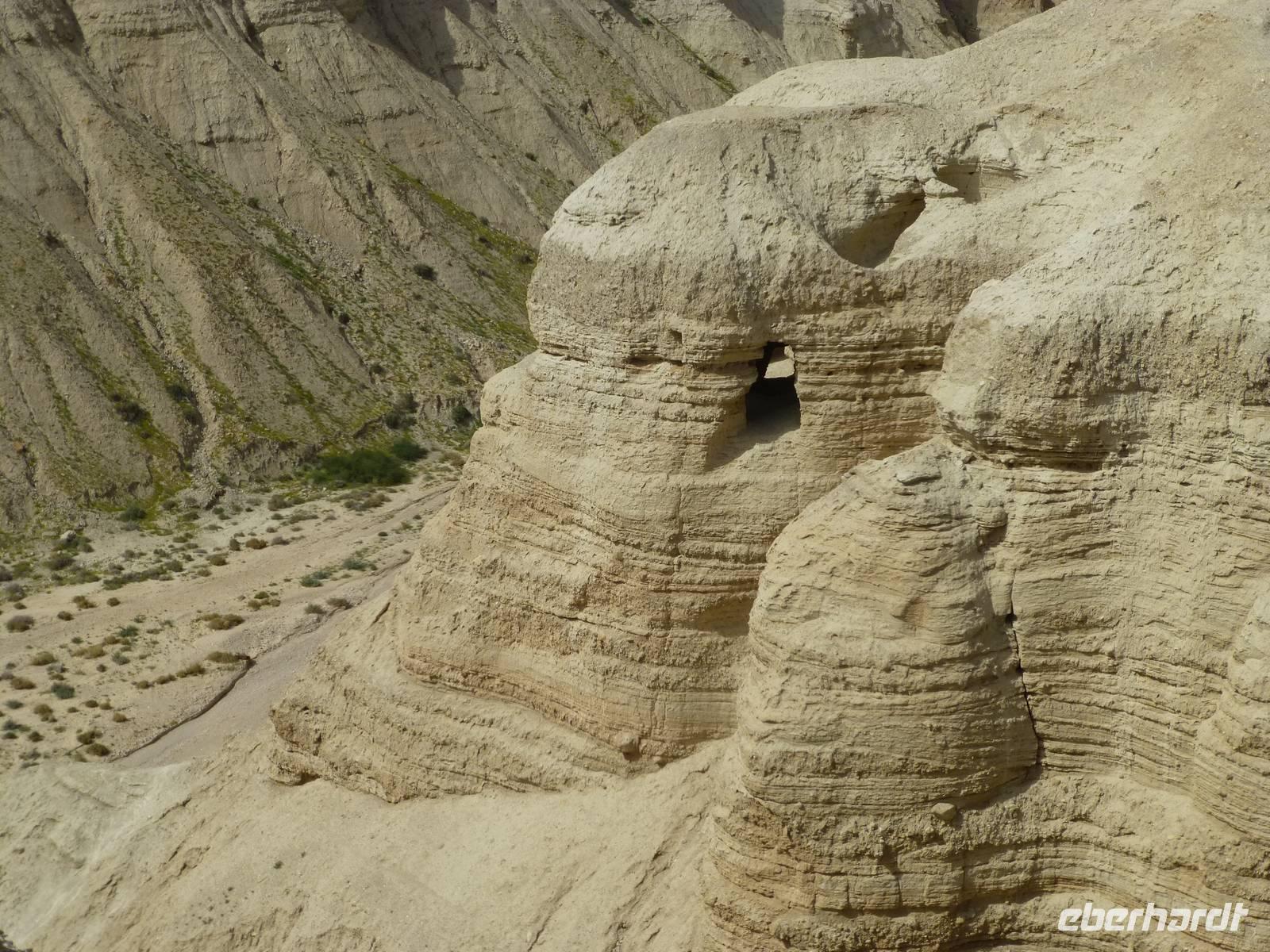 Heute verabschieden wir uns von Jerusalem. Auf Höhe des Meeresspiegels, also +/- 0, machen wir einen kurzen Stopp. Ganz in der Nähe des Toten Meeres liegt die Ausgrabungsstätte Qumram. In einer Art Kloster lebte die Sekte der Essener ihr tief religiöses Leben. Neben der Feldarbeit, welche die tägliche Ernährung sicherte, war das Anfertigen von religiösen Schriften eine der Hauptarbeiten. Diese sind bekannt geworden als die Schriftrollen vom Toten Meer. In Tongefäßen mit Deckeln waren diese in Höhlen versteckt und gelten heute als die ältesten Bibelhandschriften. Entdeckt haben Beduinen 1947 diese Handschriften und sie zuerst einem Antiquitätenhändler in Bethlehem angeboten. Ab 1951 hat man dann hier systematisch ausgegraben. Dabei fand man u.a. eine über 7 m lange Schriftrolle, die sogenannte Jesaja-Rolle ist das früheste Manuskript eines Buches der Bibel. Ein großer Teil der gefundenen Schriftrollen ist heute im Israel Museum in Jerusalem untergebracht und ein Teil davon im Schrein des Buches zu sehen. Die Auswertung der Rollen dauert bis heute an.