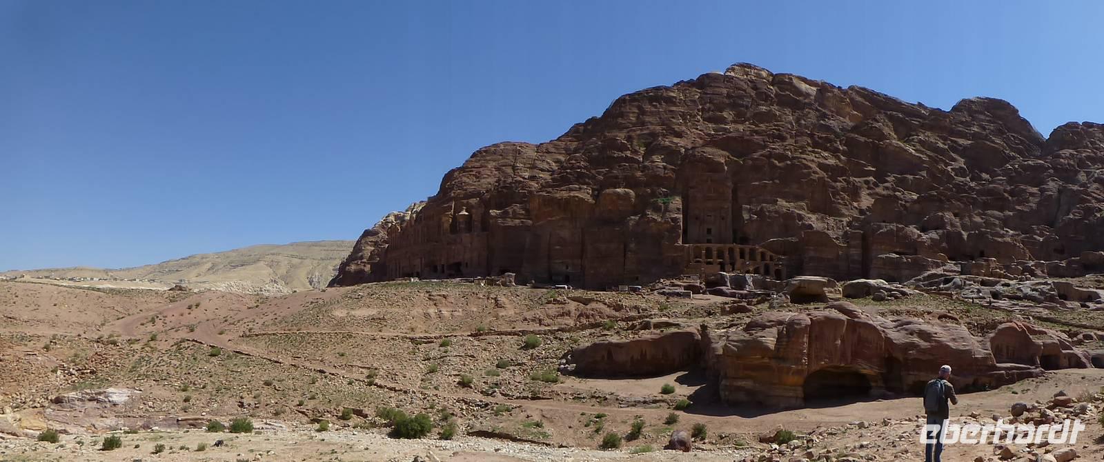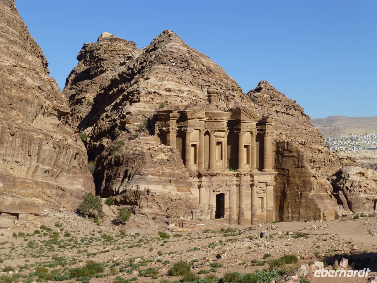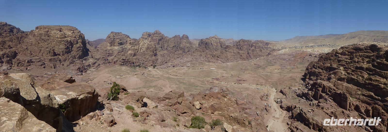 Wir haben das große Glück Petra an zwei Tagen zu besuchen, die meisten Besucher kommen nur für einen Tag. Mahmoud, unser Reiseleiter, bietet einen weiteren Rundgang an, welcher aber nicht verpflichtend ist. So kann man auch seiner eigenen Wege gehen. Vom Visitor Center laufen wir wieder durch den Siq zum Schatzhaus. Hier verweilen wir noch einmal um die Pracht der Fassade bei schönster Beleuchtung zu genießen. Danach heißt es Treppen steigen. Allerdings nur für die Gäste, die wirklich möchten oder können. Über 800 Treppenstufen führen nach oben zum Opferplatz und dort werden wir mit einer wundervollen Aussicht über das ganze Areal von Petra belohnt. Der Weg nach unten führt uns dann vorbei am Löwenrelief, dem Gartentempel, dem Bunten Saal und dem Soldatengrab wieder ins Tal zurück. Nach fast 4 Stunden haben wir uns dann eine Mittagspause verdient. Anschließend machen wir uns wieder auf den Rückweg zum Hotel. Der Nachmittag steht uns zur freien Verfügung und alle nutzen die Zeit um im Hotel ein wenig auszuspannen. Zum Abendessen genießen wir noch einmal die hervorragende Küche des Mövenpick Hotel.