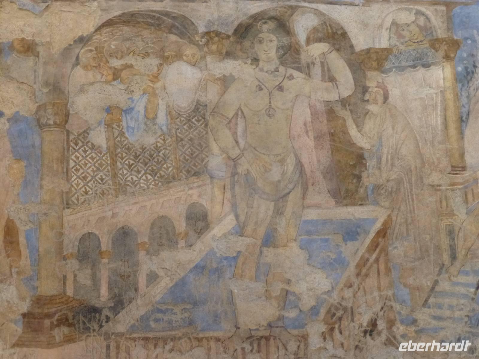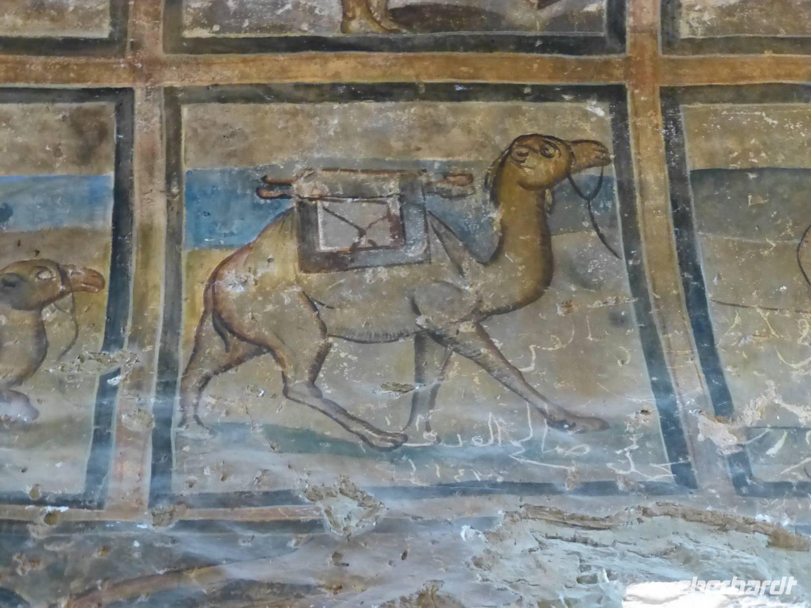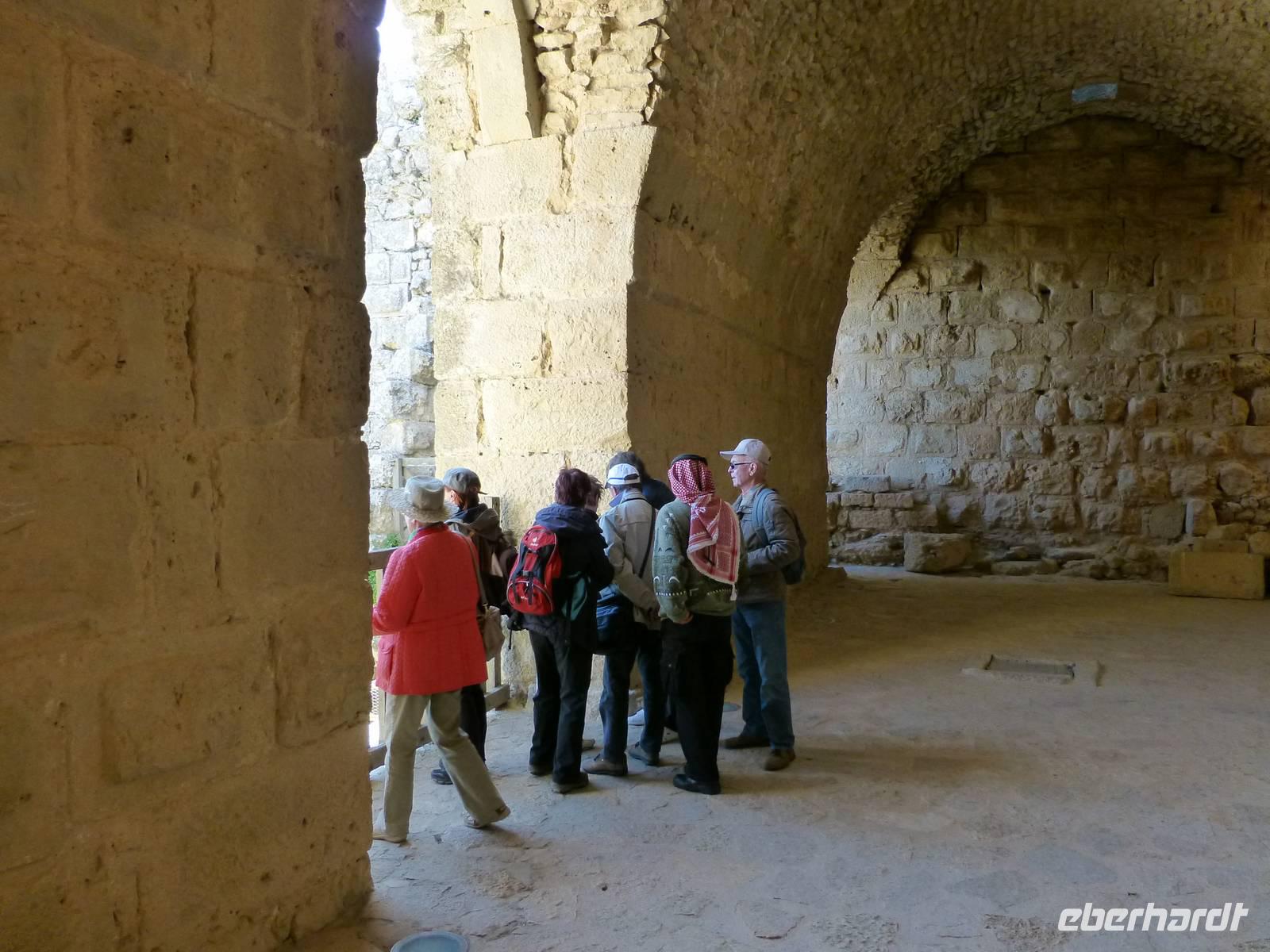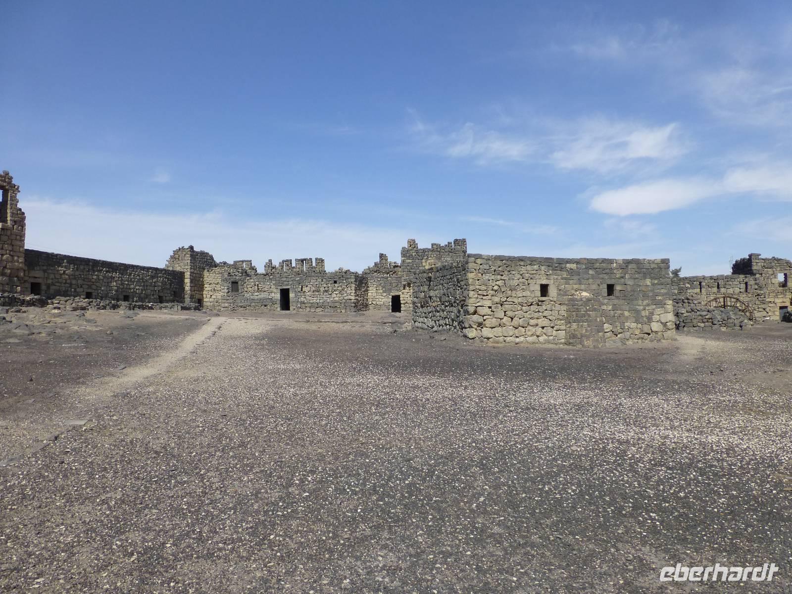 Am Morgen fahren wir zuerst durch die Neustadt von Amman. Anschließend besuchen wir die größte Moschee des Landes. Die König Abdallah Moschee ist benannt nach dem Großvater von König Hussein. Abdallah I wurde am 20. Juli 1951 in der Al Aqsa Moschee in Jerusalem ermordet wurde. Wir betreten staunend den Gebetsraum für Männer, vorher mussten sich die Frauen unserer Gruppe verhüllen, genauso wie es der islamische Glaube gebietet. Sie haben aber damit kein Problem, denn das Erleben im inneren der Moschee beeindruckt. Mahmoud erklärt uns hier die Grundlagen des islamischen Glaubens und spricht auch über den Koran. Die Frauen unserer Gruppe besuchen dann auch noch den Gebetsraum für Frauen, wir Männer dürfen da nicht mit hinein. Die King Abdallah Moschee ist die einzige Moschee des Landes, welche von Nichtmuslimen besucht werden darf. Auf der anderen Straßenseite befindet sich eine christlich-orthodoxe Kirche, man könnte glatt von einem ökumenischen Beisammensein sprechen. Von der Zitadelle Ammans, gelegen auf einem der 14 Hügel auf denen sich die Stadt ausbreitet, haben wir eine gute Aussicht über die Viertel der Stadt. Wir bekommen eine Menge zur Geschichte erklärt und besuchen das Archelogische Museum mit verschiedenen Funden aus Jordanien. So erfahren wir, dass die heutige Stadt Amman die erste auf der Welt war, welche den Namen Philadelphia trug. Benannt wurde sie so nach dem ägyptischen Herrscher Ptolemäus II Philadelphos. Von der Zitadelle aus sehen wir auch den größten Fahnenmast der Welt. Er ist 126,8 m hoch. An ihm weht, heute leider nicht so toll, die Jordanische Fahne mit den stolzen Maßen von 60 x 40 m. Von weiten sehen wir auch den königlichen Palast von Amman, welcher aber nur zu offiziellen Anlässen benutzt wird. Der König, Abdulla II und seine Frau Ranja, wohnen mit ihren 4 Kindern einige Kilometer außerhalb des Stadtzentrums. In Jordanien übt der König die absolute Macht aus, nicht wie in vielen andern Königreichen wo der König nur eine repräsentative Aufgabe hat. Am Nachmittag besichtigen wir dann die außerhalb der Stadt gelegenen Omajadischen Wüstenschlösser. Zuerst besuchen wir das Wüstenschloss Qasr al-Azraq. Es unterscheidet sich vor allem durch das Baumaterial Basalt, von den anderen Wüstenschlösser welche aus Kalkstein gebaut sind. Ursprünglich war es ein von den Römern im 2. Jh.n.Ch. gebautes Castel zur Verteidigung gegen aus der Wüste vorrückende Beduinen. Im Winter 1917/1918 überwinterte Lawrence von Arabien hier. Seine Schildwachen schlossen jeden Abend die drei Tonnen schwere, heute immer noch vorhandene, Tür aus einer Granitplatte ab. 1927 wurde durch ein Erdbeben ein Großteil der Anlage schwer in Mitleidenschaft gezogen. Gleich in der Nähe haben wir die Möglichkeit Mittagspause in einem Restaurant zu machen. Das nächste Wüstenschloss ist eher ein Schlösschen. Sein Name, Qusair Amra, sagt das auch aus. Es besteht aus 6 Gebäudeteilen, wobei die Audienzhalle ein wahres Schmuckstück ist. Wände und Decken sind mit zahlreichen Fresken versehen. Dargestellt werden u .a. halbnackte Frauen. Im Islam ist es aber nicht gestattet Menschen abzubilden. So kann man daraus schließen, dass die Arbeiter, welche dieses Schlösschen bauten und gestalteten, keine Araber waren. Vermutlich waren es Griechen. Dem damaligen Besitzer hat es aber wohl gefallen, er hat es sich extra als Lust- und Jagdschlösschen bauen lassen. Mahmuod erklärt uns, dass in der Wüste früher u. a. Antilopen und Gazellen gejagt wurden. Heute gehört das im Jahre 711 errichtet Schlösschen zum UNESCO Weltkulturerbe. Nur wenige Minuten sind es mit dem Bus bis zum dritten Wüstenschloss, es trägt den Namen Qasr al-Kharana und steht trutzig in der Landschaft. Es beeindruckt auf den ersten Blick vor allem von außen mit seiner Größe. Normalerweise würde man hier auch nicht von einem Schloss reden. Sehr wahrscheinlich wurde es als Karawanserei für Pilgerreisen nach Mekka genutzt. Im Erdgeschoss des Gebäudes befanden sich Stallungen und Lagerräume. Da so eine Karawane früher enorme Werte mit sich führte war solch ein burgähnlicher Bau zur Übernachtung sicher nicht unangebracht. Man kann auch recht eindeutig nachweisen, aus welcher Zeit die Anlage stammt. Eine Inschrift verrät uns, dass ein Bewohner am 13.11.710 dort übernachtet hat. Insgesamt gibt es im Gebäude 44 Räume auf zwei Etagen, eine Tatsache die man dem Gebäude von außen nicht ansieht. Zurück in unserem Hotel in Amman genießen wir das reichhaltige Abendbuffet.