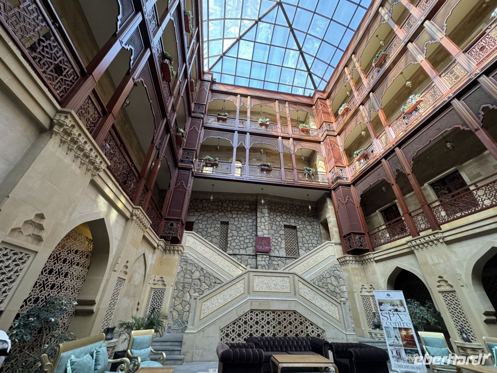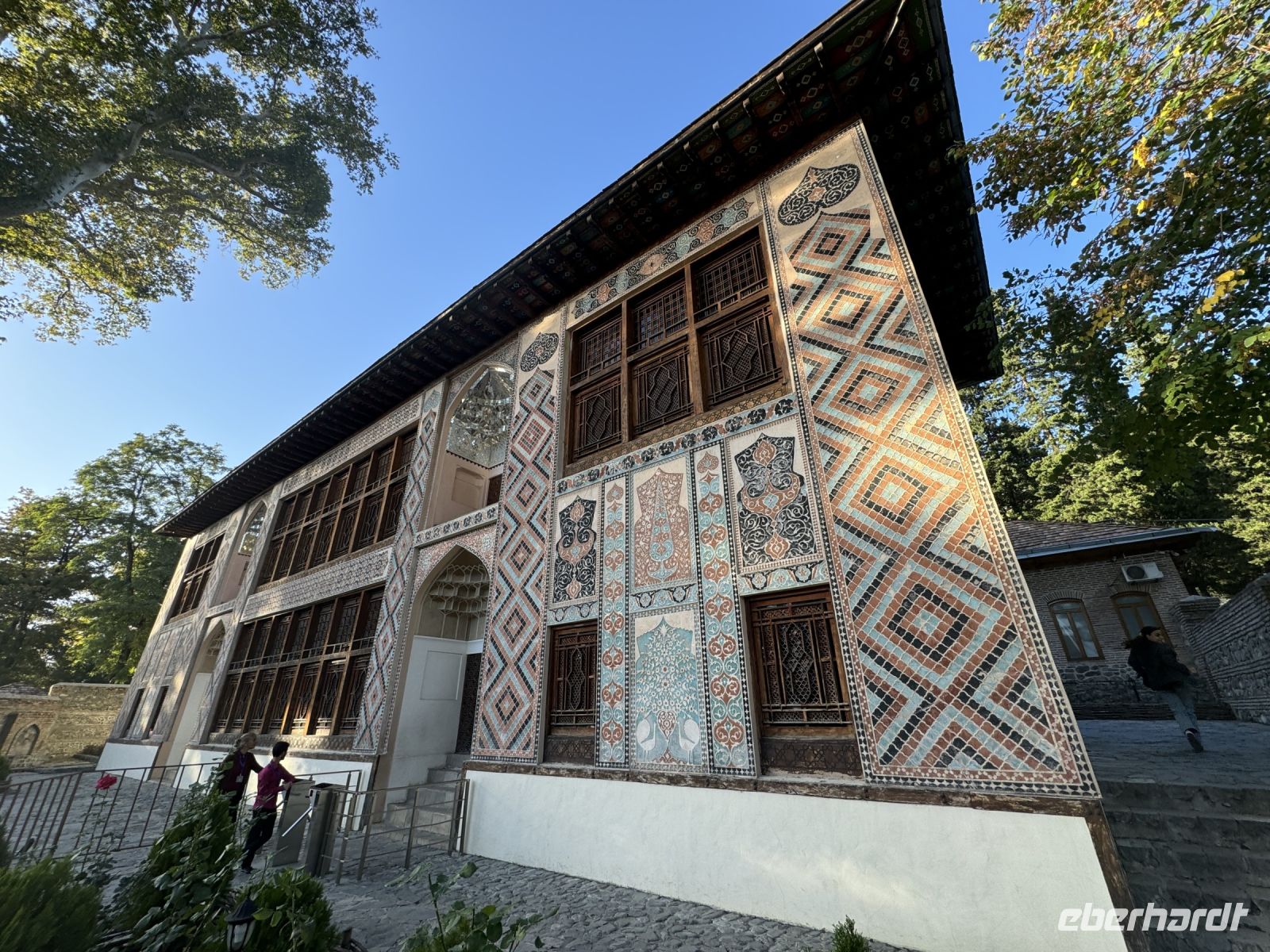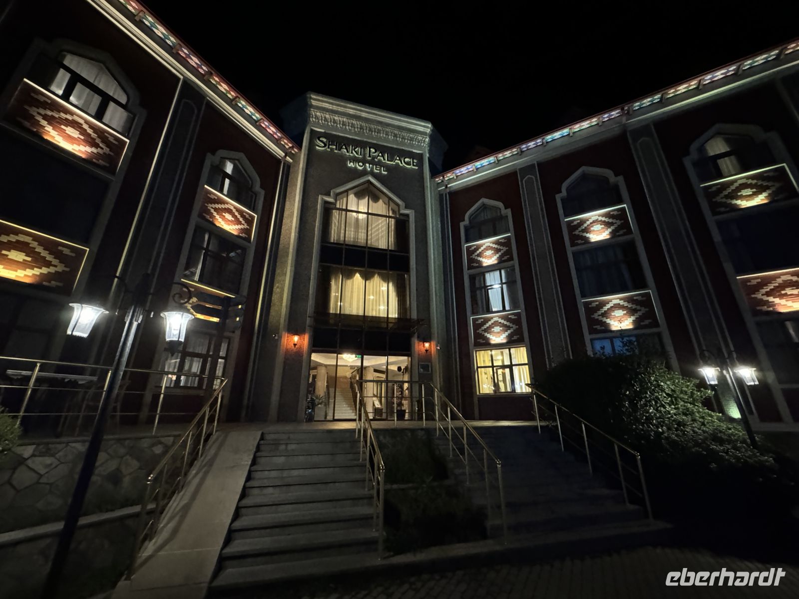 Nach dem Frühstück fuhren wir in Richtung Sheki. Der erste Stopp erfolgte am Diri Baba Mausoleum in Maraza . In Samaxi besichtigten wir danach die aus dem 10 Jahrhundert stammende Djuma-Moschee. Weiter ging die Fahrt zur Weinverkostung in das Weinanbaugebiet nahe Göycay und Gabala, wo wir neben einem kleinen Essen verschiedene Weine und Grappa probierten. Die Weiterfahrt ging über den Muganly Pass, mit einem herrlichen Blick auf die Berge entlang der Straße. In Sheki besichtigten wir den prächtigen Khan's Palast. Der Palast wurde 1762 ohne Verwendung von Nägeln erbaut und ist mit kunstvollen Mustern an der Außenseite verziert. Es wird seit 11.-12. Jahrhundert in der aserbaidschanischen Architektur verwendet. Dabei geht es um eine Art der dekorativen Kunst, die aus Holzelementen besteht und kleine farbige Glasstücke zusammenhält, die vom Künstler ohne Klebstoff und Nägel hergestellt werden. Das wichtigste "Geheimnis" der Netzwerkkunst ist die Verwendung von kleinen Werkzeugen zur Bearbeitung von Holzteilen mit Vorsprüngen und Vertiefungen, in die kleine Glasstücke aus Morano Glas eingelegt werden. Im Ort gibt es auch eine Reihe von alten Karawansereien und Moscheen zum Entdecken. Am Abend ist es angenehm durch kurvenreiche Straßen und traditionelle Häuser zu bummeln, die das Gefühl der Vergangenheit vermitteln. Das Abendessen gab es in einem lokalen Restaurant.