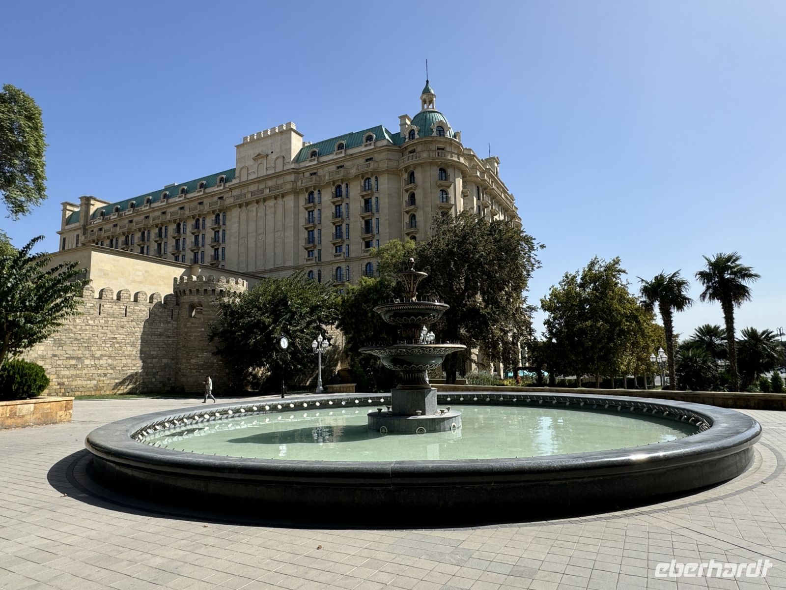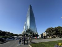 Noch etwas müde, aber durch ein reichhaltiges Frühstück gut gestärkt, starteten wir pünktlich zur Stadtrundfahrt und Stadtbesichtigung in der kosmopolitischen Stadt Baku. Vom Hotel fuhren wir in Richtung Baku Boulevard und Upland Park im Herzen der Altstadt, die gleichzeitig eine Festung ist. Seit 2000 gehört dieser Teil zum UNESCO Weltkulturerbe. Wir konnten eine Reihe von Gassen, Karawansereien, den Mädchenturm aus dem 12. Jahrhundert und den Palast vom Shirvan Shah (XV Jahrhundert) sehen. Wir entdeckten Kuppeln und Bögen, Mosaike und Skulpturen in einem hervorragenden Zustand. Anar erklärte uns anschaulich und tiefgründig die vielfältige und multikulturelle Geschichte der durch Ölquellen schon im vergangenen Jahrhundert reich gewordenen Stadt. Beim Rundgang zeigte uns Anar den Mausoleums Palast, das türkische Bad und die Divan-Khana, die das Gericht beherbergt. Unsere Blicke schweiften auch immer wieder auf das neue, moderne Baku, das am Rande der Altstadt in den Jahren nach der Auflösung der Sowjetunion entstanden ist. Nach einem kleinem Imbiss bei Akkordeonmusik besuchten wir den Atashgah-Feueranbeter-Tempel, der zum UNESCO-Weltkulturerbe zählt. Über die Absheron-Halbinsel mit Yanarag, den Feuerberg, mit "brennende Erde", fuhren wir danach in das "neue Baku" und besuchten noch ein Fahrzeugmuseum im Haydar-Aliyev-Zentrum. Es folgte nach einem kleinen Abendspaziergang über den Boulevard unser Abendessen in einem Folklorerestaurant bei landestypischer Musik.