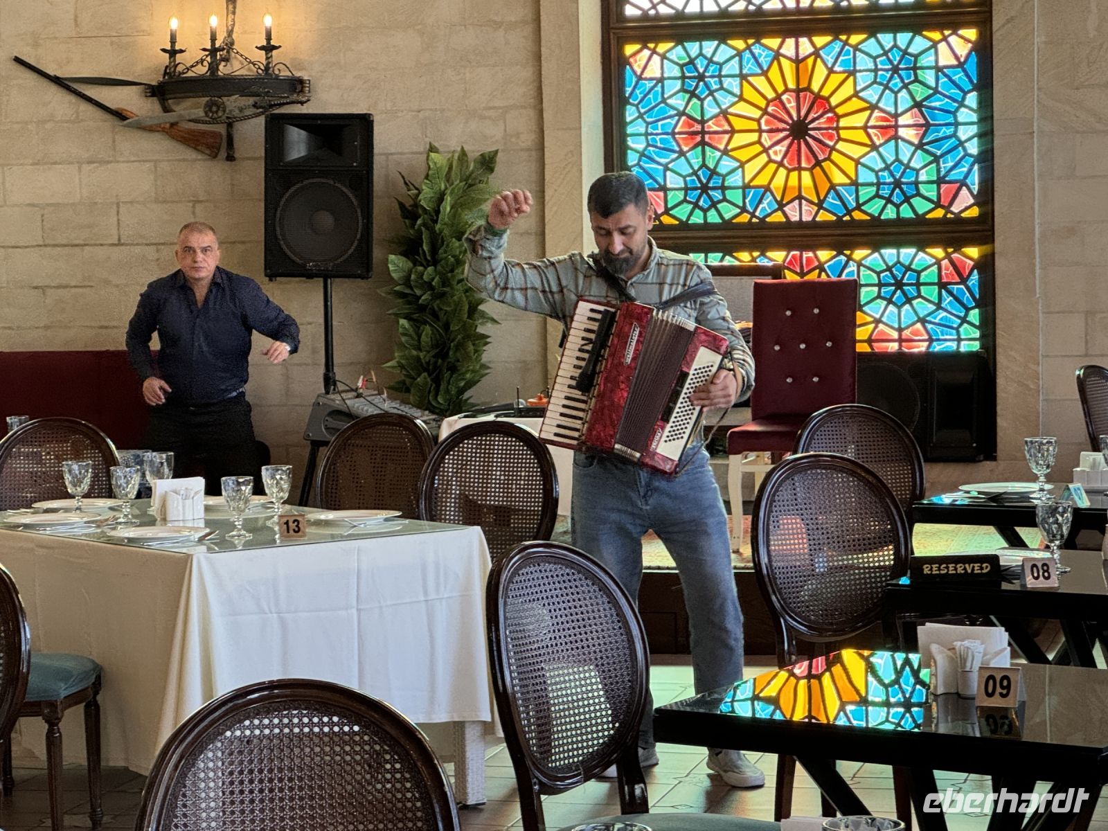 Wir starten sofort zur markanten St.-Georgs-Kirche in Goschwank. Hier erfuhren wir erstmals etwas über die schönsten armenischen Steinkreuze aus dem 13. Jahrhundert. Danach fuhren wir zum Kloster Haghartsin, das von der herrlichen Natur umgeben ist. Die Fahrt ging weiter nach Dilidschan. Dort übernachteten wir ein einem renovierten Hotel, das früher ein Ferienheim der Sowjetelite war.