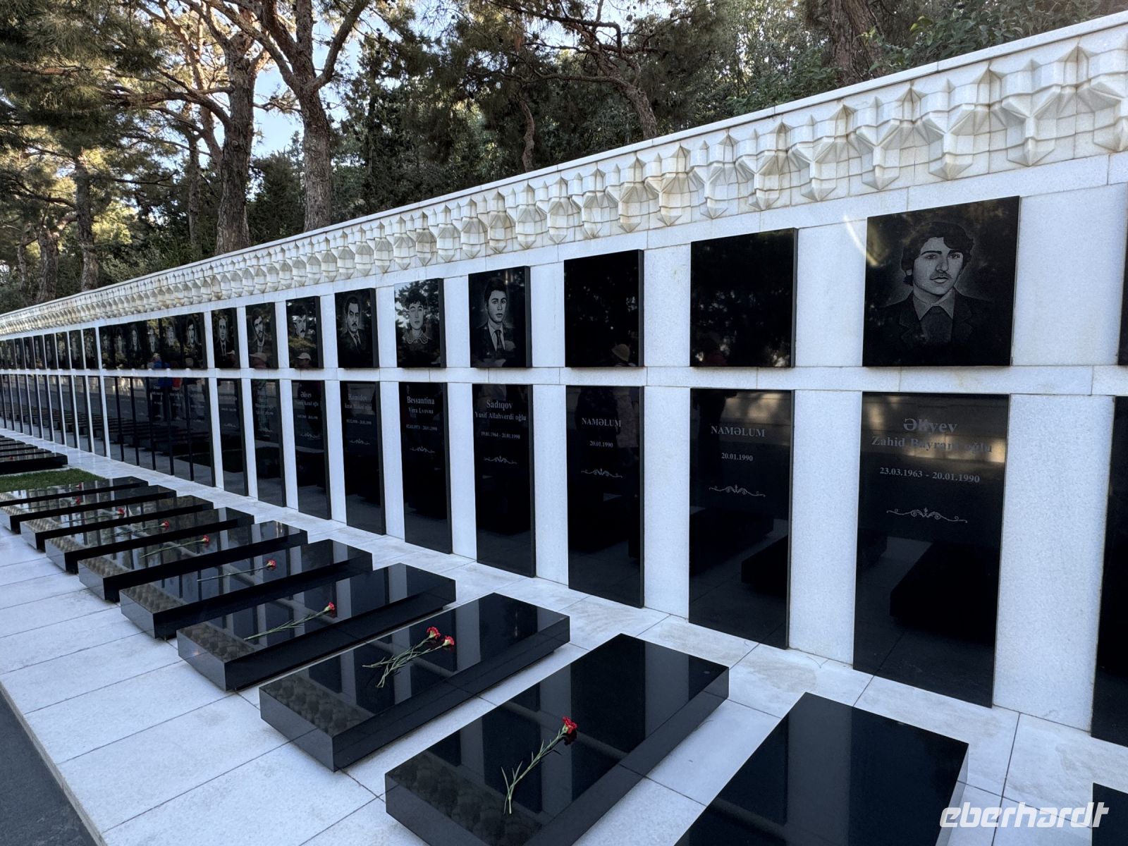 Nach dem Frühstück stand ein langer, interessanter Ausflug vor uns. Nach einigen Kilometern Fahrt aus der Stadt Baku stiegen wir in Jeeps, um auf unbefestigten Wegen die Schlammvulkane zu erreichen. Es gibt ca. 1000 Schlammvulkane in der Welt und 800 davon in Aserbaidschan, darunter die größten von ca. 10 Km Umfang, dessen Spitze bis zu 700 m. erreicht hat. In unserem bequemen Bus fuhren wir anschließend nach Gobustan, ein erstaunlicher Ort mit vielen neolithischen Felszeichnungen. Der Besuch von Gobustan führte uns in eine andere Welt führen, in der wir die Vergangenheit der Menschheit und die Atmosphäre der tausendjährigen Geschichte dieses Ortes spüren konnten. Weiter ging es zum Kaspischen Meer mit Bademöglichkeit und Moschee-Besichtigung. Einen herrlichen Blick auf Baku hatten wir dann von dem 2019 auf der höchsten Erhebung der Stadt errichteten Museum für die Opfer der politischer Unterdrückung. Es folgten der Besuch der Kunst- und Teppich-Museen.