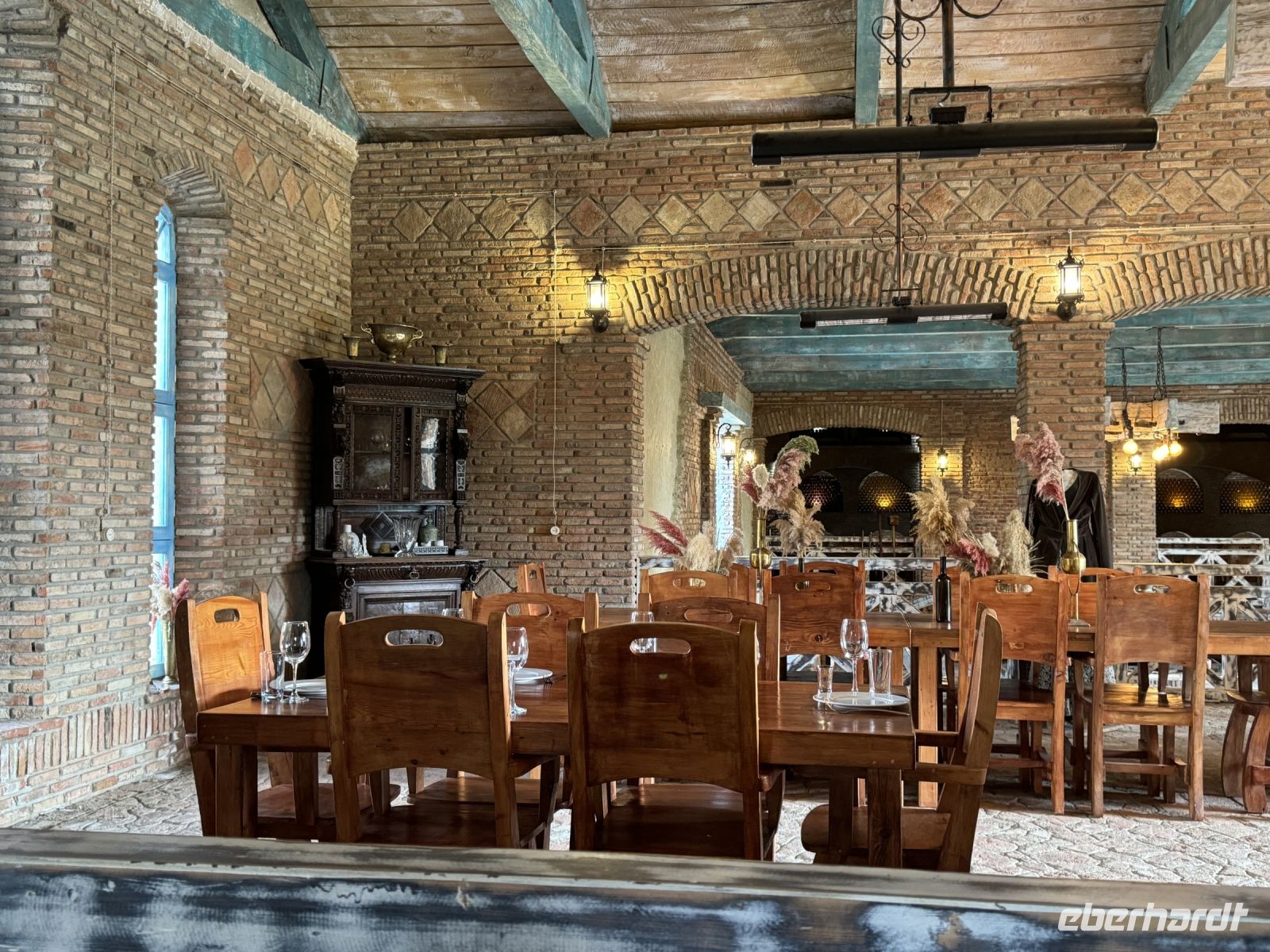 Wir lernten sofort Kachetien kennen - das bekannte Weinanbaugebiet Georgiens. Die Mittagszeit verbrachten wir auf einem Weingut, wo wir gemeinsam mit den Besitzern Brot buken, Teigtaschen zubereiten und die georgische Spezialität Tschurtschchela herstellen. Anschließend wurden verschiedene Weinsorten verkosten und ein traditionelles georgisches Mittagessen eingenommen. Anschließend fuhren wir in das Hotel Savaneti in Ikalto und ließen dort den Tag ausklingen.