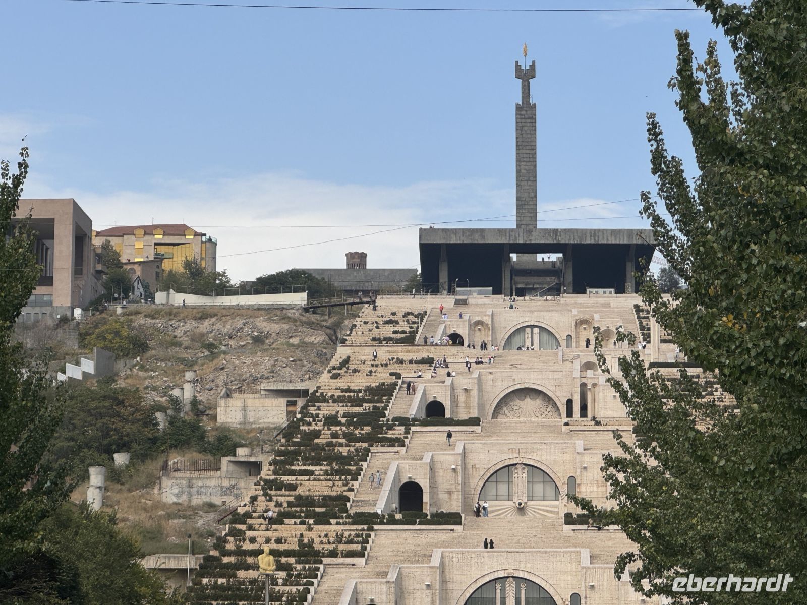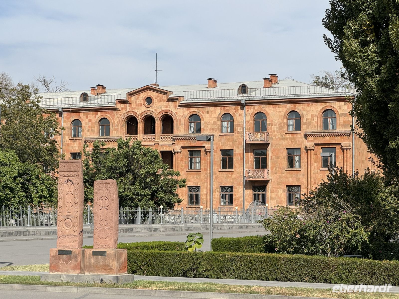 Am Nachmittag starteten wir dann mit einem Rundgang durch eine der ältesten Hauptstädte, der herrlichen alten und neuen Stadt Yerevan. Seit Jahrhunderten wird diese Stadt als die "Rosa Stadt", wegen der Farbe der Steine bezeichnet aus denen sie gebaut worden ist. Wir besuchten den Platz der Republik, gehen entlang der Maschtots Straße und kommen zum Opern- und Ballett-Theater namens Aram Khachatryan und an die Kaskaden, die wir mit bequemer Rolltreppe erklimmen. Von dort spazierten wir langsam zum Manuskripten Museum Matenadaran.