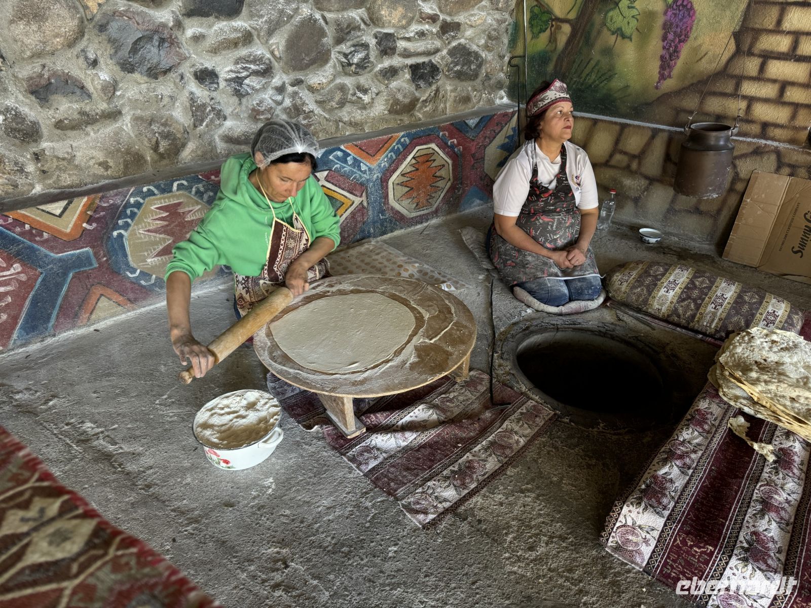 Bei einer lokalen Familie beobachteten wir, wie das typisch-traditionelle armenische Fladenbrot «Lavash» zubereitet und gebacken wird. Das noch warme Brot verkosteten wir sofort und lernten den Geschmack vom armenischer "Fast Food" kennen, welches aus frischem Käse und Lavasch gemacht wird. Das Fladenbrot wird im landestypischen Ofen "Tonir" gebacken. Es ist sehr dünn und wird in der Regel in der großen Form auch in Geschäften verkauft. Im Jahre 2015 wurde der "Lavasch" in die Liste des UNESCO immateriellen Kulturerbes aufgenommen. Auf der Rückfahrt nach Yerevan besichtigten wir noch die Kirche Georg des Erleuchters.