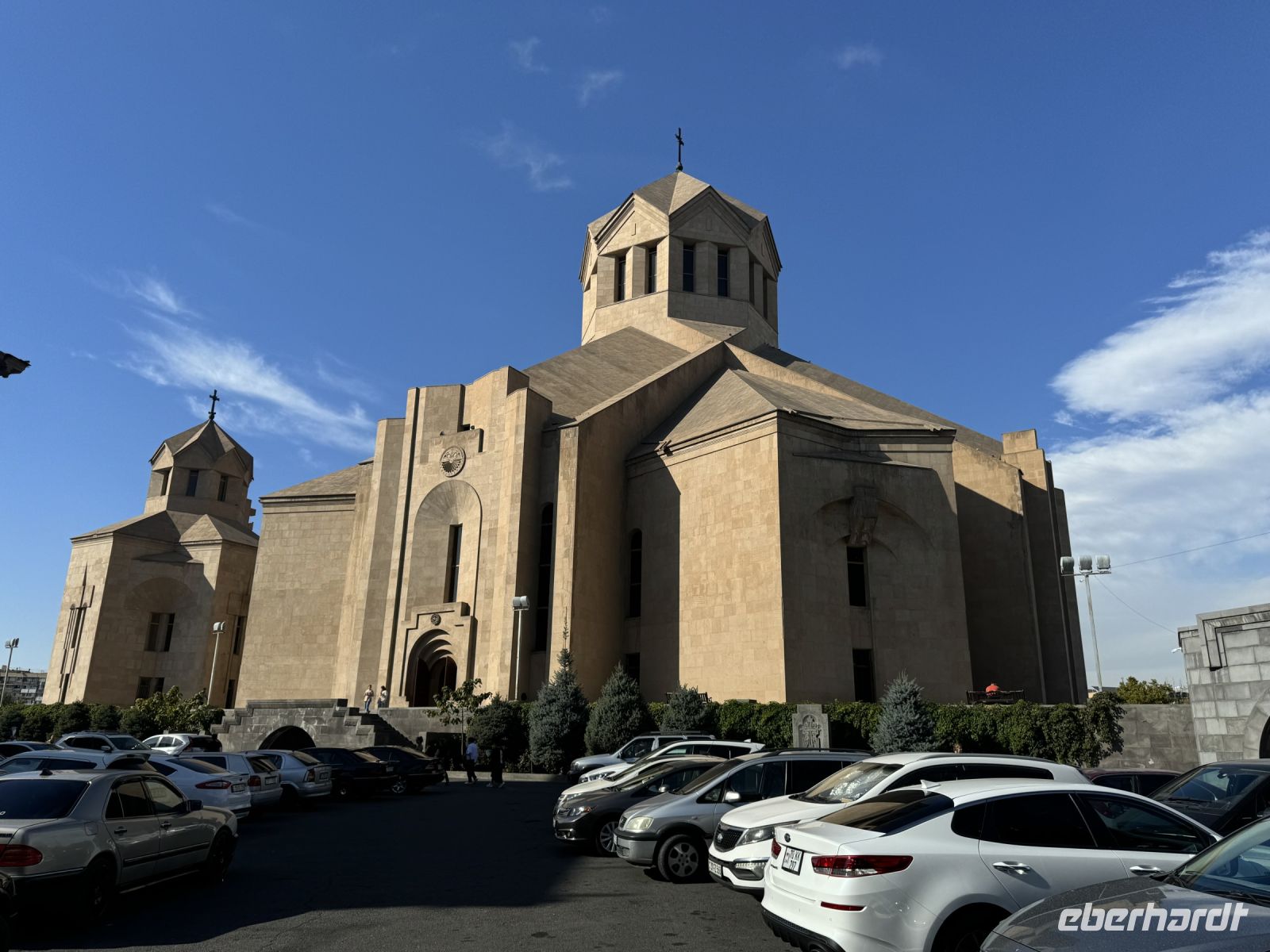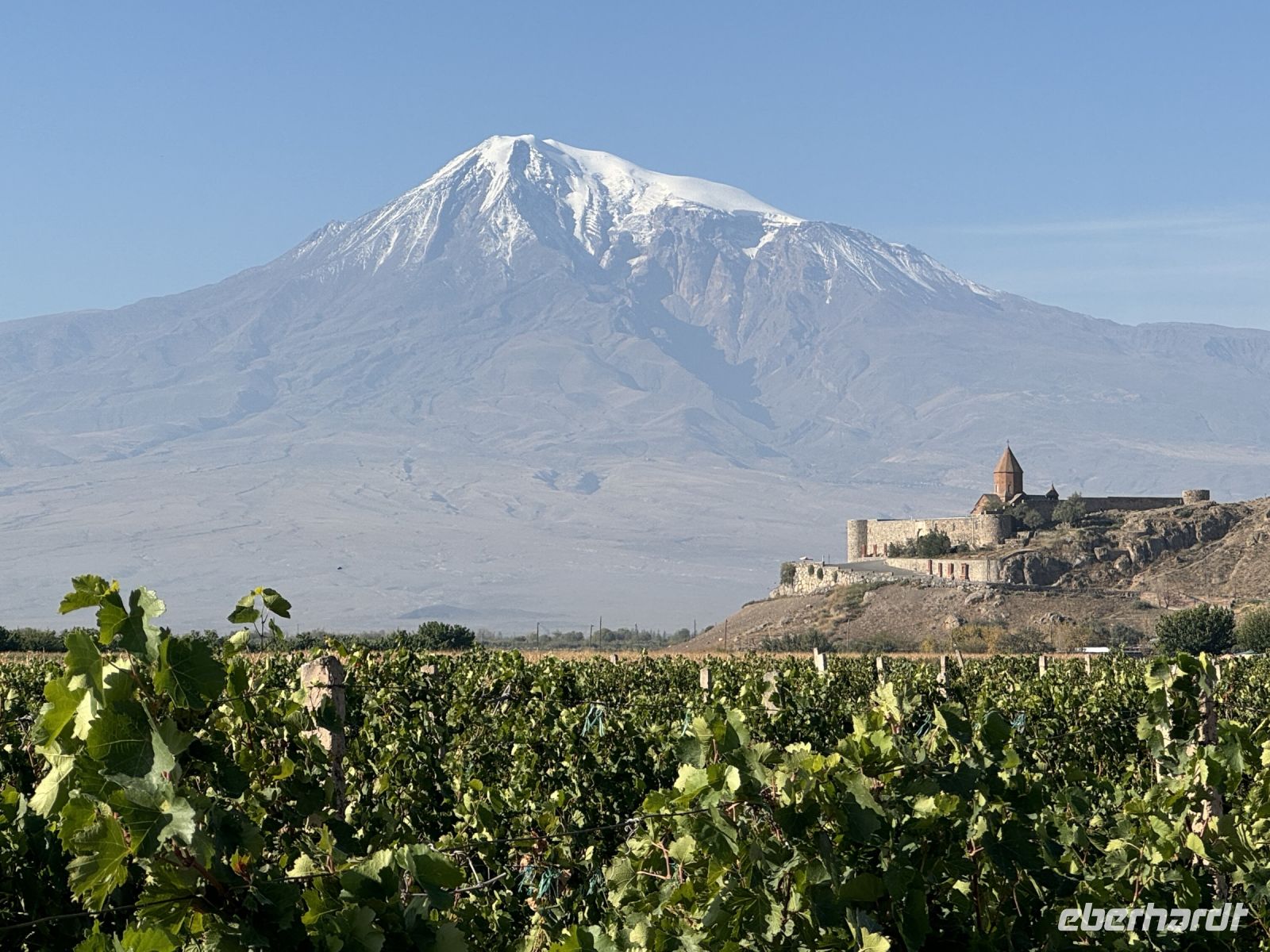Wir besuchten das Klosters Khor Virap („Tiefes Verlies“), das wir schon beim obligatorischen Foto Stopp aus der Ferne gesehen und mit dem Ararat fotografiert hatten. Im Kloster wurde Gregor der Erlauchter 13 Jahre gefangen gehalten wurde, bis er zum ersten armenischen Katholikos ernannt wurde. Dieses Kloster ist mit der Christianisierung Armeniens eng verbunden. Von hier aus bietet sich ein unvergleichlicher Blick auf den heiligen Berg Ararat. Obwohl der Ararat heute in der Türkei liegt ist er das Heiligtum und Nationalsymbol der Armenier. Es ging weiter mit der Fahrt nach Edschmiatsin. Heute ist Edschmiatsin der Sitz des Oberhauptes der armenisch-apostolischen Kirche.