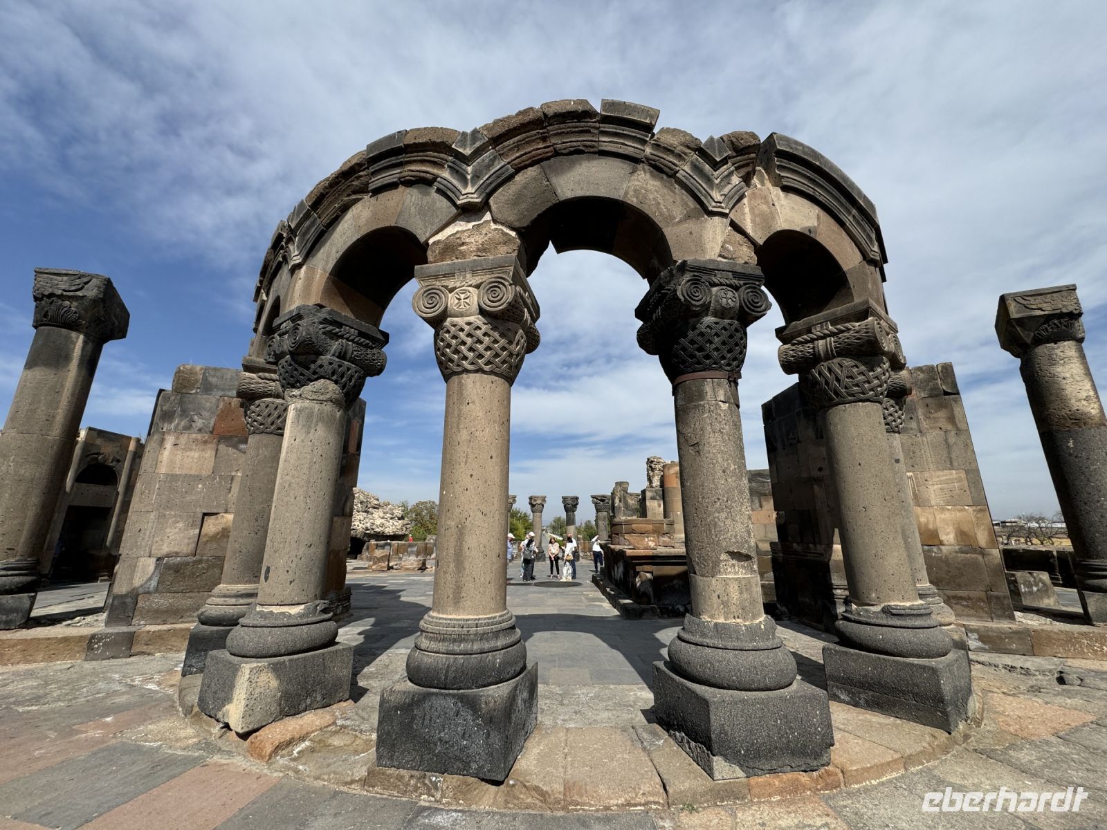 Am Ende des Tages besichtigten wir die Ruinen der ersten armenischen Rundkirche Zvartnoz aus dem 7. Jh., auch UNESCO-Weltkulturerbe. Sie gilt als ein Meisterwerk der armenischen frühmittelalterlichen.