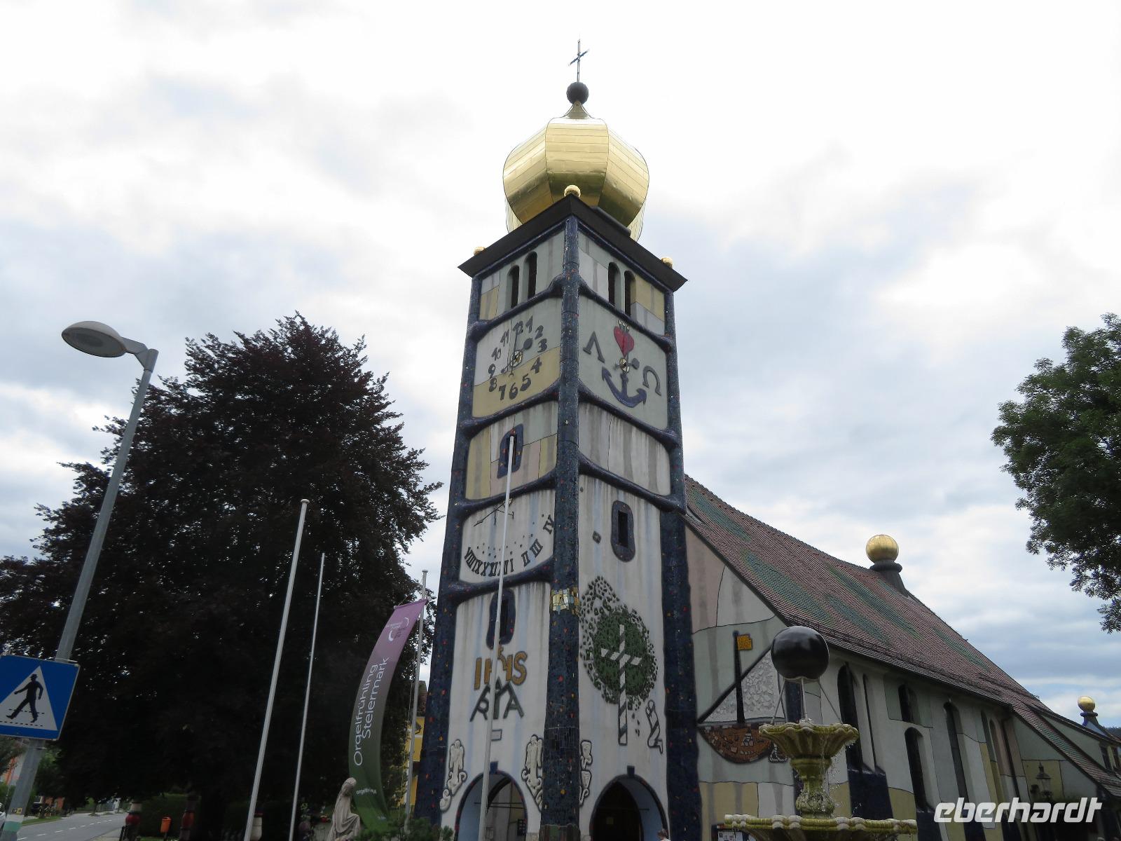 Nach dem Mittagessen am Gestüt ging es nach Bärnbach wo wir einen Blick in die Hundertwasser-Kirche Sankt Barbara geworfen hatten. Die Kirche wurde von dem Künstler Friedensreich Hundertwasser entsprechend seiner Vorstellungen umgestalten. Nicht weit entfernt auch ein künstlerischer Brunnen, der Mosesbrunnen, seines Studienkolleges Prof. Ernst Fuchs.