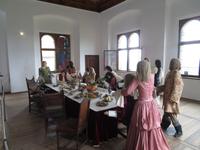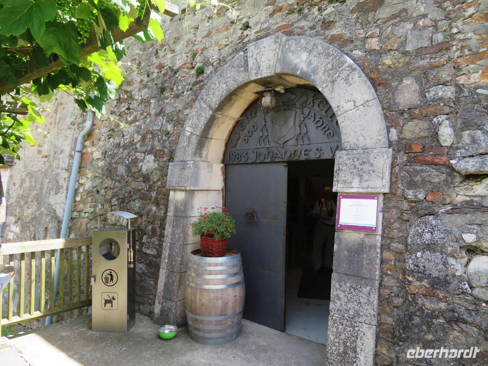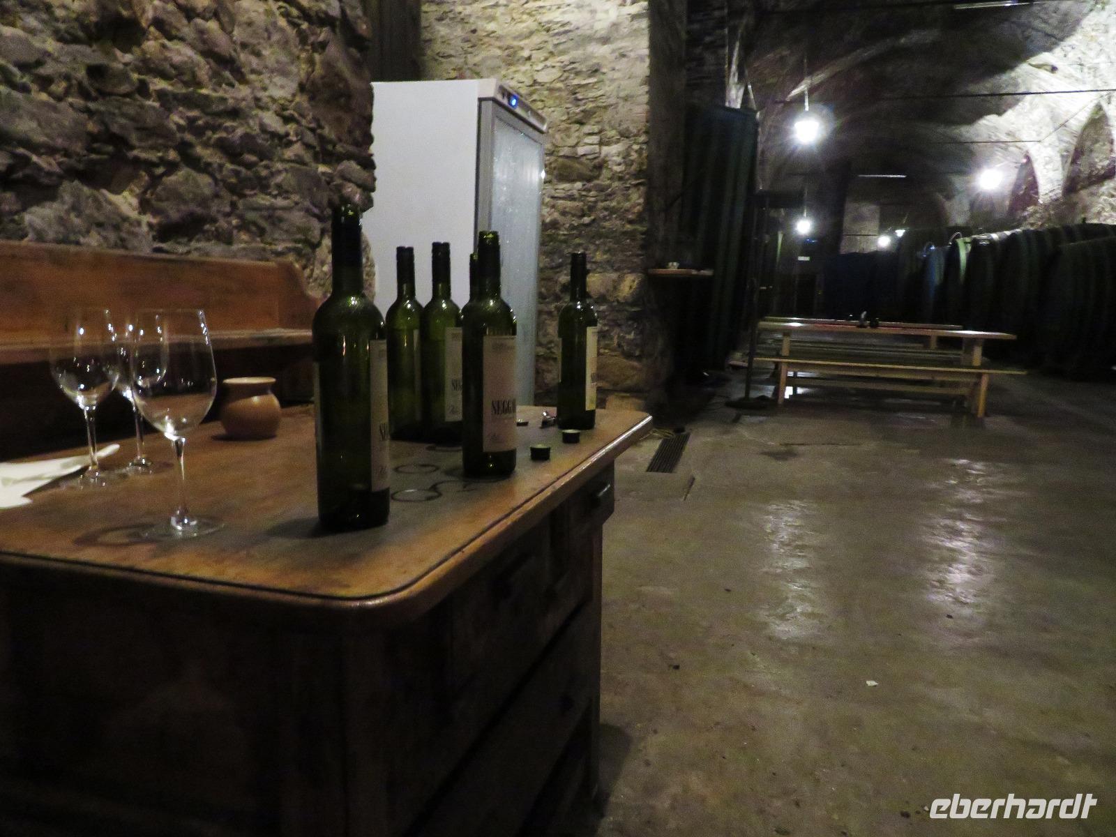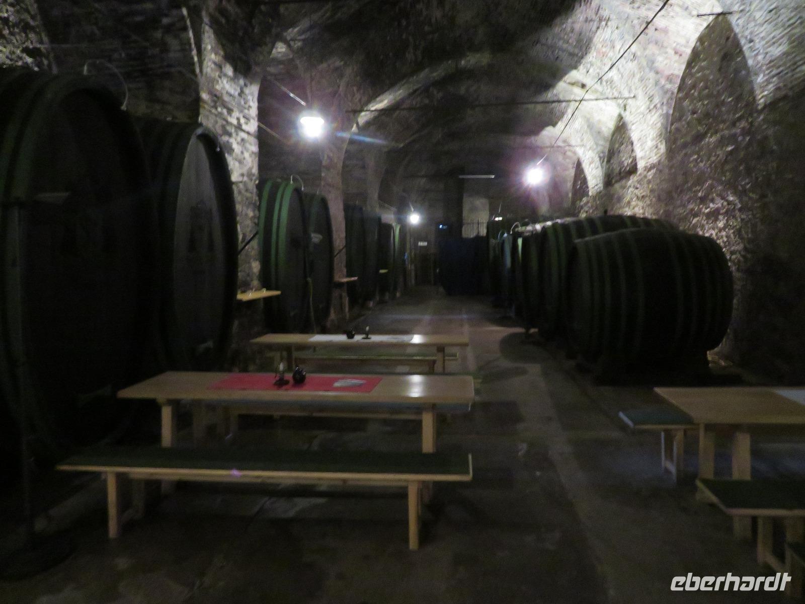Nach der ausführlichen Besichtigung zogen wir in den Weinkeller ein. Er ist ungefähr 75 x 8 x 8 Meter groß und rund 330 Jahre alt. Er wurde aus dem Material der Verteidigungsanlagen und Wällen erbaut und liegt nicht ganz unter der Erde. Wir verkosteten drei leckere Sorten Wein der Steiermark.