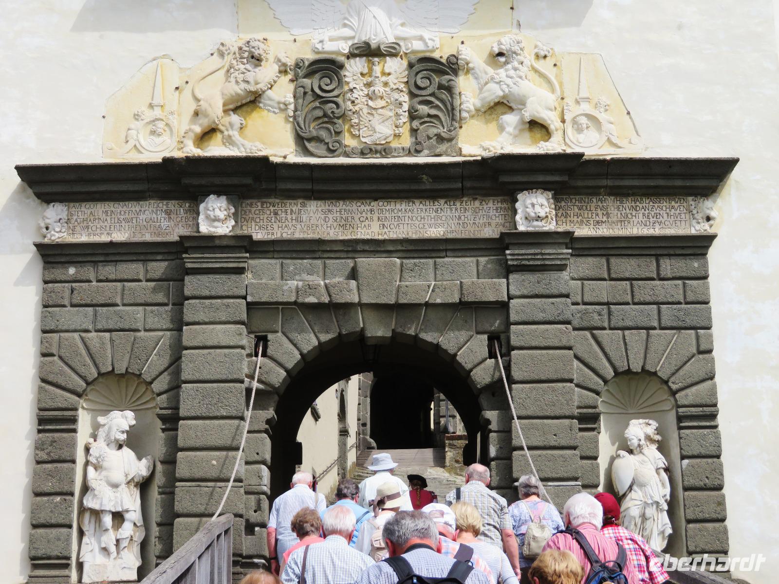 Am Morgen ging es in den Osten. Über Deutschlandsberg ging es an Graz vorbei bis zur Riegersburg. Viele Obstplantagen waren am Fuße der Burg zu sehen. Die Riegersburg selbst wurde auf einen großen Vulkankegel, beziehungsweise einem erstarrten Schlot, errichtet. Drumherum haben sich fruchtbare Böden entwickelt und bieten eine gute Nahrungsmittelquelle. Man fand hier auch Hinweise auf eine keltische Siedlung wo gut 300 Menschen gelebt haben. Der Namensgeber der Burg ist wohl ein deutscher Ritter - Rüdiger. Sie erscheint urkundlich erstmals 1138 als „Ruotkerspurch", also als Burg eines Rüdiger. Der heutige Zustand der Riegersburg geht aber im Wesentlichen auf das 17. Jahrhundert zurück, wo Elisabeth Katharina Wechsler, verehelichte Freifrau von Galler, die heutige Form der Burg prägte. Die Gallerin, wie man sie auch nannte, war eine äußerst streitbare Frau. Sie war drei Mal verheiratet und schaffte es zur damaligen Zeit alleinige Burgherrin zu sein. Da die Burg im Grenzgebiet zum Osmanischen Reich lag, versuchten es die Türken mehrmals die Burg einzunehmen. Katharina wusste aber ihr Reich zu schützen und tat dies auch in politischer Form mit harten Bandagen gegenüber dem eigenen Volk. Besonders mit dem Pfarrer Wolfgang Strobel legte sie sich an. Mit ihm stritt sie auch um das Patronatsrecht. Der Gallerin Ihre Lieblings-Zofe war Katharina Paldauf, geborene Fondell. Die um 1625 geborene bürgerliche Handwerkerkerstochter wurde als Blumenhexe zu einer unsterblichen Legende. Durch die Gunst der Freifrau von Galler und die spätere Hochzeit mit dem Burgverwalters Paldauf erfuhr sie einen gesellschaftlichen Aufstieg. Im Frühjahr 1675 wurde sie der Hexerei beschuldigt - man glaubte sie könne im bitter kalten Winter Blumen zum Blühen bringen. Nach fast einem Jahr Haft und Folter richtete man sie Ende 1675 hin. Durch ihren guten gesellschaftlichen Stand gewehrte man ihr wohl einen schnellen Tod durch Enthauptung mit anschließender Verbrennung.