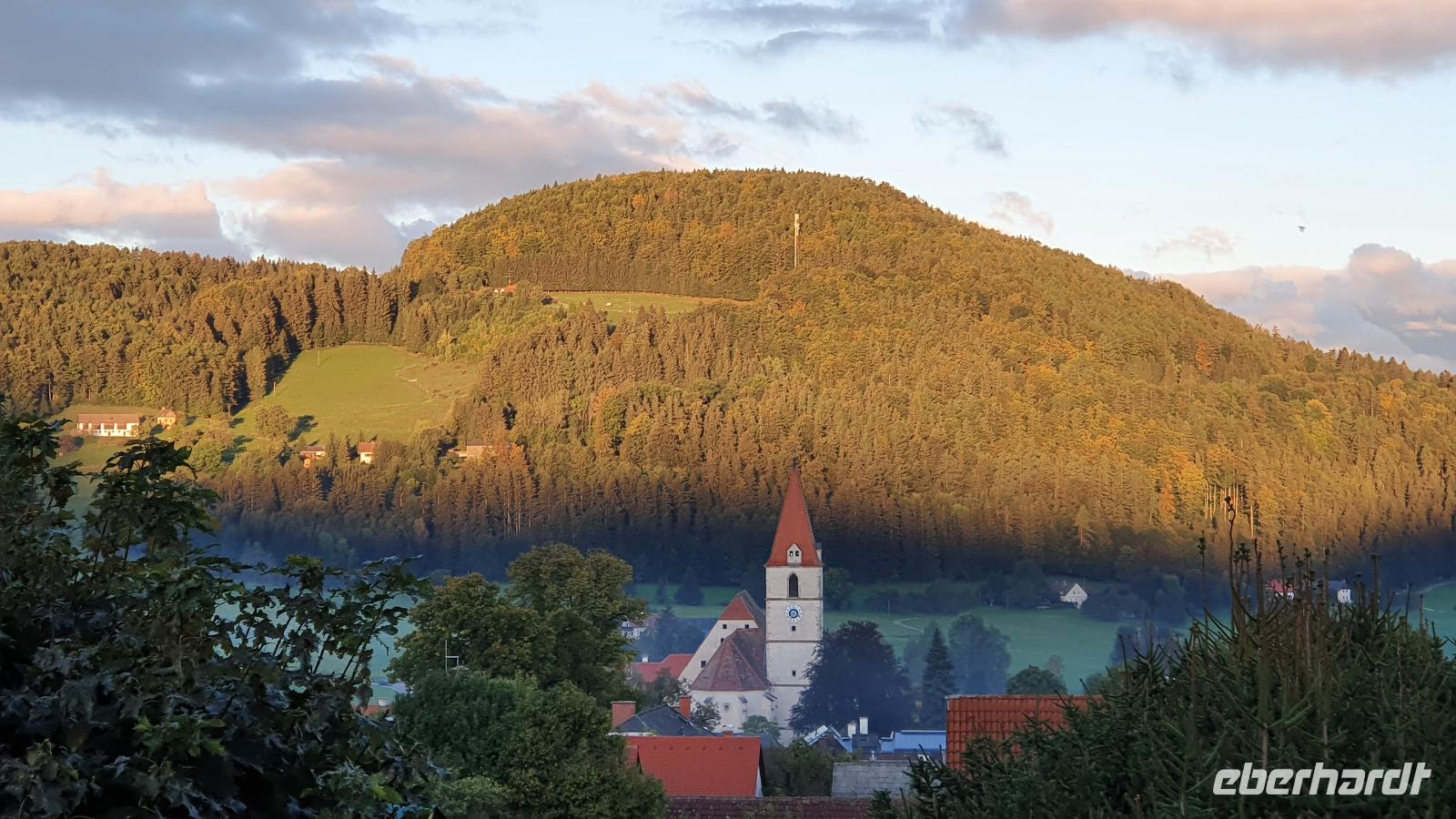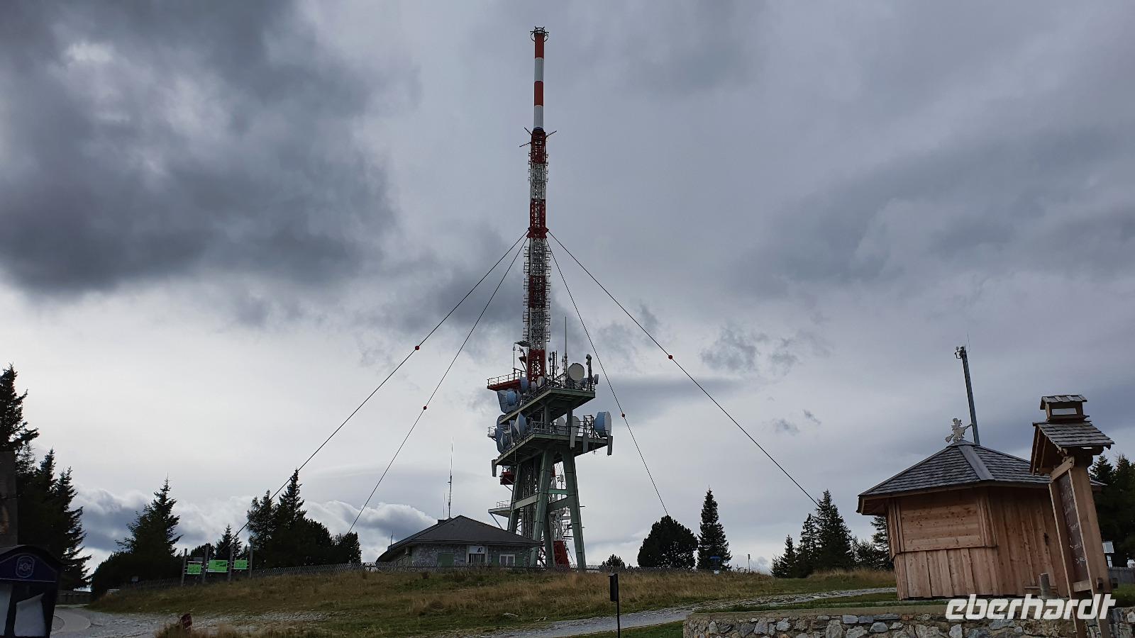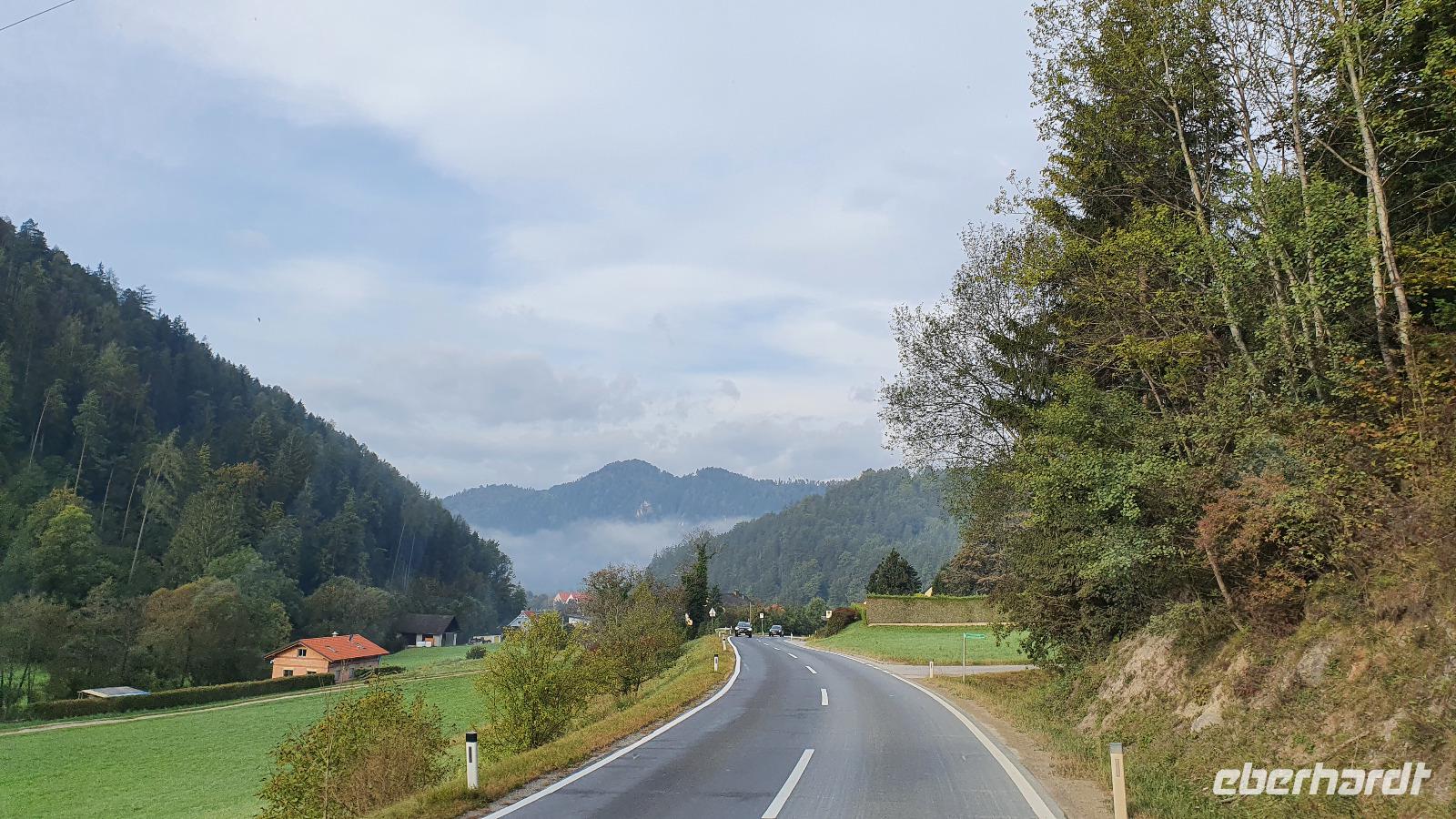 Nebel liegt heute morgen noch in den Tälern, die Sonne schafft es nur selten durch die Wolken und auch der Wind hat merklich zugenommen. Das stört uns nicht weiter, Falk fährt uns sicher und souverän zu unserem ersten Stopp für heute: zur St. Barbara-Kirche nach Bärnbach, besser bekannt als