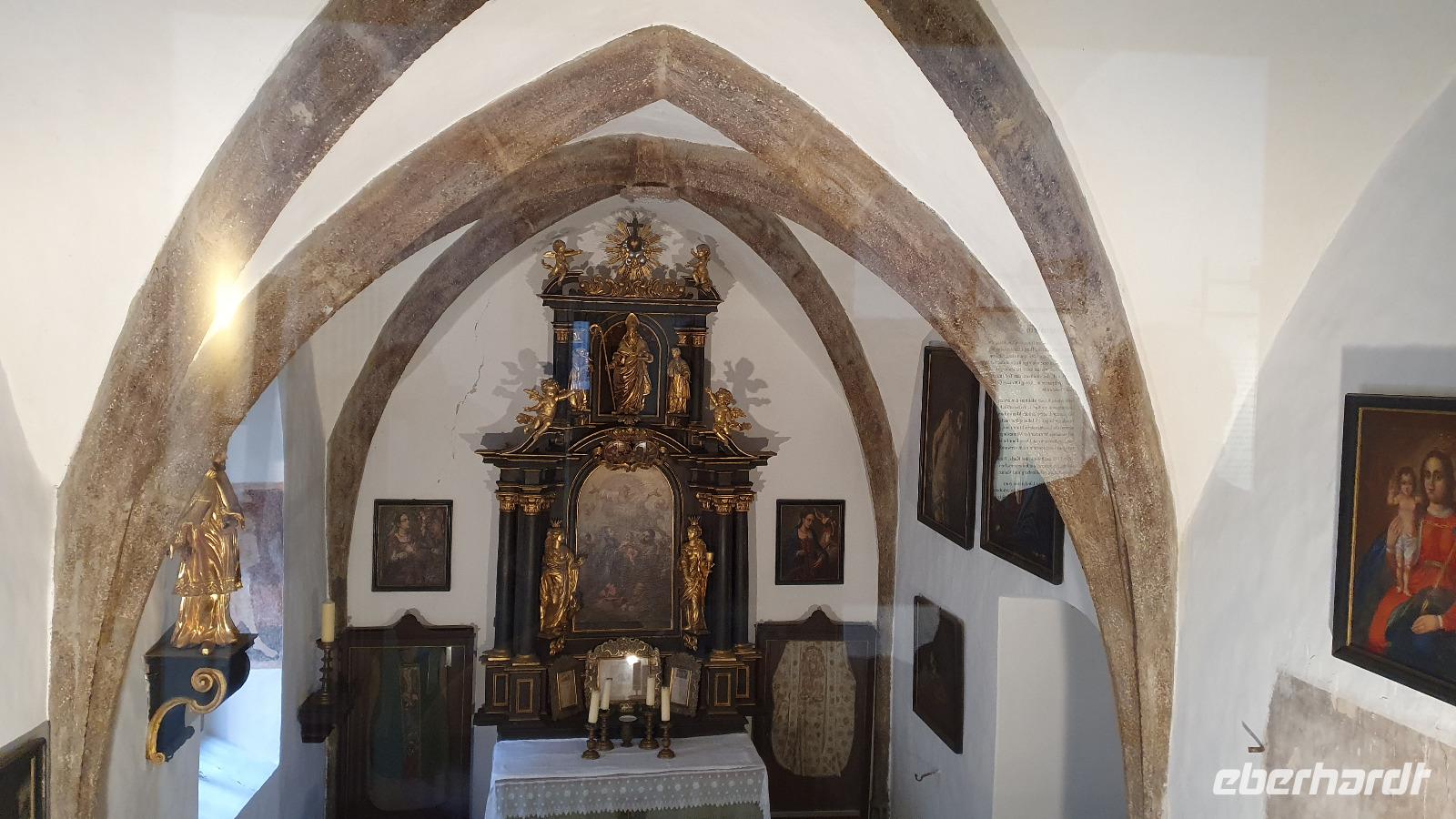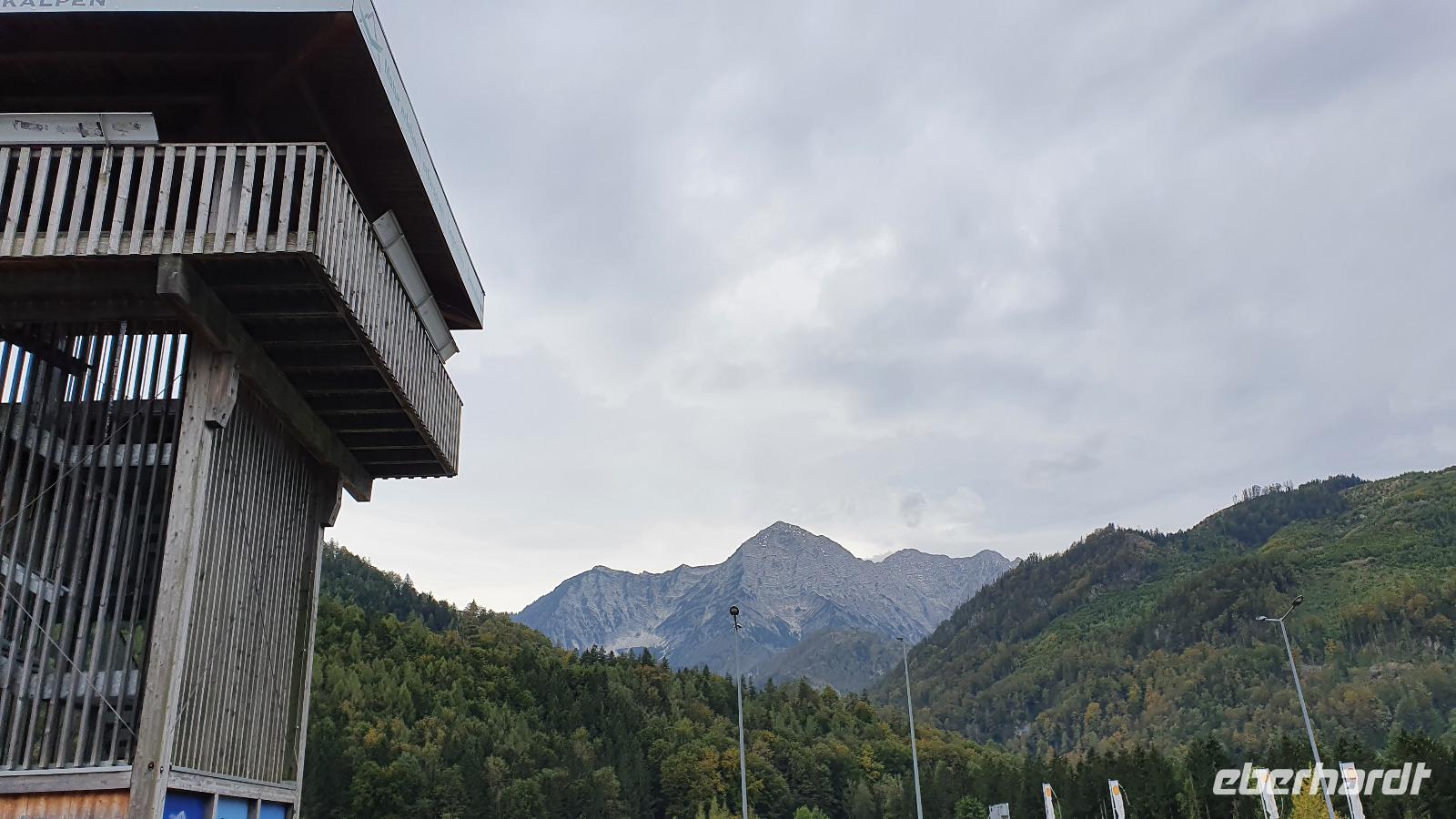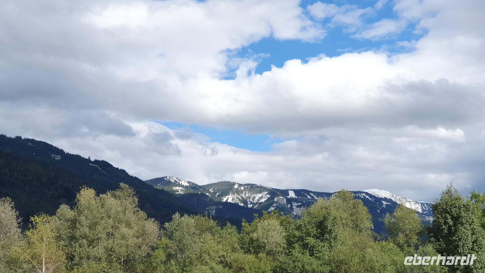 Nebel liegt heute morgen noch in den Tälern, die Sonne schafft es nur selten durch die Wolken und auch der Wind hat merklich zugenommen. Das stört uns nicht weiter, Falk fährt uns sicher und souverän zu unserem ersten Stopp für heute: zur St. Barbara-Kirche nach Bärnbach, besser bekannt als
