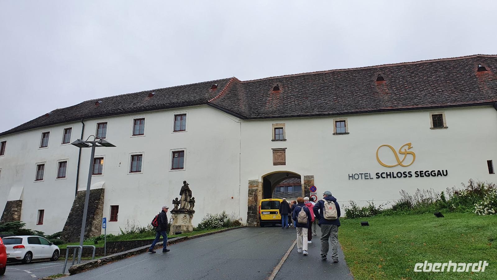So schön wir gestern empfangen wurden in der Steiermark- so verregnet beginnt unser Tag heute. Ui, das kann ja nur besser werden. Also lassen wir uns das Frühstück schmecken und begrüßen dann Franz- unseren örtlichen Reiseleiter heute. Zuerst einmal erfahren wir, dass wir uns im Bezirk Grazer Umgebung befinden, einem der 13 Bezirke der Steiermark. Semriach selber blickt bereits auf mehr als 850 Jahre zurück. Die katholische Pfarrkirche, an der wir vorbeifahren, wurde bisher 3 Mal umgebaut. Dann erzählt er von der Geschichte, den einfallenden Heeren, denen die Mur ein natürliches Hindernis war, den Wehranlagen und Wehrkirchen. Dann fahren wir durch den Plabutschtunnel- mit 10 Kilometern der längste Tunnel Österreichs. Die Autobahn führt uns weiter nach Süden bis wir sie bei Lebring verlassen und schlussendlich unser erstes Ziel für heute erreichen: