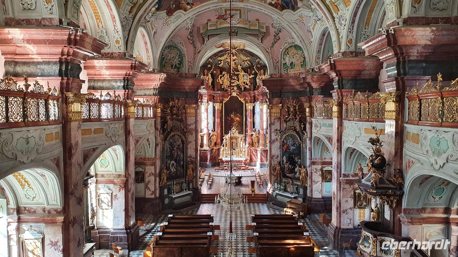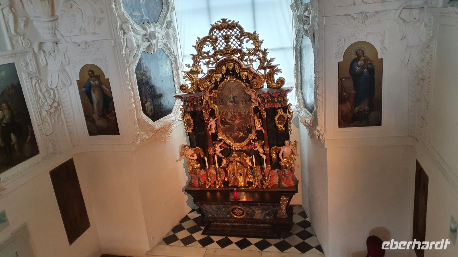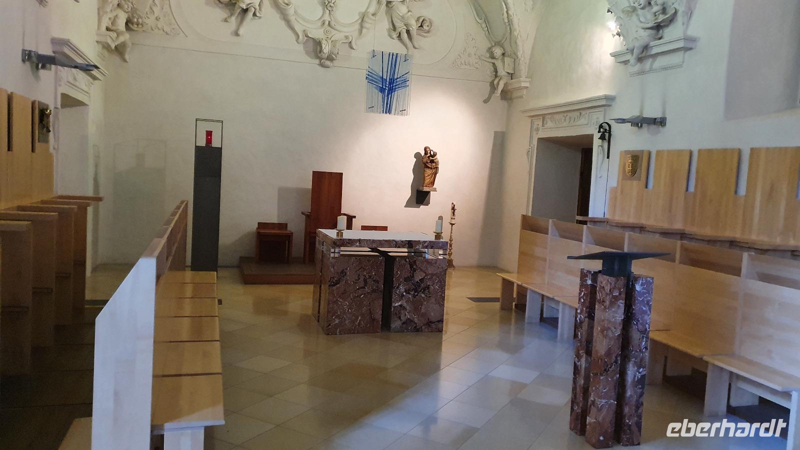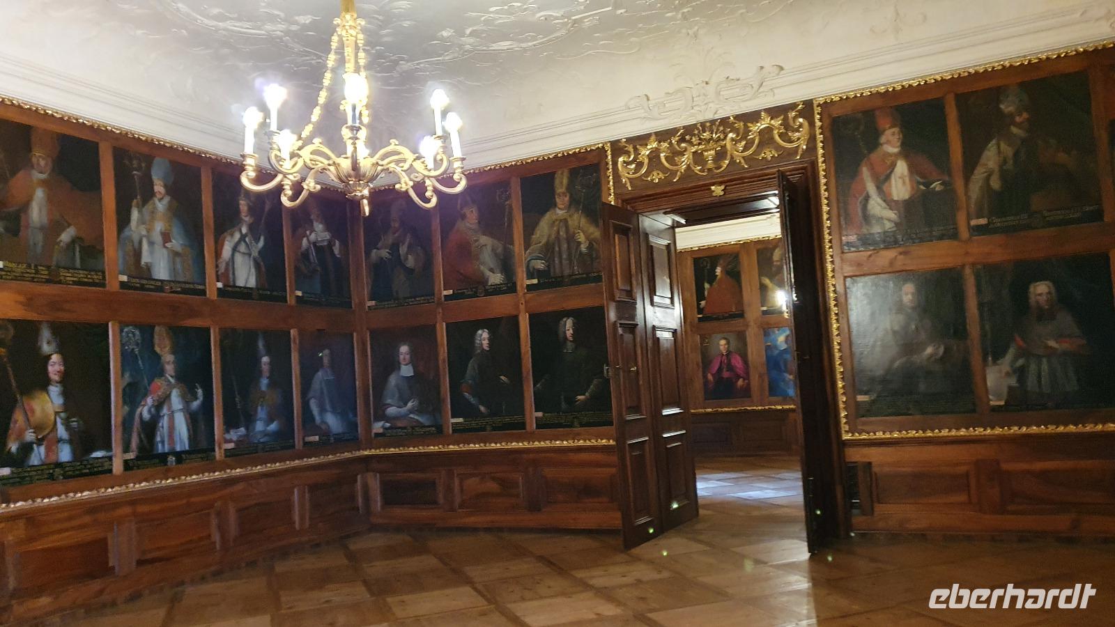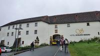 Der Bischofssitz beherbergt heute auch ein modernes Hotel mit Seminarräumen und natürlich nach wie vor ein Kloster. Bei einer Führung lernen wir das große Areal kennen, die moderne Michaeliskapelle genauso wie die traditionelle Marienkapelle. In den bischöflichen Räumen bestaunen wir die kunstvoll gestalteten Keramiköfen und staunen, dass man ca. 8 Tage benötigte, bis sie eine Temperatur erreicht hatten, die wenigstens etwas Wärme an den Raum abgab. Da konnte man schon verstehen, dass der Bischof ab und zu in seinem Bett liegen blieb und dem Gottesdienst in der Marienkapelle unterhalb seiner Räume von eben diesem durch ein Fenster zur Kapelle verfolgte. Natürlich durfte ein Besuch bei der Liesl nicht fehlen. Die größte Glocke hier. Unbeschadet hatte sie den Krieg und die drohende Einschmelzung überstanden weil die Soldaten, die sie abholen sollten, mit viel gutem Wein des Klosters "umgestimmt" werden konnten. Und