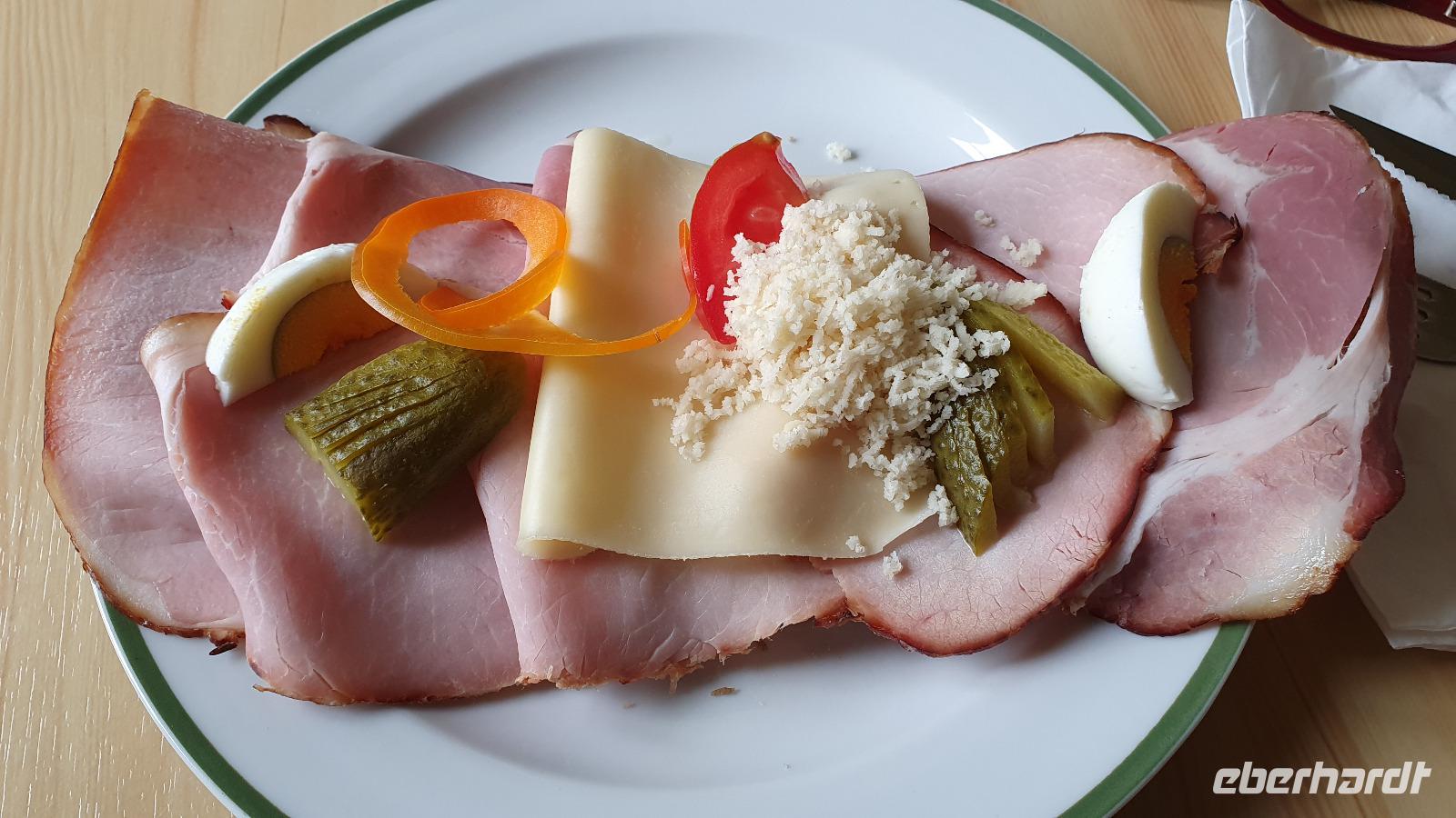 Salate, saures Rindfleisch mit Zwiebeln und Ei, eine kräftige Vorsuppe, Krustenbraten, Backhenderln, Kraut und Knödel...sooo lecker. Als Abschluß Eis mit Kürbiskernöl und Kürbiskernen. Hmmm. Da griff jeder beherzt zu und wir ließen es uns schmecken. So klang auch unser letzter Abend hier aus und es hieß: Koffer packen, morgen früh geht es nach Hause.
