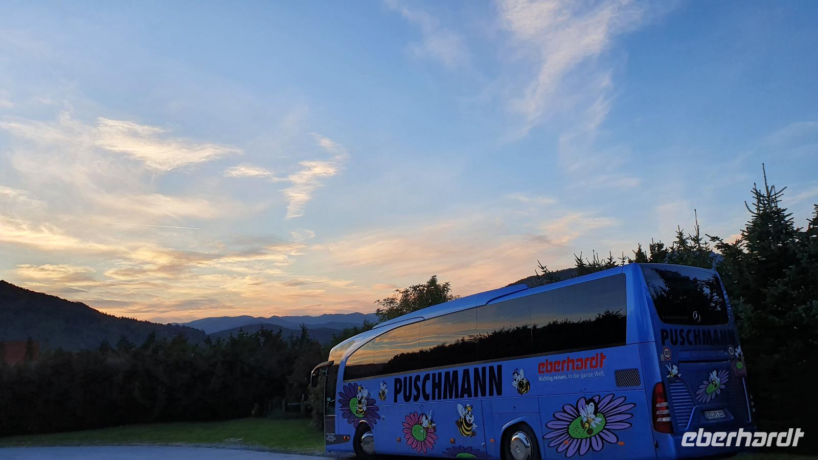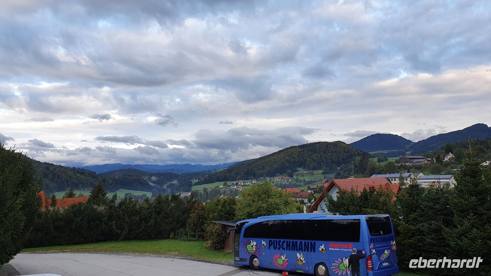 Wie immer geht es zeitig am Morgen los. Mehr als 700 Kilometer liegen vor uns und wollen unter die Räder genommen werden. Am Rasthof Vogtland ist unsere Gruppe bereits komplett und auch Falk- unser Busfahrer steigt hier zu. So startet unser Bienchen-Bus Richtung Süden. Es geht vorbei an Regensburg und Passau, mehrfach kreuzen wir die Donau und schon sind wir in Österreich angekommen. Wir genießen den Blick auf die Berge, es ist bereits erster Schnee gefallen und die Sonne läßt alles funkeln und strahlen- ein besseres Willkommen hätten wir uns gar nicht wünschen können. So erreichen wir schließlich Semriach und unser Hotel, den
