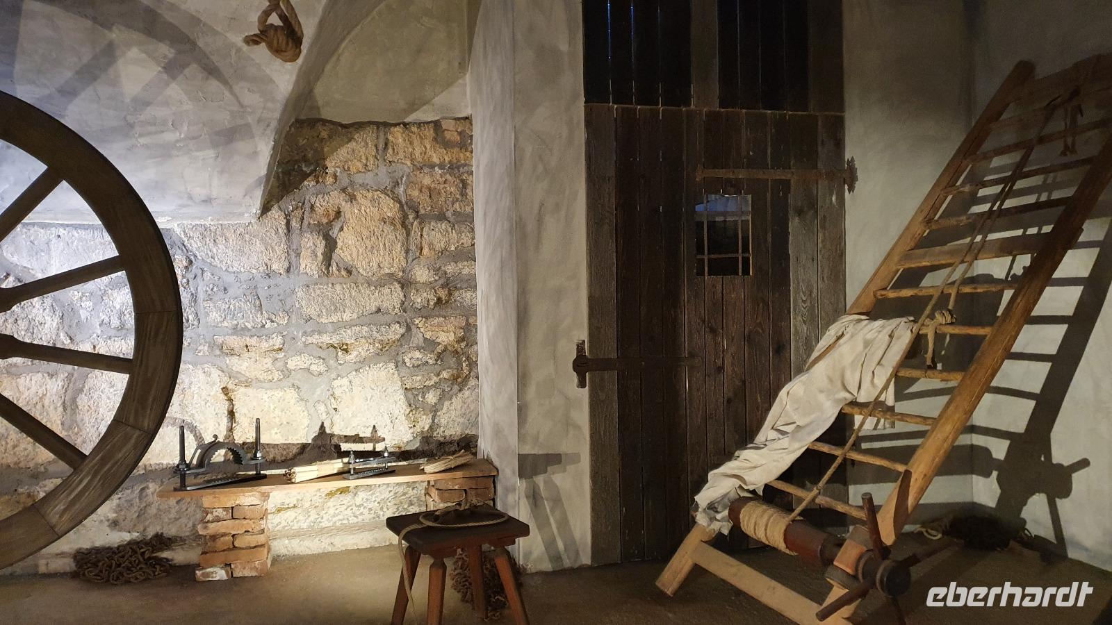 an. Wenn Vorurteile zu Urteilen werden- so ein sehr aktueller Satz aus der Ausstellung. Geschildert wurde, wie schnell man denunziert und angezeigt werden konnte, wie vernichtend die Folter und die dadurch erzwungenen Geständnisse waren. Wer wollte, warf einen Blick in die Folterkammer und auch in den Kräutergarten, für den Hexen damals berühmt waren. Den Bogen in die Gegenwart spannte dann die Ausstellung zu aktuellen Verfolgungen in verschiedenen Ländern- immer noch mit denselbem Muster wie damals: was ich mir nicht erklären kann....Sehenswert war auf jeden Fall auch das Waffenmuseum. Die Burgtaverne lud zu einer Stärkung ein bevor es wieder zum Bus ging. Wer wollte, zu Fuss den Berg hinab, oder auch mit dem Schrägaufzug zurück. So