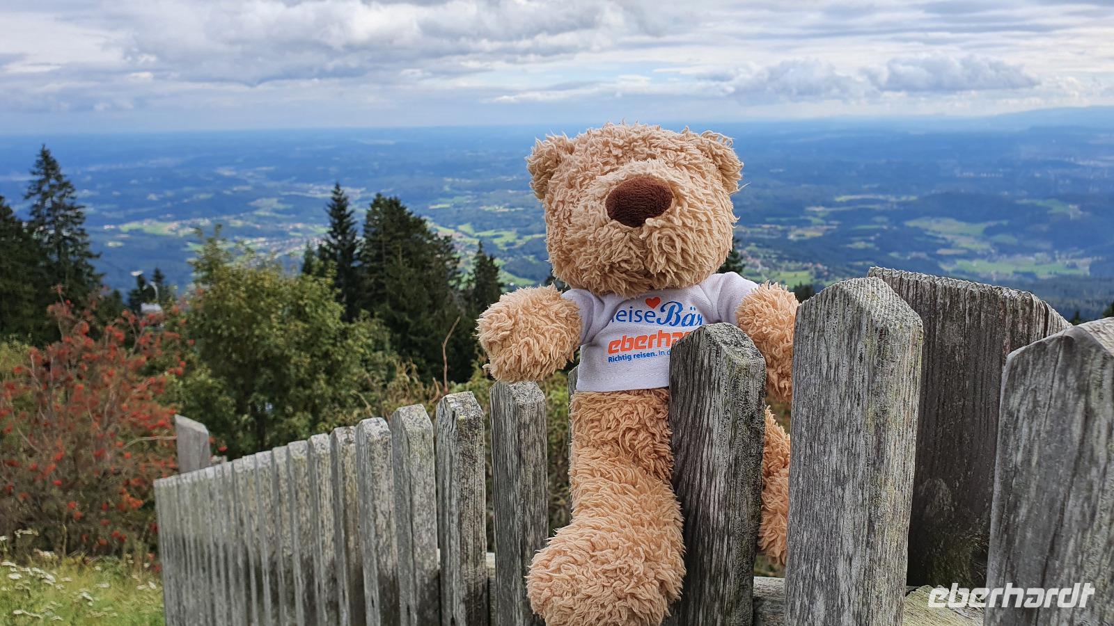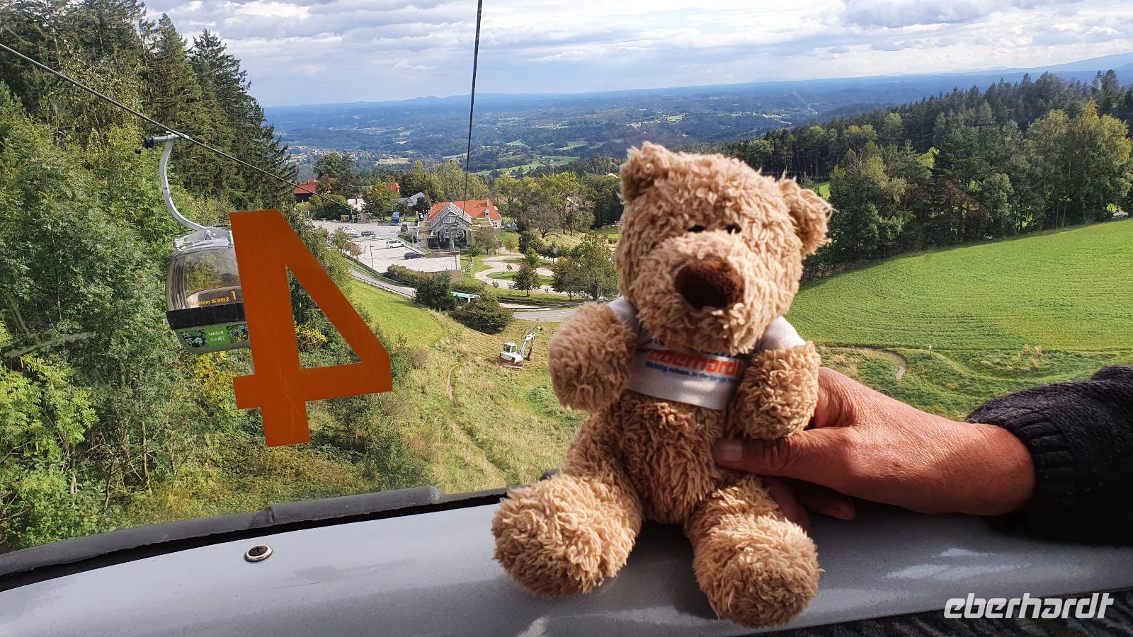 vorzuziehen. In St. Radegund erreichten wir die Talstation der Seilbahn hinauf zum Hausberg der Grazer. Rasch hatte ich die Tickets organisiert und schon ging es in 4er Gruppen in Kabinen bis auf 1435 Meter hinauf. Jeder konnte individuell den Berg erkunden, zum Gipfelkreuz spazieren, einen Rundweg entlangwandern oder einfach einen Kaffee mit einer herrlichen Aussicht genießen. Am späten Nachmittag dann fahren wir wieder hinab und nun geht es endgültig Richtung Hotel nach Semriach. Ein leckeres Menü beschließt wieder unseren Tag und viele sitzen danach noch zusammen bei einem Glas Wein und lassen den Tag Revue passieren.