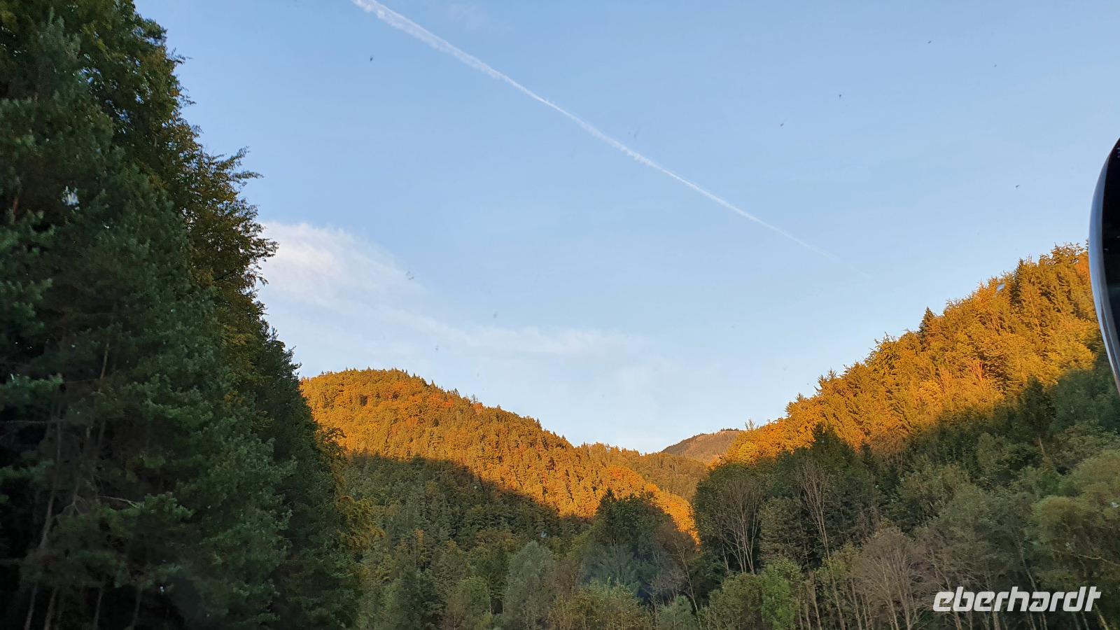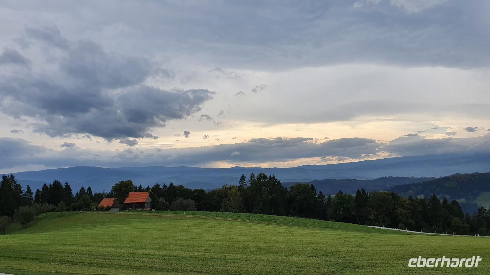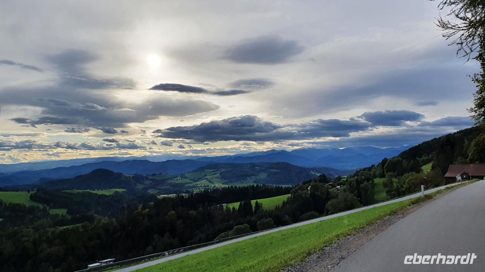 Wir genossen den nun möglichen Ausblick auf die Weinhänge, den Blick in die Täler. Fragten uns nicht nur einmal, wie man in diesen steilen Hängen überhaupt hinauf kommt um zu ernten. Am meisten freuten wir uns über die Sonnenstrahlen, die durchkamen und uns eine wunderschöne Rückfahrt auf schmalen Nebenstraßen vergoldeten. Dank Franz fuhren wir noch an der Ostseite von Graz vorbei, eine Route, die wir (so dachten wir) auf unserer Reise nicht noch einmal fahren würden. Am späten Nachmittag hatten wir dann unser Hotel wieder erreicht und verabschiedeten uns herzlich von Franz. Am Abend beschloss ein leckeres 3-Gänge Menü unseren Tag und wir verabschiedeten uns- bis morgen.
