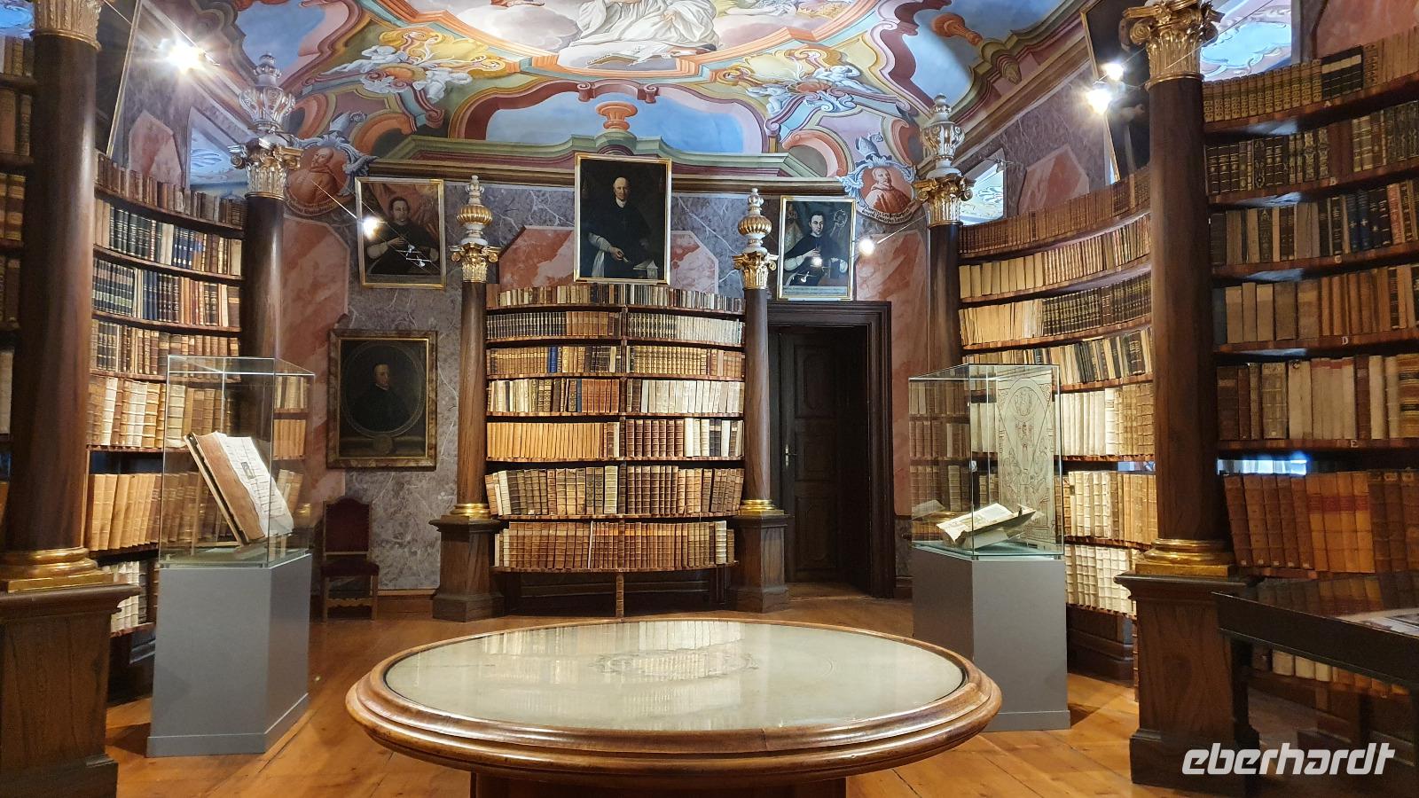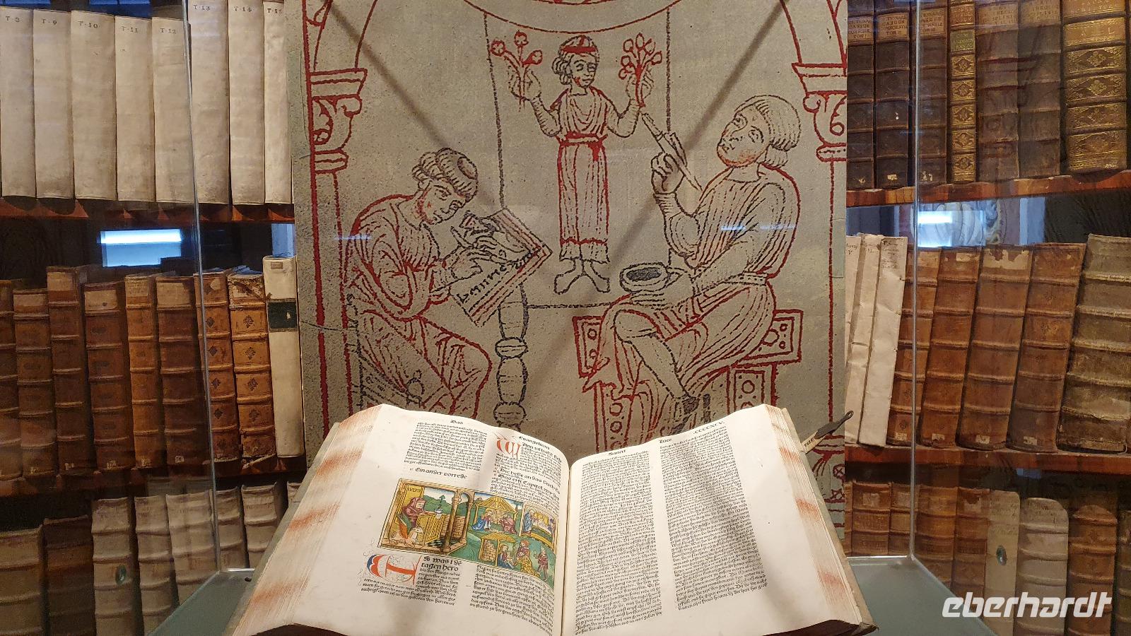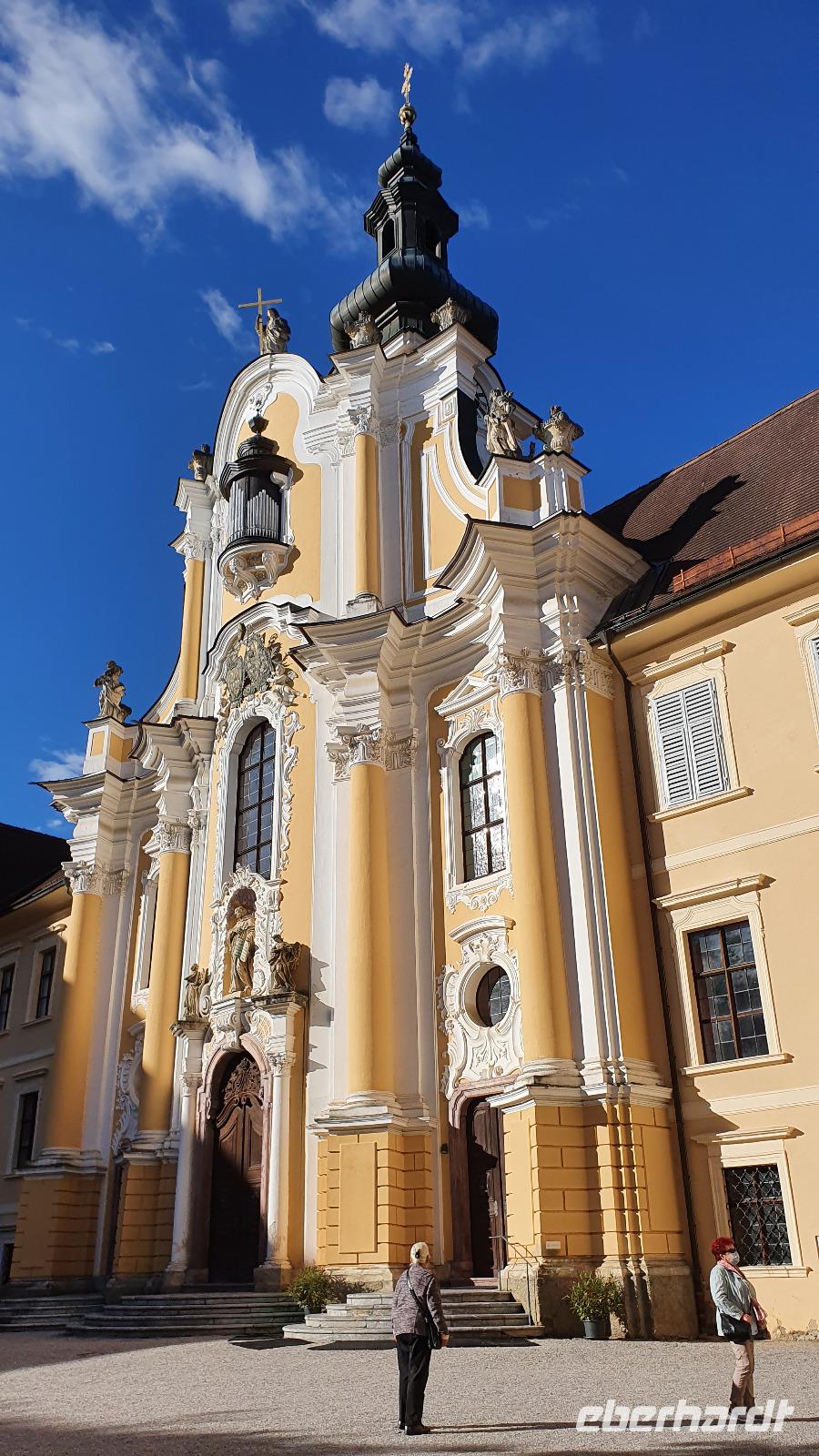 Es ist das älteste Zisterzienserkloster der Welt, wurde 1128 gestiftet. Aufgeteilt in 3 Gruppen werden wir durch die Anlagen geführt. Heute ist hier auch ein Gymnasium untergebracht, also ist es lebendig und ja- zeitweise eben auch laut. Wir beginnen im Barocksaal- wow- tolle Wandmalereien. Dann zeigt uns eine Karte die Ausbreitung der Zisterzienserklöster und auch die Herstellung von Pergament wird veranschaulicht. Schließlich war es die Aufgabe von Mönchen, Bücher dieser Zeit zu kopieren- von Hand wohlgemerkt und dafür brauchte es Papier, Farbe, Stifte, Federn... und so entstanden Marktflecken und dann Gemeinden und Städte. In der Bibliothek dürfen wir uns umschauen, lernen das Projekt Buch-Paten kennen und bestaunen den Tisch aus Marmor, der den julianischen und gregorgianischen Kalender anzeigt. Im Chorgestühl schließlich lernen wir, woher die Redewendung "Halt die Klappe" kommt (von den Sitzbänken, die hochgeklappt werden konnten und -wenn sie herunterfielen- einen Riesen-Krach verursachten). Selten, dass der Chor im ersten Stock ist- aber wir konnten schon einmal einen Blick hinunter in die Kirche werfen. Vorher aber ging es in die Kapelle, wo uns auch der Prior ein herzliches Grüß Gott zurief, hier konnte man auf das Grab des Stifters herabblicken. Ein Glasboden machte es möglich. Ein Besuch der Kirche dann rundete unsere Erkundung ab. Im Klosterladen gab es noch das eine oder andere Souvenir und am Bus trafen wir uns alle wieder. Auf ging es Richtung Süden. Eine Mittagspause mit Bordservice stärkte uns für das nächste Abenteuer: