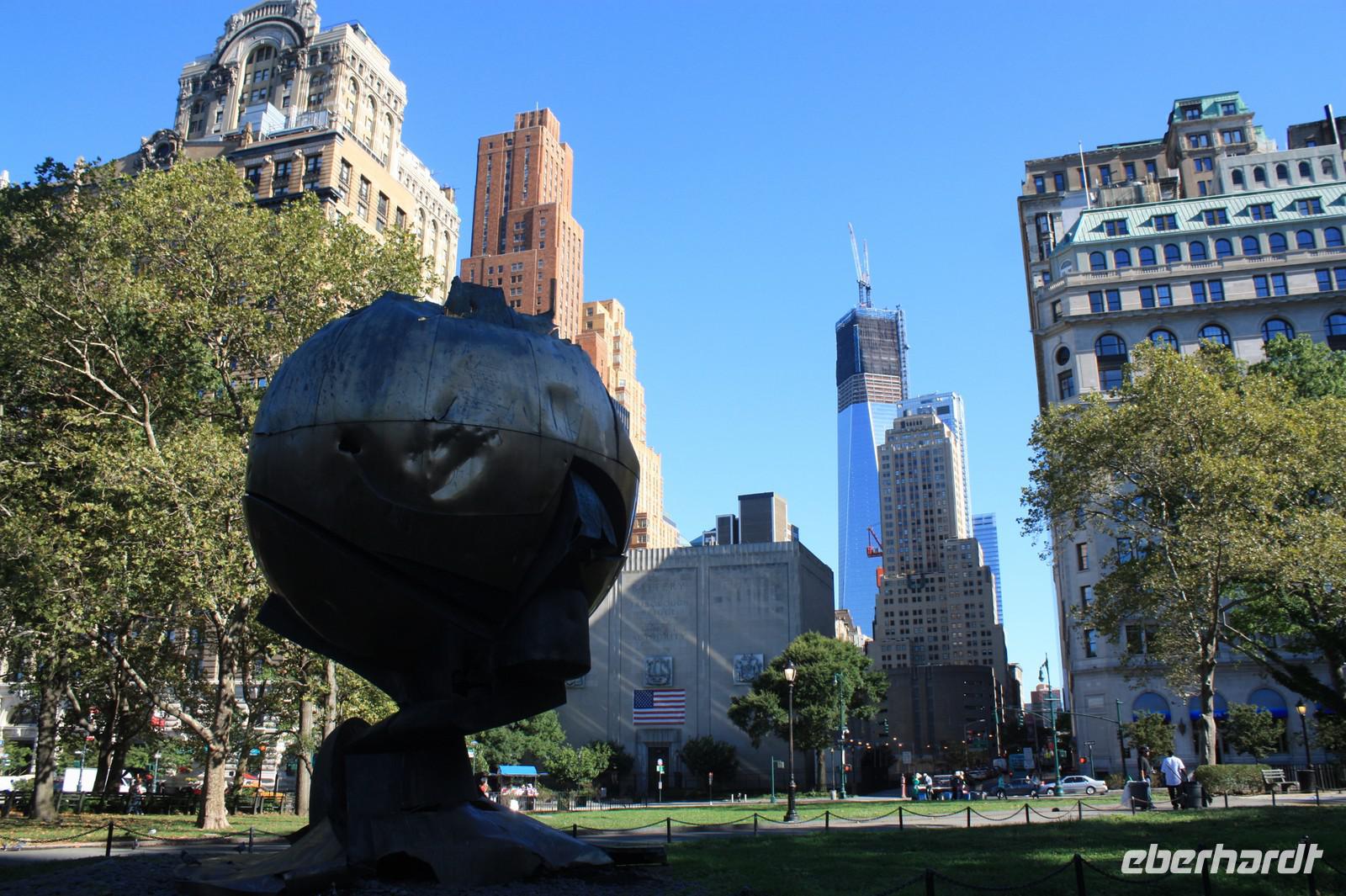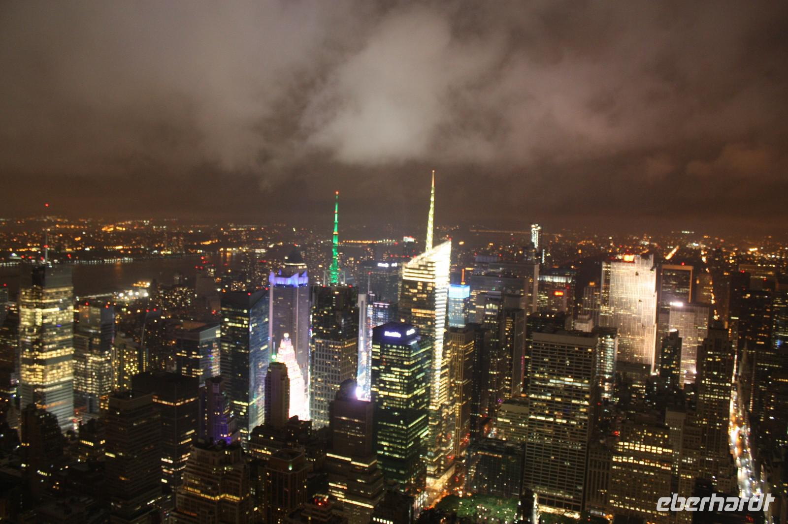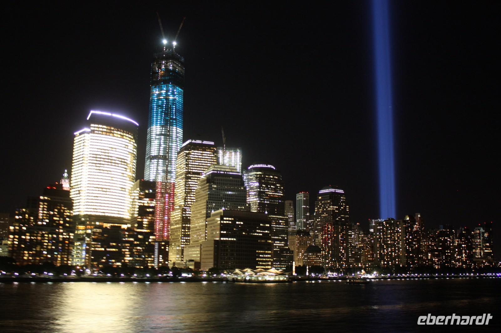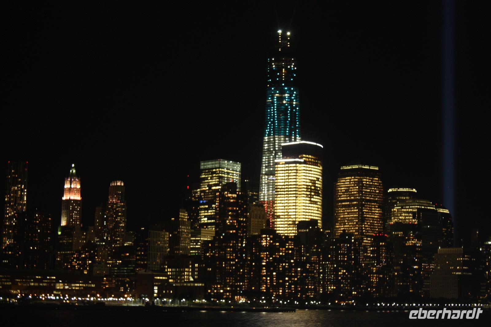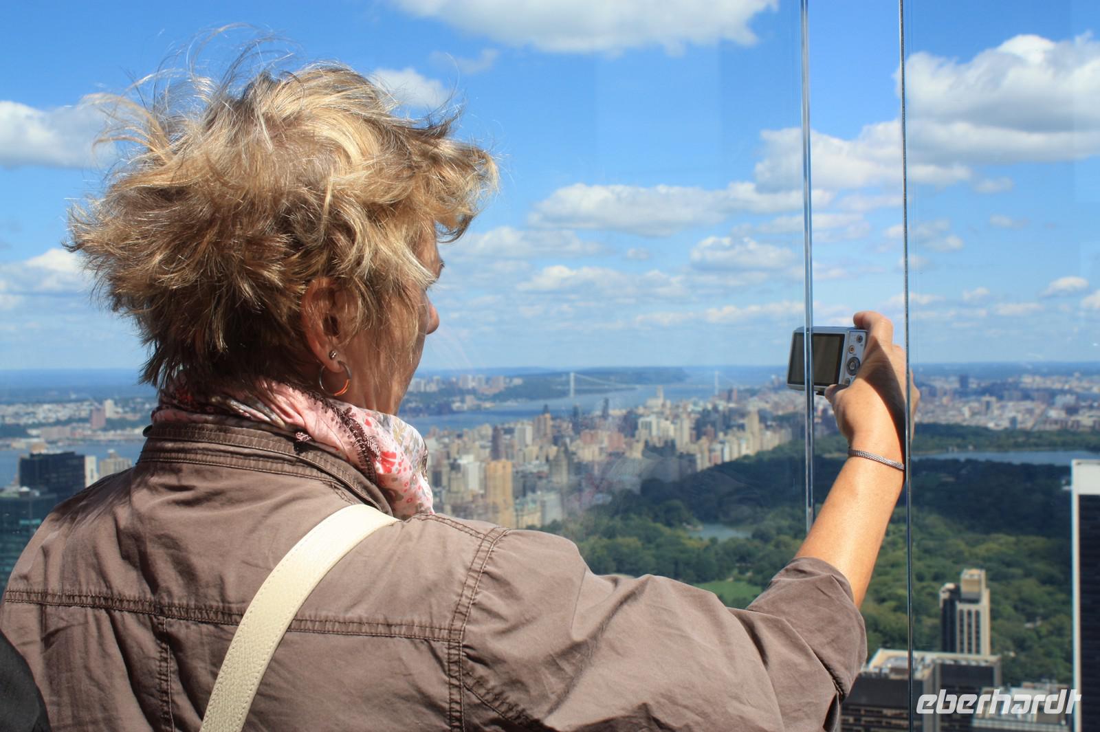 Die erste Nacht auf Schiff liegt hinter uns. Ein sonniger Montag in New York erwartet uns. 9 Eberhardt Gäste begleite ich, Reisebegleitung Nicole Hickmann, auf dem heutigen AIDAAusflug "Big Apple: New York, New York". Ein Ganztagesausflug liegt vor uns mit teils schon Bekanntem, teils Neuem. Toni, unser heutiger örtlicher Reiseleiter erfüllt wahrlich das Klischee "Klein aber oho ..." Mit Wortwitz und Charme bringt uns der gebürtige Frankfurter, einstiger Vertriebener und jetziger Wahl-New Yorker seine Stadt bei. Per Bus fahren wir auf ähnlicher Route vom Vortag, den Broadway entlang, zum West Central Park, Harlem und die 5th Avenue entlang zum Rockefeller Centre. Von oben schauen wir nun bei Tag auf die Millionenmetropole. Im Anschluss gönnen wir uns eine Verschnaufpause am South Street Seaport unterhalb der Brooklyn Bridge und folgen der Versuchung von Hot Dog, Hamburger & Co. Das letzte Drittel unseres Tagesausfluges führt uns noch zur Kirche St. Paul unweit Ground Zeros, dem Standort der Zwillingstürme bis 2001. One World Tower erhebt sich an deren Stelle 1776 Fuß über der Gedenkstätte. Mit dem Rucksack gefüllt voller Erlebnisse kehren wir zurück zur AIDA. Krönender Abschluss des Tages ist die Ausfahrt aus New York. Gemütlich sitzen wir in der Ocean Bar, versteckt auf Deck 7 ist sie wahrlich ein Geheimtipp. Bei Americano, Tequila Sunrise und Hugo laufen wir aus, vorbei an einmaliger Kulisse.