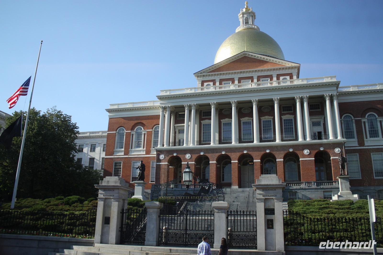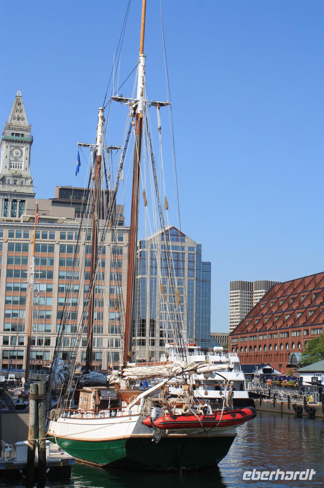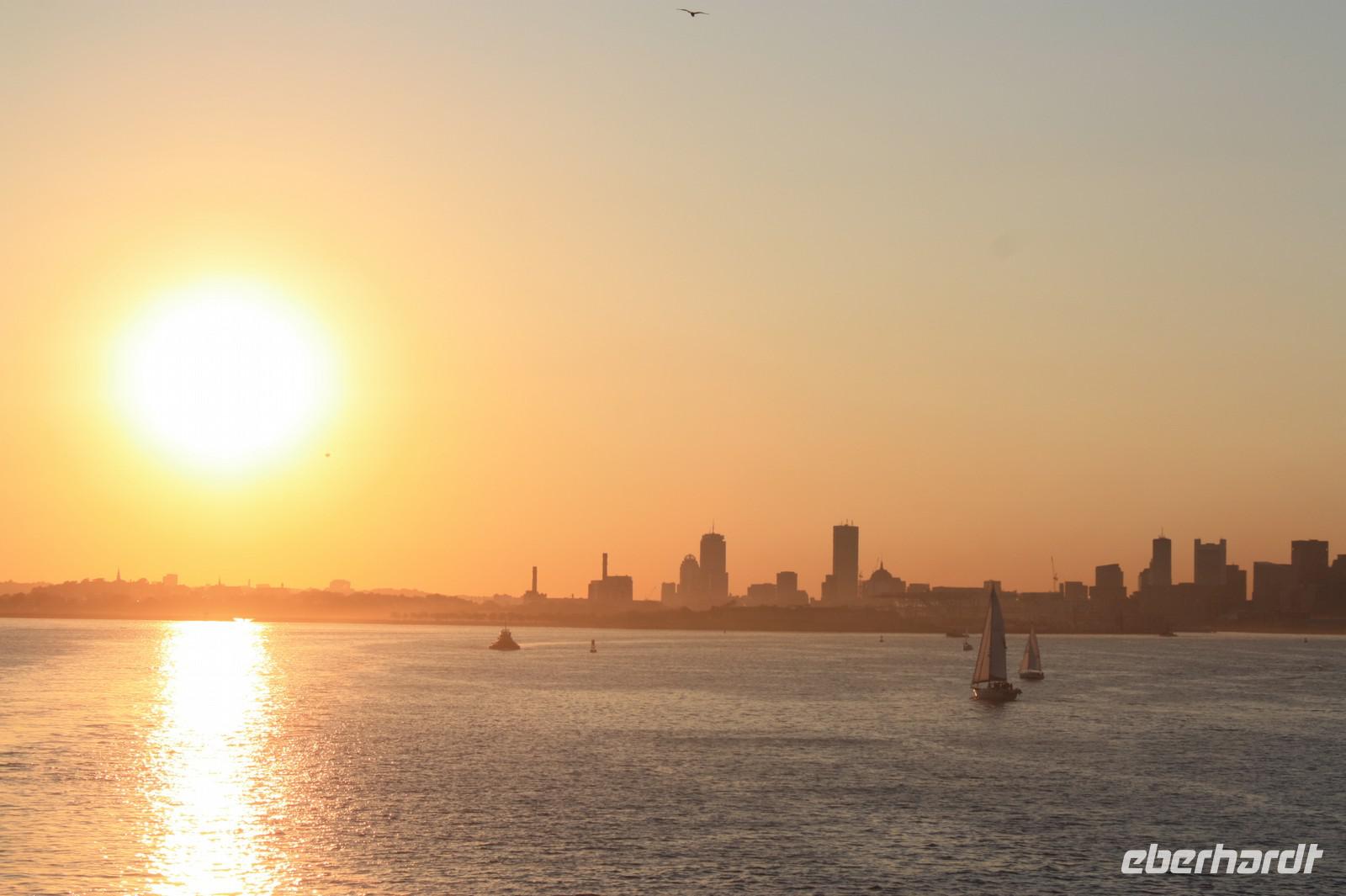 Es ist Mittwoch, der 12.09.2012. Wir haben bereits im Hafen von Boston angelegt. Wieder einmal scheint die Sonne. Unser heutiger AIDAAusflug beginnt erst zur Mittagszeit. So nutzen wir die Zeit für einen ersten Landgang bevor uns Margret ihre Wahlheimat Boston am Nachmittag näher bringt. Trotz anfänglicher Probleme mit dem Mikrofon nahm die Stadtrundfahrt vorbei am Parlament, Boston Common und Boston Public Garden ihren Lauf. Glücklicherweise sitzen wir, die Eberhardt Reisegruppe in den vorderen Reihen und haben somit keinerlei Probleme den Erzählungen der örtlichen Reiseleiterin zu folgen. Unser nächstes Ziel des Tages ist Camebridge mit seiner berühmten Eliteuniversität Harvard. All die Geschichten, Mythen und Legenden, die sich um diese Universität ranken, verspüren ihren Charme, als wir den Campus betreten. Es ist eine Welt für sich. Beeindruckend. Die Zeit drückt, sodass wir unsere Rundfahrt fortsetzen gen Beacon Hill, das Viertel der Reichen und Schönen Bostonier. Wir vertreten uns die Beine, werfen den ein oder anderen Blick durch die Fenster der schönen Wohnhäuser doch langsam wird es Zeit. Unsere halbtägige Stadtrundfahrt neigt sich dem Ende. Wir wollen schließlich nicht unser Schiff verpassen. Auf dem Weg zum Hafen sehen wir noch das Boston State House, die Charlestown Bridge und stoppen kurz an der USS Constitution, die das Herz eines jeden Segelschiffliebhabers schneller schlagen lässt. Den letzten Eindruck über Boston erhaschen wir noch, als wir am Boston Tea Party Museum vorbeifahren und 2 der 3 originalnachgebauten Schiffe vom Bus aus sehen. Pünktlich sind wir zurück an Bord und die AIDAaura nimmt Kurs auf Bar Harbor. Beim Auslaufen ziehen alle Passagiere an Deck nochmals den Bord den Kopf ein, als eine Lufthansamaschine gefühlt zu tief über uns hinweg fliegt. Ein Wahnsinns Spektakel zum Abschied von Boston.