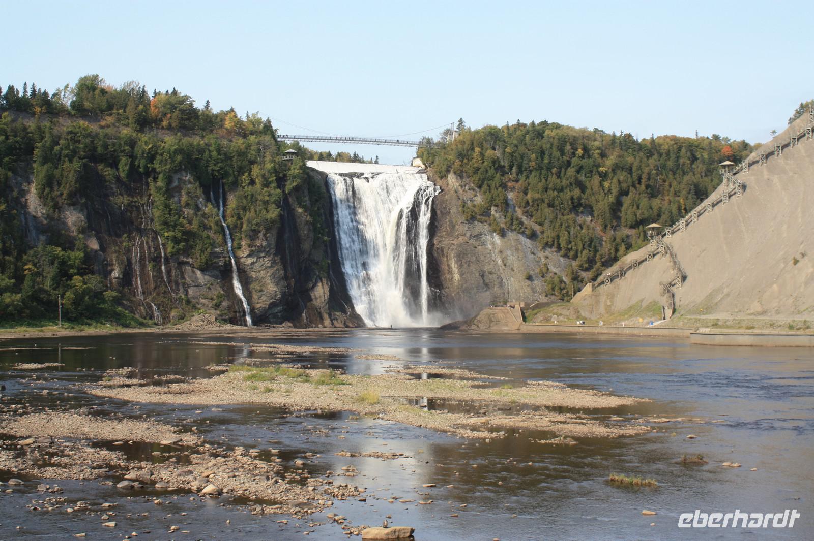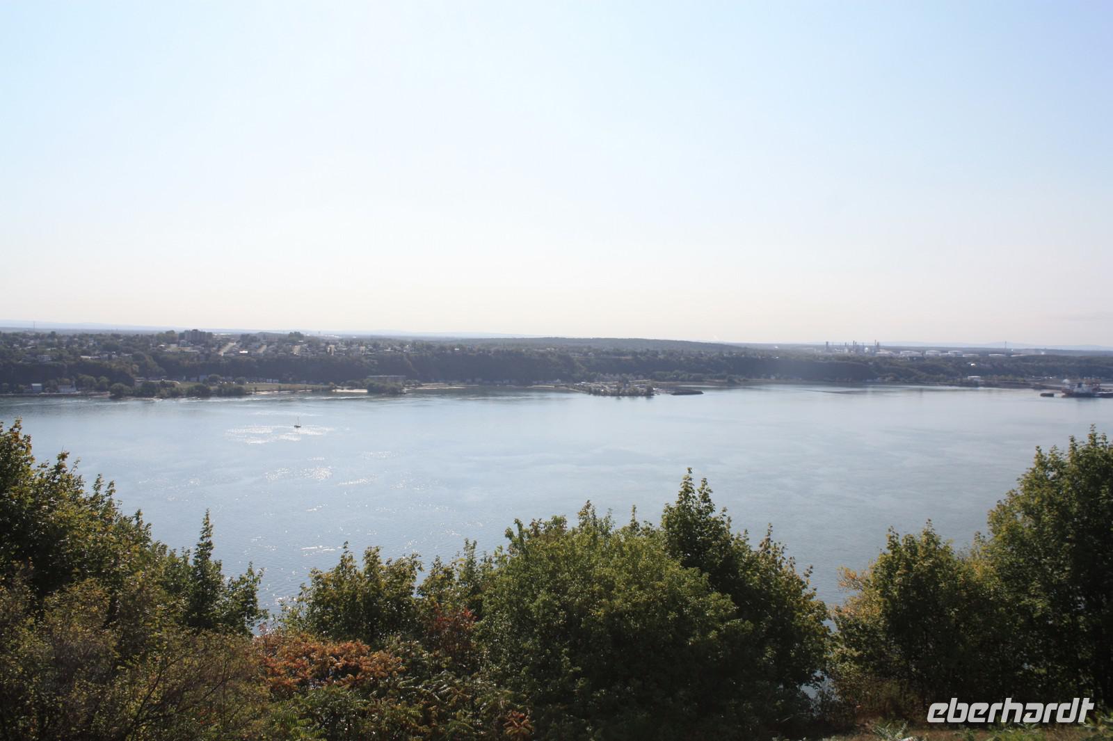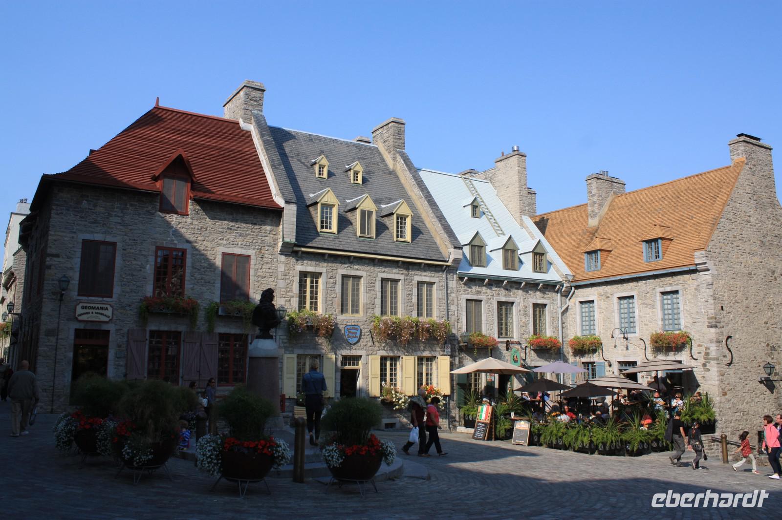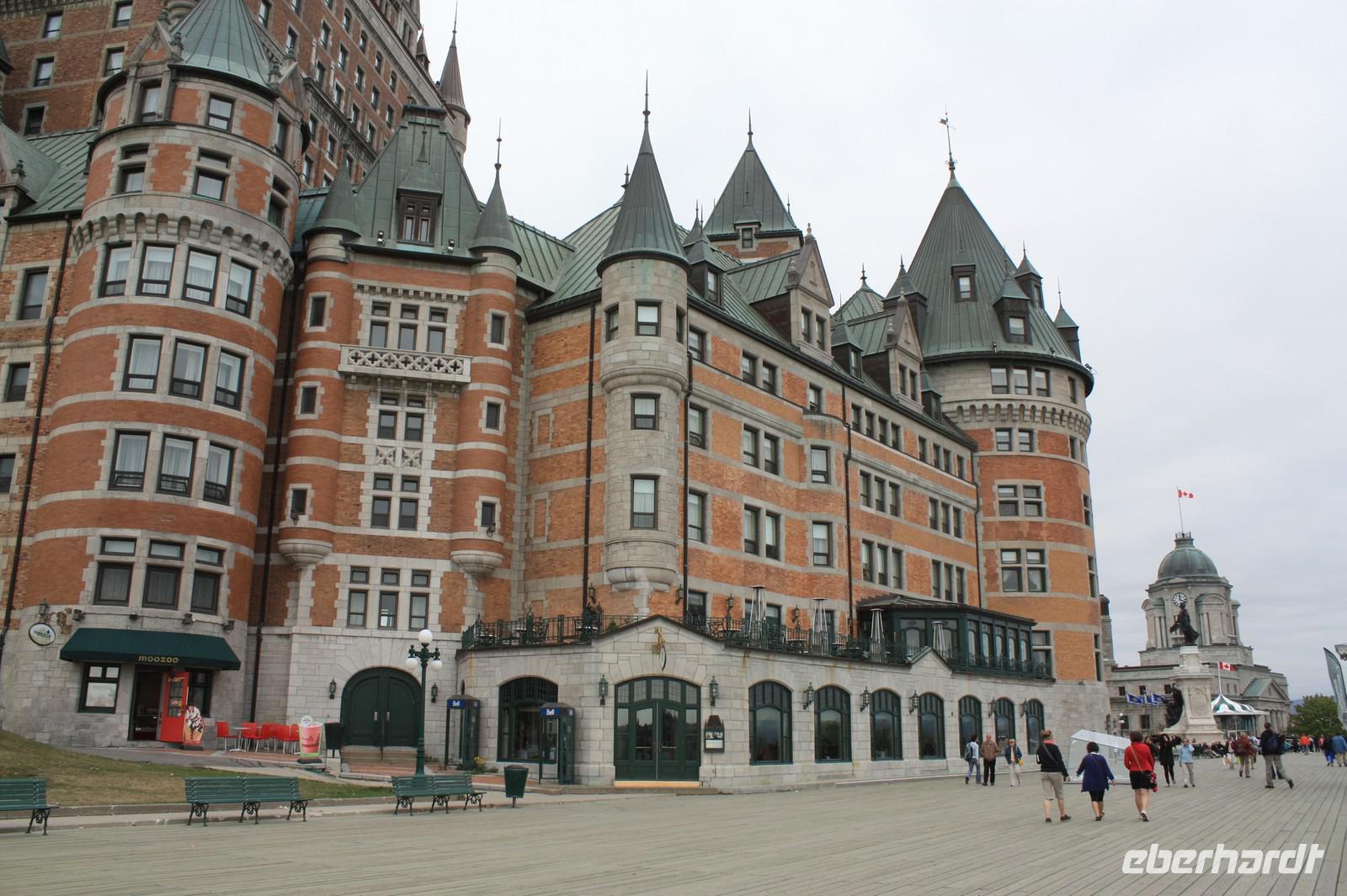 Wir schreiben den 17.09.2012. Heute mussten wir uns nicht mit all den anderen ca. 1250 Passagieren die Ausflüge teilen sonder veranstalteten unseren exklusiven Eberhardt-Ausflug Quebec. Leider fiel kurzfristig unsere Deutsch sprechende Reiseleiterin aus, sodass wir mit John vorliebnahmen. Letztendlich arrangierten wir uns gut, denn ich als Reisebegleiterin übersetzte eifrig. John, ein bekannter Journalist und Moderator, lebte einst für wenige Jahre in Deutschland. So verständigten wir uns in einem multilingualen Kuddelmuddel. Im Laufe der ganztägigen Stadtrundfahrt sahen wir das Parlament, Plains of Abraham, Brave Avenue, die Altstadt natürlich mit dem „Märchenschloss" Chateâu Frontenac, Cap Diament mit Blick auf unsere AIDAaura und die Funiculaire. Zusätzlich nach all den Sehenswürdigkeiten der Stadt chauffierte uns unser französisch sprachiger Busfahrer zur Île d'Orleans, dem Obst- und Gemüsegarten der Stadt und Umgebung links und rechts des Sant' Lorentz Strom. Kürbisfelder, Weinplantagen, Ahorngesäumte Straßen. Malerisch präsentiert sich uns die Insel. Zum Abschluss unserer geführten Fahrt halten wir an den Montmorency Falls, vor den Toren der Stadt. Unweit des Place Royal endet unser Eberhardt-Ausflug. Fußläufig zum Hafen befinden sich alle Sehenswürdigkeiten, sodass der ein oder andere nochmals auf eigene Faust die „französische Stadt" inmitten Kanadas erkundet.