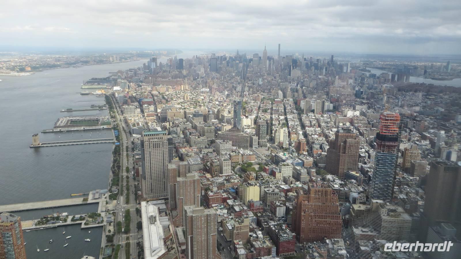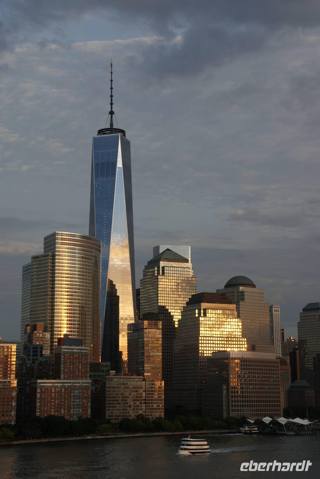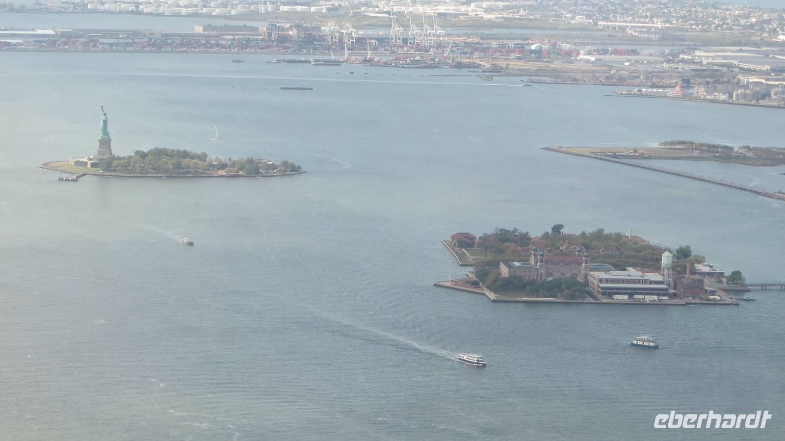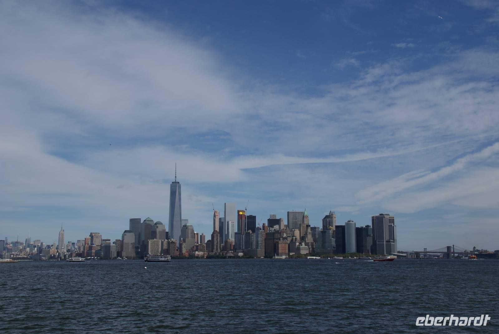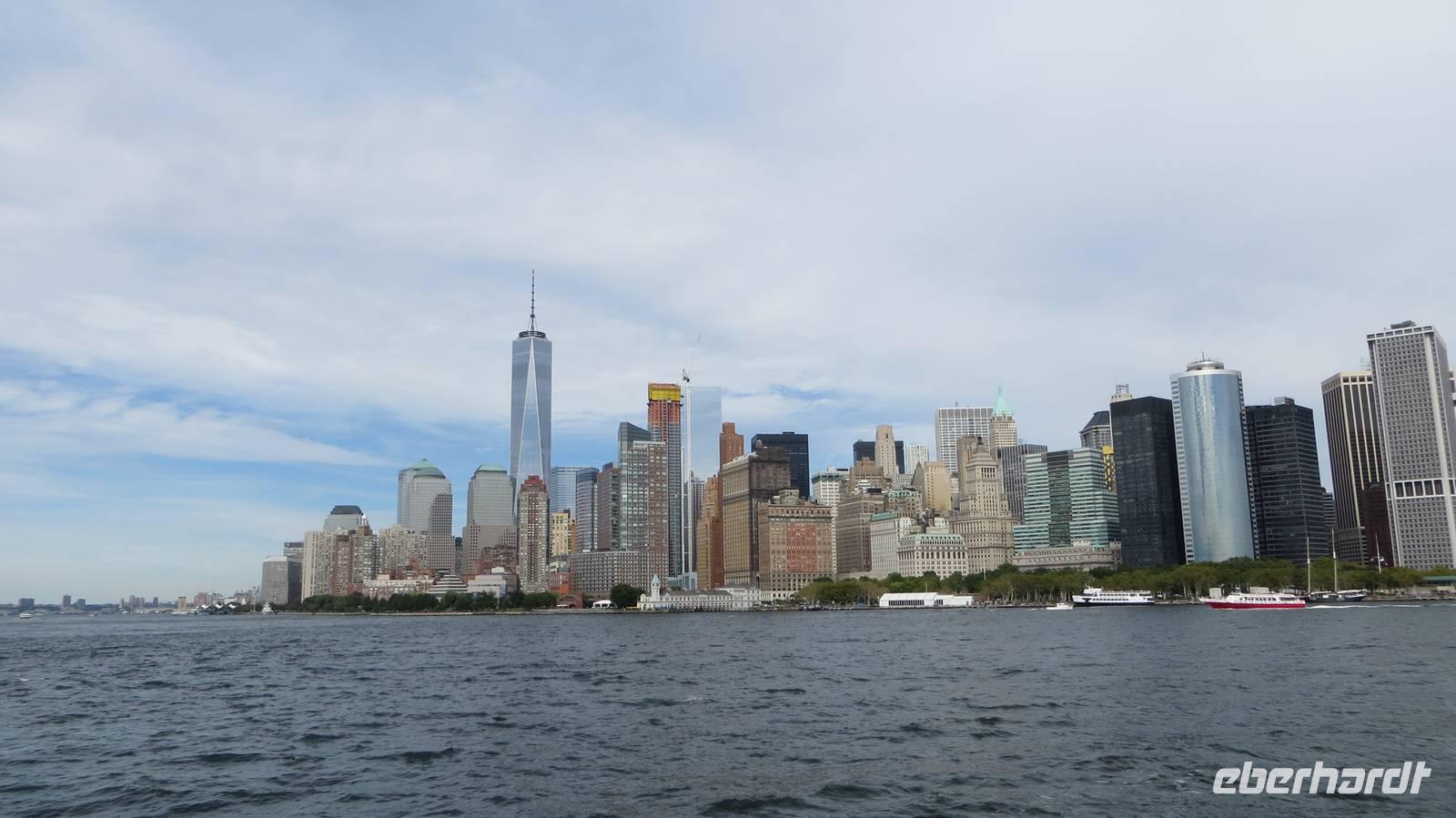 Nachdem wir die letzten Tage das frühe Aufstehen bereits geübt hatten, trafen wir uns am heutigen Tag frisch gestärkt nach dem Frühstück gegen 9 Uhr. Joscha machte sich mit zwei Gästen und jeweils zwei Rädern auf den Weg, die Stadt nochmals aus einem anderen Blickwinkel - dem des Radfahrers - zu betrachten. Einige Gäste hatten sich im Vorfeld bereits überlegt, was sie am heutigen Tag mit Ihrer freien Zeit in New York anfangen wollten und erlebten ebenfalls einen gelungenen Tag. Ein Großteil der Eberhardt-Reisegäste war jedoch mit mir (Maria) unterwegs um die Aussicht vom neu eröffneten One World Observatory zu erleben - und ich muss sagen: es war eine wahre Freude! Ein wirklich wunderbares Erlebnis. Nicht nur unsere Taxifahrten durch New York, sondern vor allem die Auffahrt auf das höchste Gebäude der westlichen Hemisphäre. Die Aussicht ist spektakulär und die Gestaltung der Besichtigung ist einmalig. Ein wahrer erster Höhepunkt der Reise. Nachdem wir nochmals die Gedenkstätte zum 11.September angeschaut hatten, machten wir uns auf zum Chelsea Market, um die besten Brownies der Welt zu essen! :-) Während unseres Spaziergangs passierten wir Greenwich Village und gingen ein Stück durch den High-Line-Park, bevor wir am frühen Nachmittag zurück zum Schiff fuhren. Hier angekommen erwartete uns die obligatorische Seenotrettungsübung. Danach hieß es: Fotoapparate bereit halten - ein weiterer Höhepunkt der Reise stand an: das Auslaufen aus New York. Zusammen mit der für AIDA typischen Auslaufmusik ein Traumerlebnis mit Gänsehauteffekt!