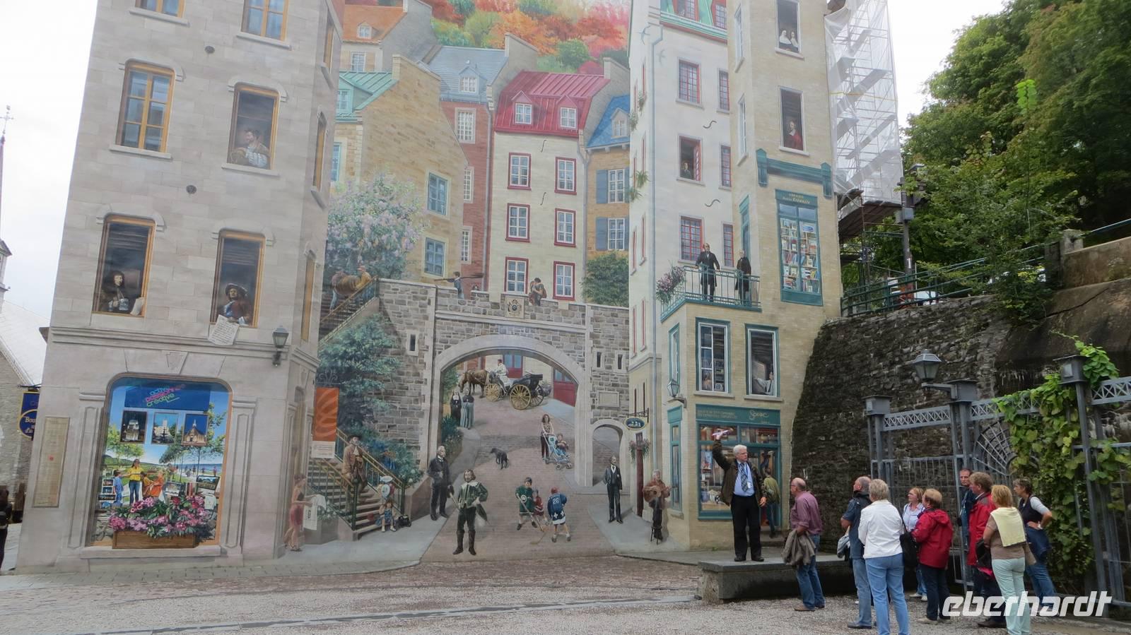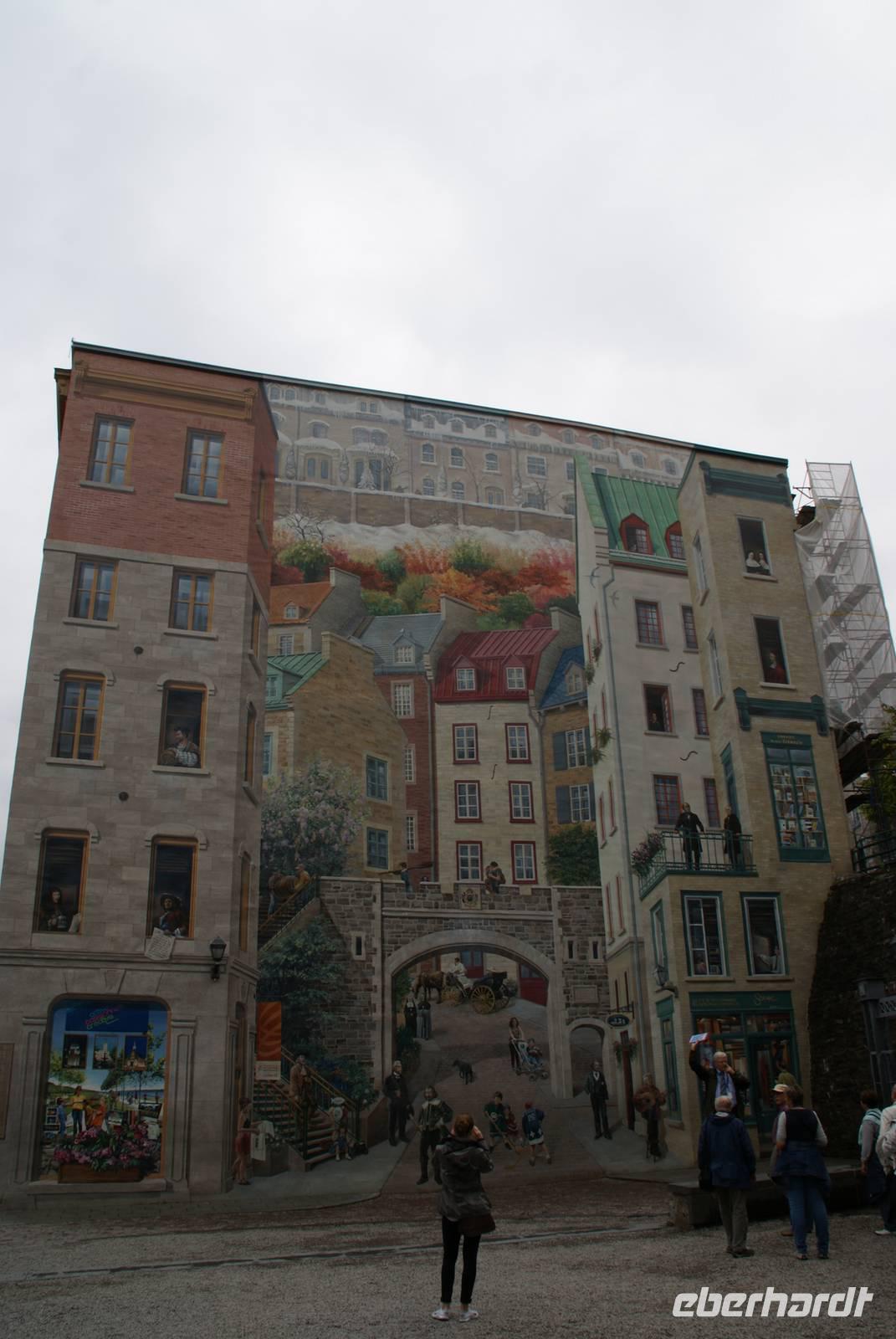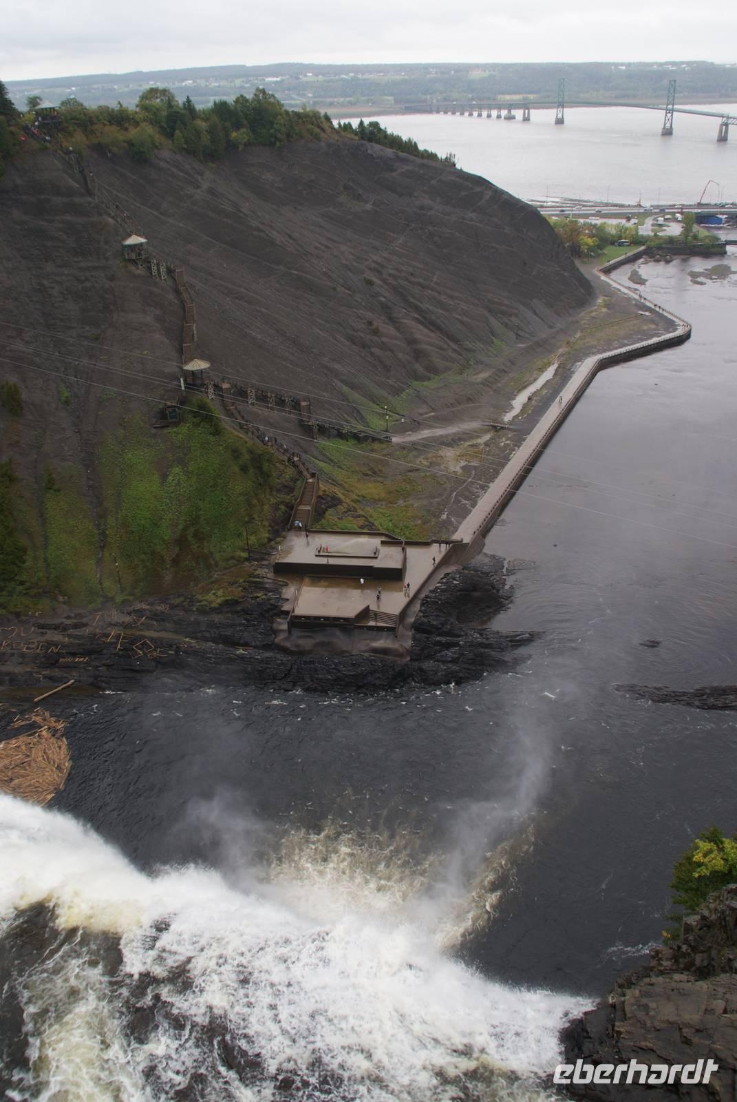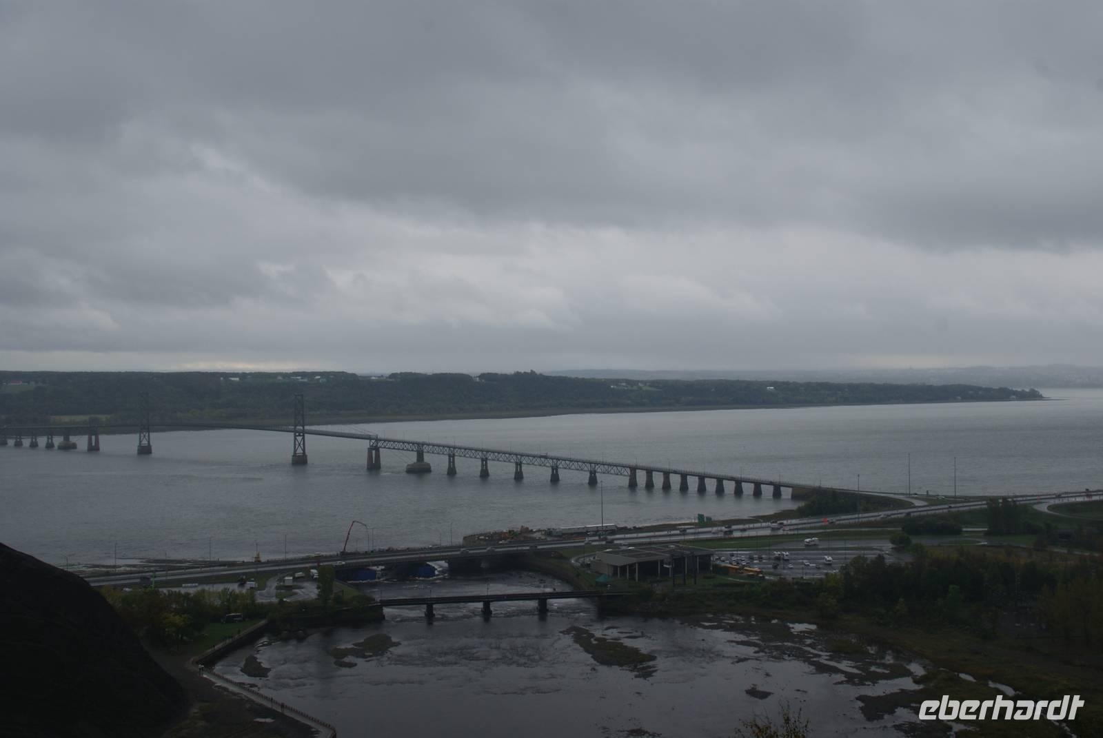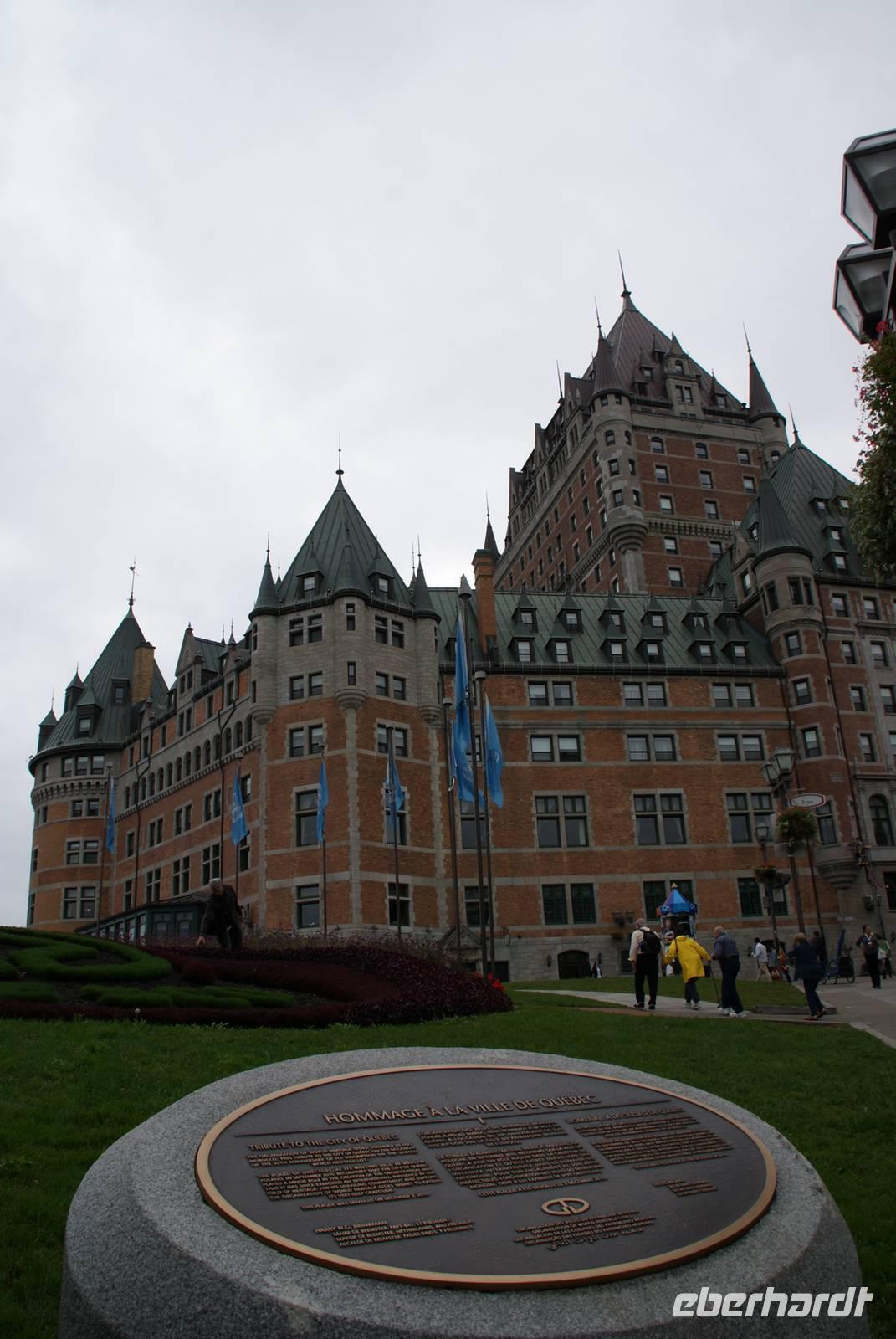 Nachdem wir zwei Tage auf See unterwegs waren, hieß es heute (endlich) wieder Landgang. Es erwartete uns die wohl französischste Stadt außerhalb Frankreichs - Québec, wo etwa eine halbe Million Menschen leben, die zu 95 Prozent französisch als Ihre Muttersprache betrachten. An diesem Tag waren wir alle gemeinsam auf Eberhardt-Landausflug unterwegs. Unser Reiseleiter Paul erwartete uns bereits pünktlich 8.30 Uhr an der Pier und so machten wir uns auf den Weg in Richtung Stadtrundfahrt. Leider spielte heute das Wetter nicht so mit. Es war bedeckt und regnerisch bei schwülwarmen 18 Grad Celsius. Davon ließen wir uns aber nicht abschrecken. Zunächst hielten wir am Parlamentsgebäude, eh wir die Stadtrundfahrt in Richtung der ca. 13 km außerhalb befindlichen Montmorency Wasserfälle fortsetzten. Hier schauten wir uns die 83m hohen Wasserfälle aus verschiedenen Blickrichtungen an und ließen uns durchaus von den Wassermassen beeindrucken. Zurück in Québec führte uns Paul zur Terrasse vor dem Schloss Frontenac, einem der Wahrzeichen Québecs. Nach gut vier Stunden fuhren wir zurück zum Hafen, wo alle Gäste, die gern wollten, mit Paul noch durch die Unterstadt spazierten. Auch wenn das Wetter nicht besonders war - die Stadt hat eindeutig Charme!