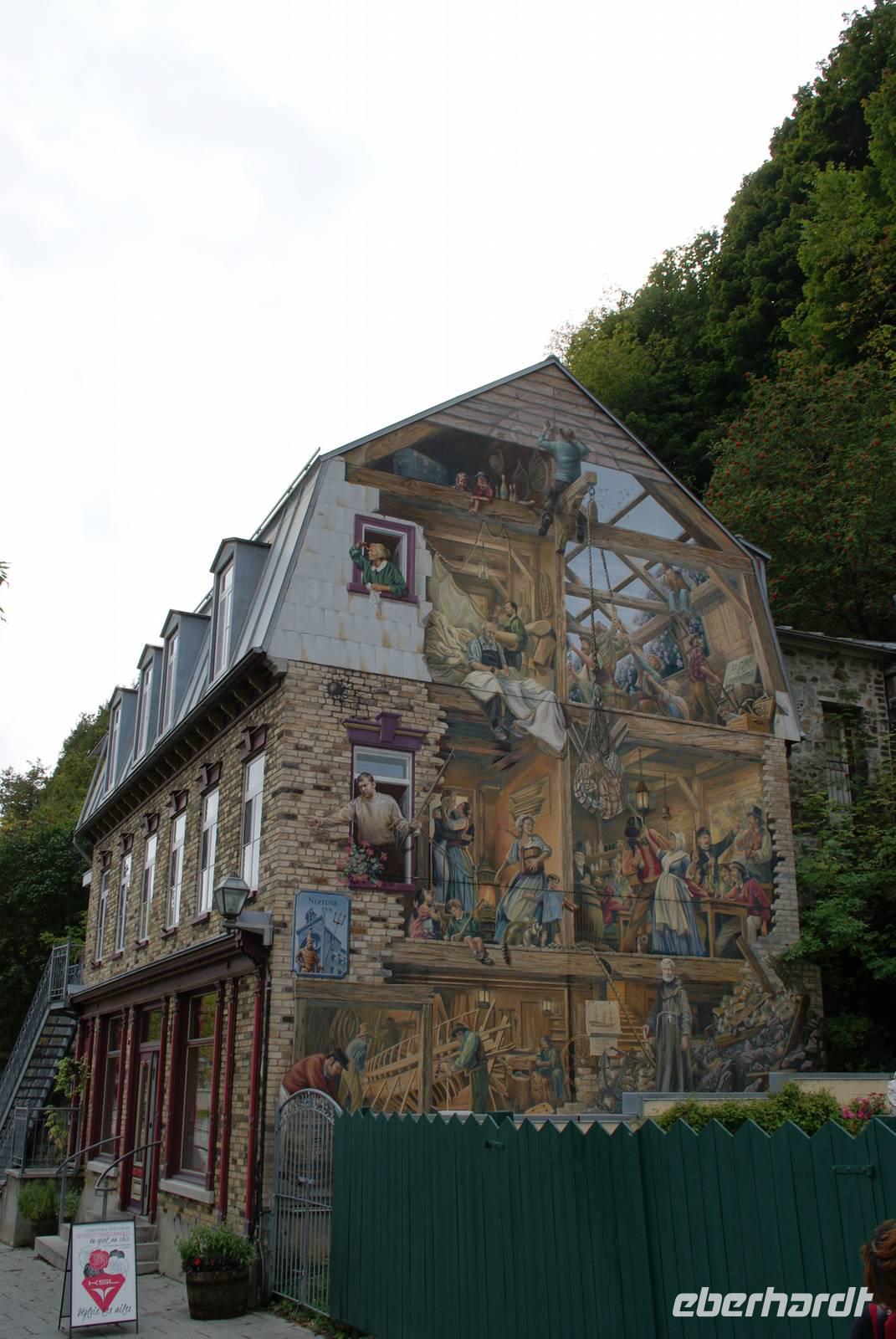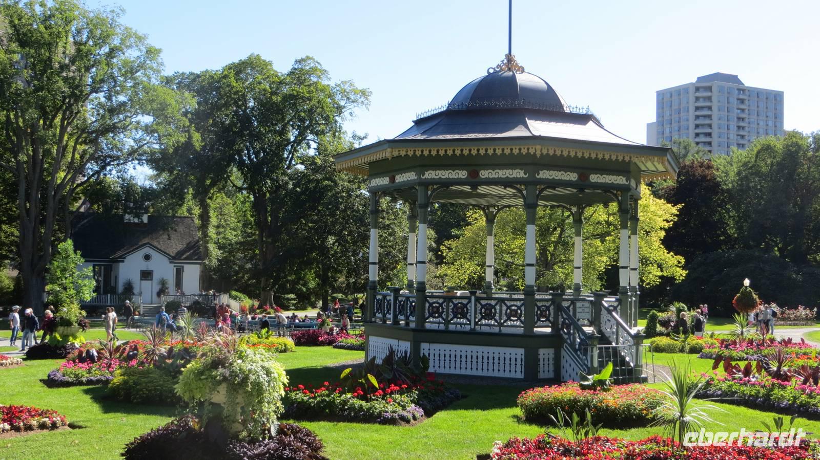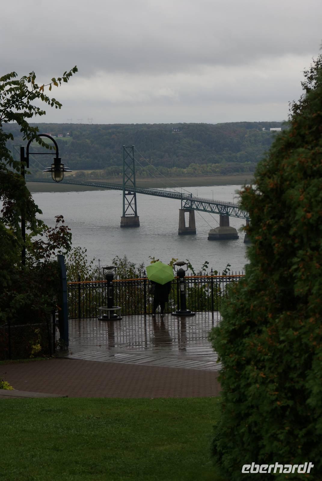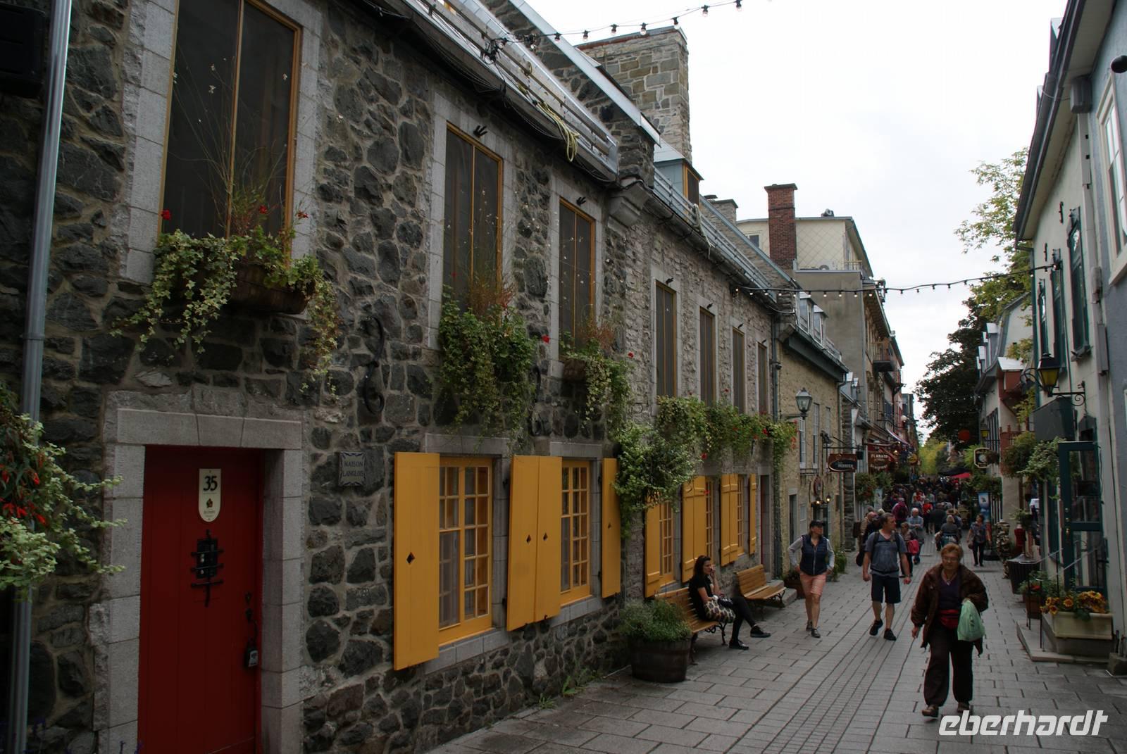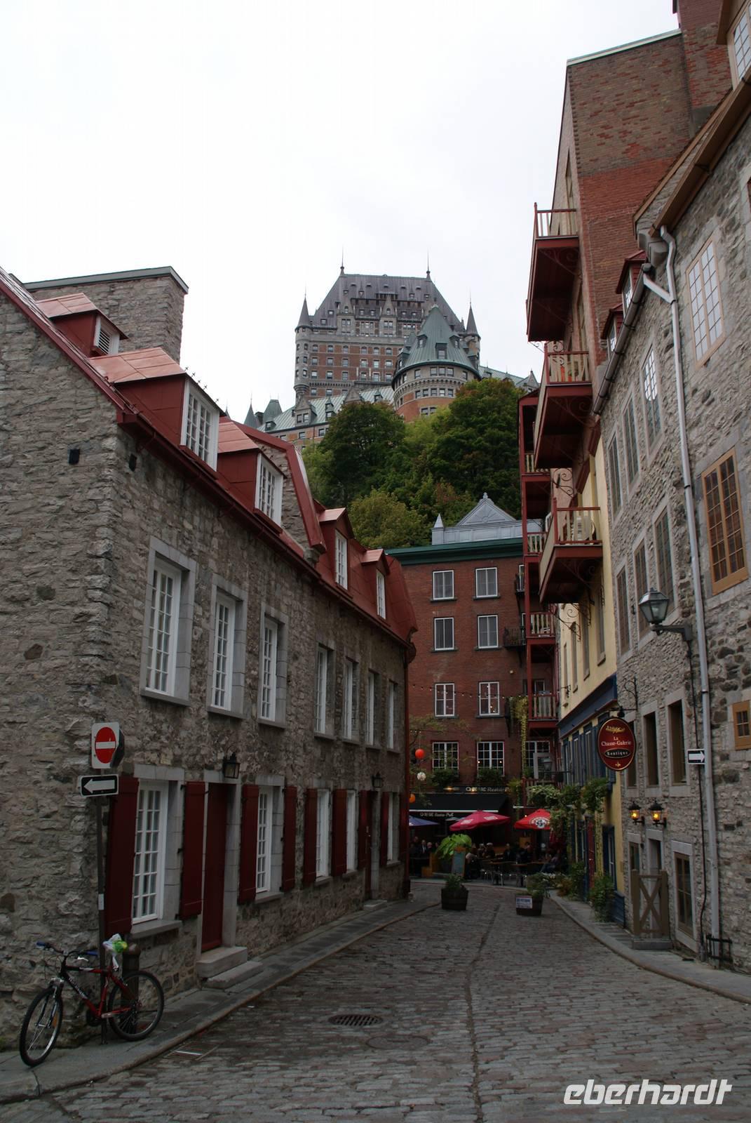 Nachdem wir zwei Tage auf See unterwegs waren, hieß es heute (endlich) wieder Landgang. Es erwartete uns die wohl französischste Stadt außerhalb Frankreichs - Québec, wo etwa eine halbe Million Menschen leben, die zu 95 Prozent französisch als Ihre Muttersprache betrachten. An diesem Tag waren wir alle gemeinsam auf Eberhardt-Landausflug unterwegs. Unser Reiseleiter Paul erwartete uns bereits pünktlich 8.30 Uhr an der Pier und so machten wir uns auf den Weg in Richtung Stadtrundfahrt. Leider spielte heute das Wetter nicht so mit. Es war bedeckt und regnerisch bei schwülwarmen 18 Grad Celsius. Davon ließen wir uns aber nicht abschrecken. Zunächst hielten wir am Parlamentsgebäude, eh wir die Stadtrundfahrt in Richtung der ca. 13 km außerhalb befindlichen Montmorency Wasserfälle fortsetzten. Hier schauten wir uns die 83m hohen Wasserfälle aus verschiedenen Blickrichtungen an und ließen uns durchaus von den Wassermassen beeindrucken. Zurück in Québec führte uns Paul zur Terrasse vor dem Schloss Frontenac, einem der Wahrzeichen Québecs. Nach gut vier Stunden fuhren wir zurück zum Hafen, wo alle Gäste, die gern wollten, mit Paul noch durch die Unterstadt spazierten. Auch wenn das Wetter nicht besonders war - die Stadt hat eindeutig Charme!