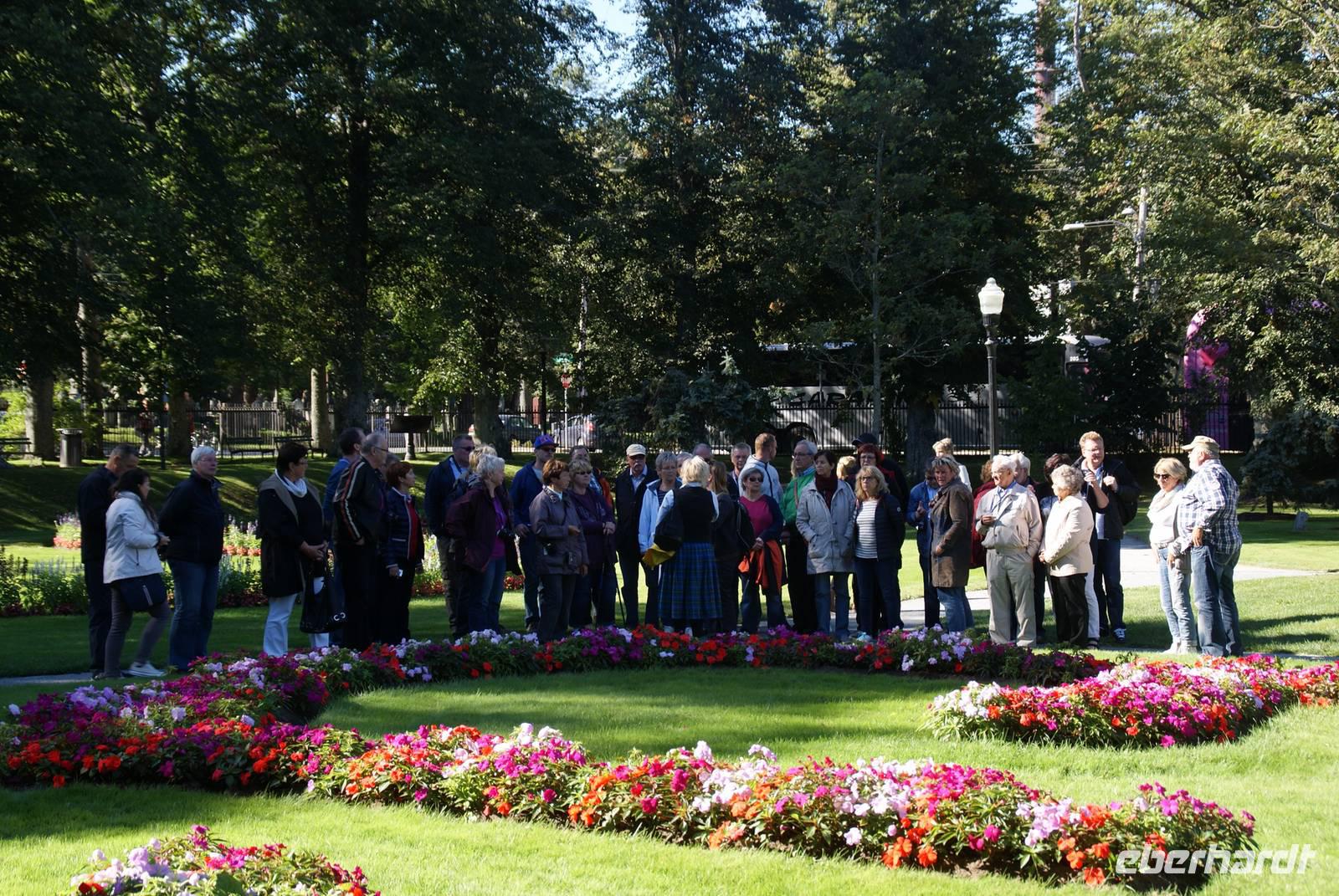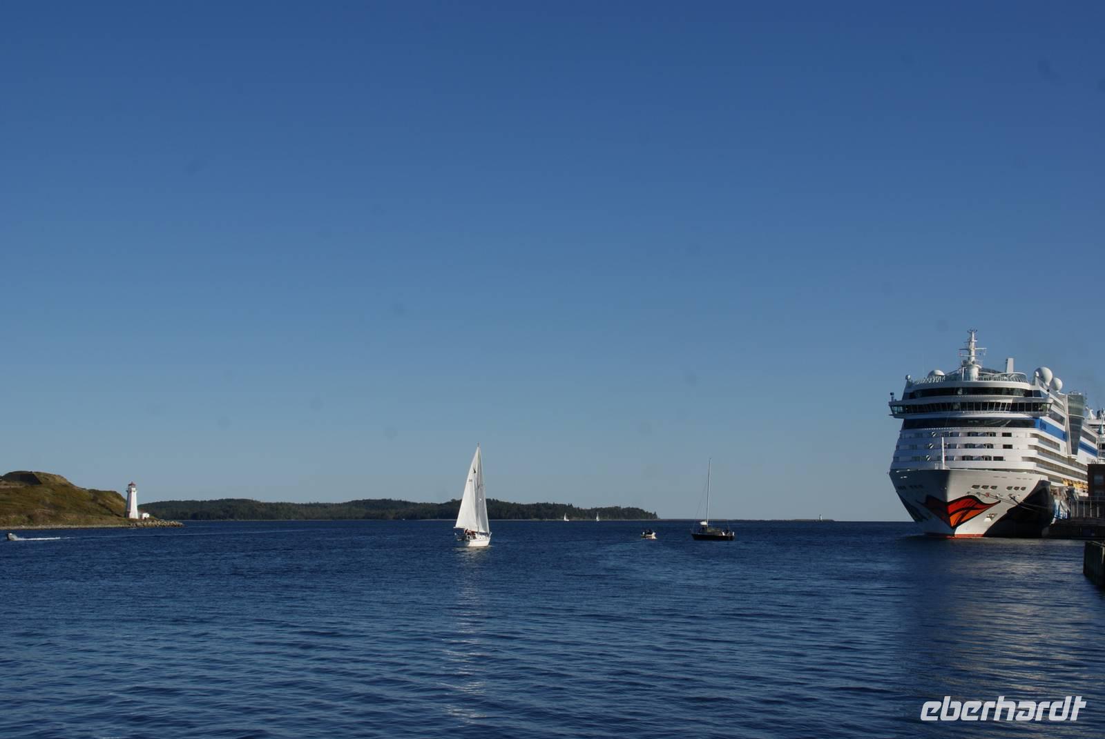Willkommen in Kanada! Die Stadt Halifax begrüßte uns an diesem Tag mit strahlend blauem Himmel und ist mit seinen ca. 400.000 Einwohnern wieder eine Großstadt, welche sich sehr zu besuchen empfiehlt. Heute konnten es alle wieder etwas ruhiger angehen lassen, denn wir legten erst am Mittag in der kanadischen Hafenstadt an. An diesem Tag sollten zwei Drittel der Gruppe mit mir (Maria) zu den Höhepunkten von Halifax auf Ganztagesausflug unterwegs sein. Wir Gäste waren auch alle pünktlich. Nur die Busse von AIDA steckten im Stau und so konnten wir erst mit gut zwei Stunden Verspätung starten. Dennoch wurde es dann noch ein schöner Ausflug, denn das Wetter spielte wunderbar mit und wir hatten mal wieder strahlend blauen Himmel. Zunächst machten wir eine kleine Stadtrundfahrt zum Citadell Hill, bevor wir durch die im viktorianischen Stil erbauten Public Gardens spazierten. Hier trafen wir auch auf die Gruppe von Joscha, die eine Stadtrundfahrt im historischen Doppeldeckerbus gebucht hatten. Für uns ging es dann weiter in das Fischerdorf Peggy's Cove, wo es fast Pflicht ist, eine Postkarte zu versenden. Als Abschluss der Tour besuchten wir noch den Fairview Lawn Friedhof in Halifax, wo 121 Opfer der Tragödie rund um die Titanic begraben sind. Kurz vor Ablegen des Schiffes waren wir dann alle wohlbehalten zurück an Bord und hatten uns das Abendessen redlich verdient!