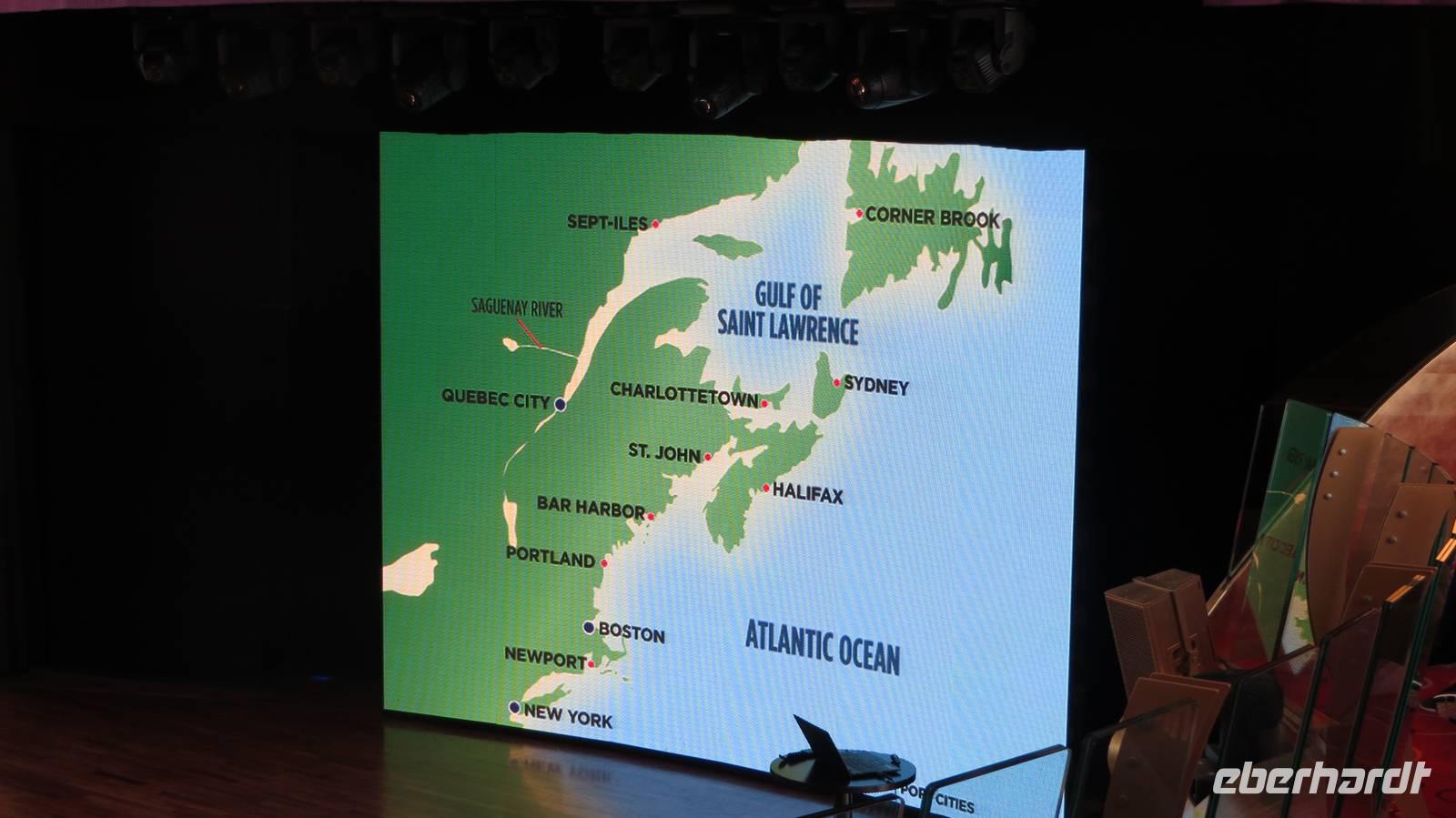 Nachdem es am Vortag doch etwas schaukeliger war, hatten wir inzwischen ruhigere Gewässer erreicht und sollten heute einen weiteren Tag zur Erholung auf See erleben können. An Bord wurde wieder viel Unterhaltungsprogramm geboten - u.a. zwei Vorträge des Lektors zu Québec und Montreal. Zwischendurch gab es selbstverständlich - wie jeden Tag - gutes Essen und das rund um die Uhr! Am Nachmittag konnten wir dann mit den Gästen, die gern die Nase etwas an die frische Luft halten wollten, doch noch unsere Runde Eberhardt-Shuffleboard - Männer gegen Frauen - spielen. Wobei die Männer mit der letzten Runde die entscheidenden Punkte erzielen konnten und knapp gegen die Frauen gewannen. An dieser Stelle sei ein kurzer Kommentar erlaubt: diese Schiffssportart sieht wesentlich leichter aus, als sie sich tatsächlich spielen lässt! Wir ziehen den Hut und haben Respekt vor allen Shuffleboard-Könnern!