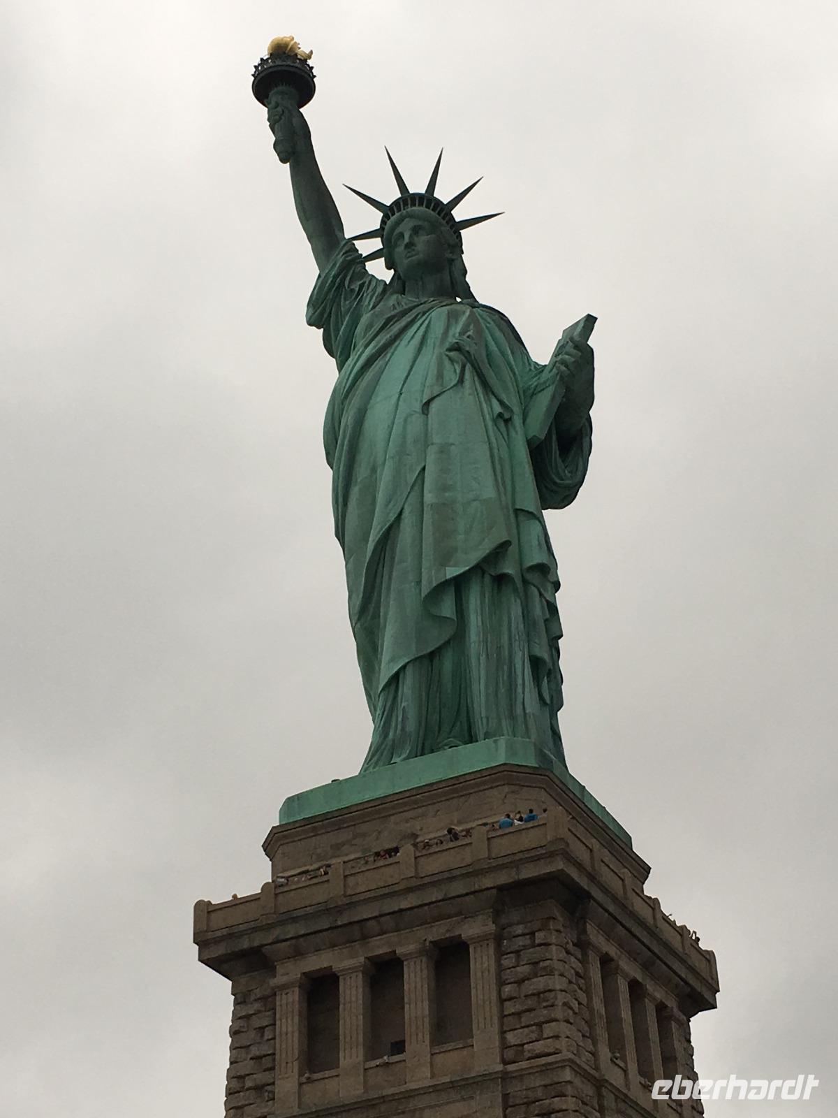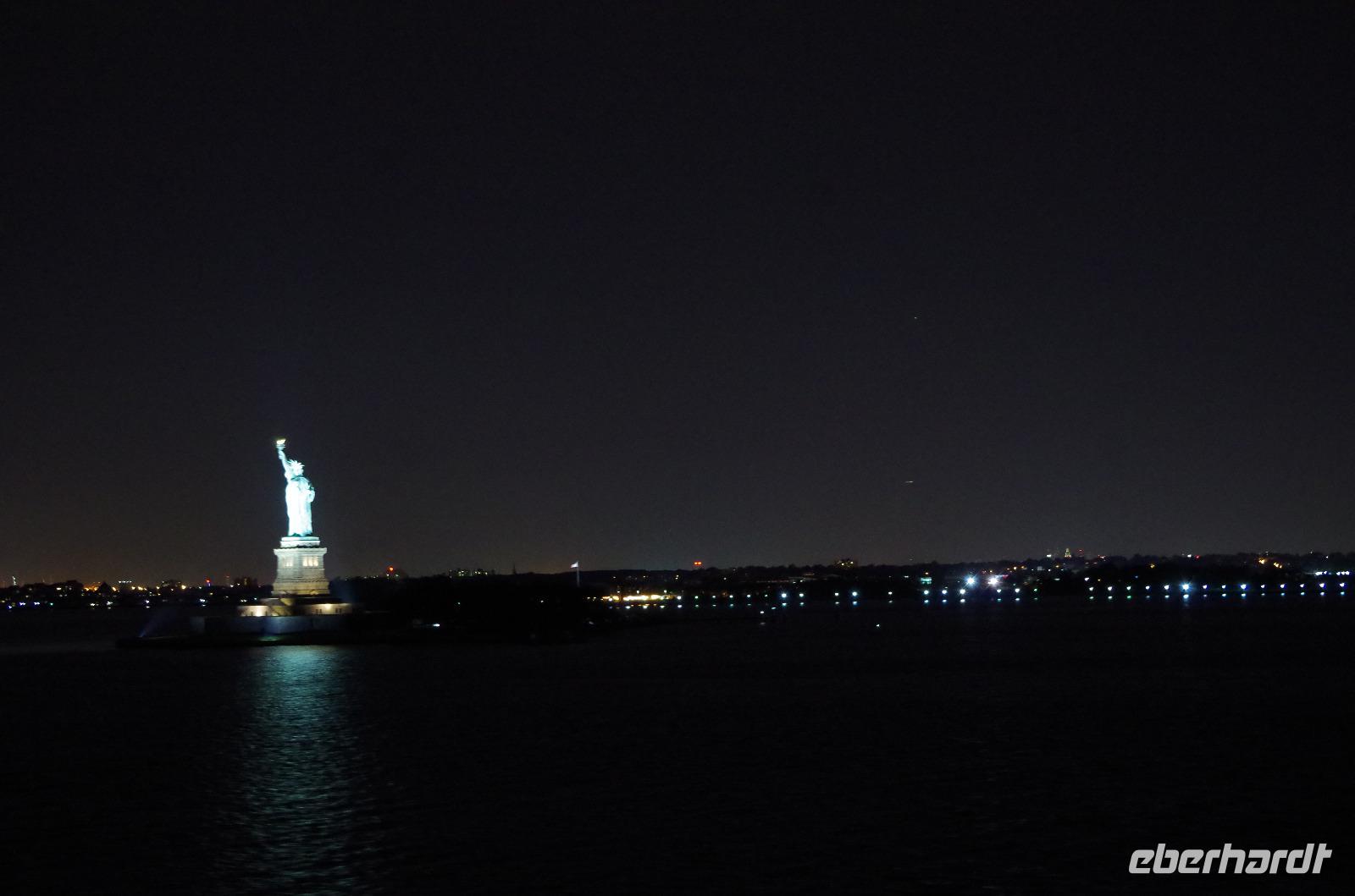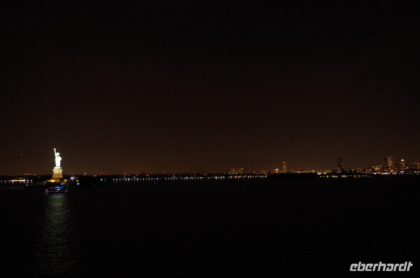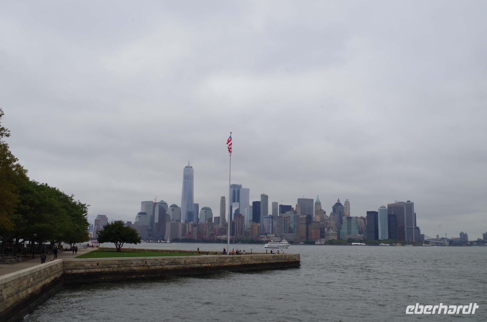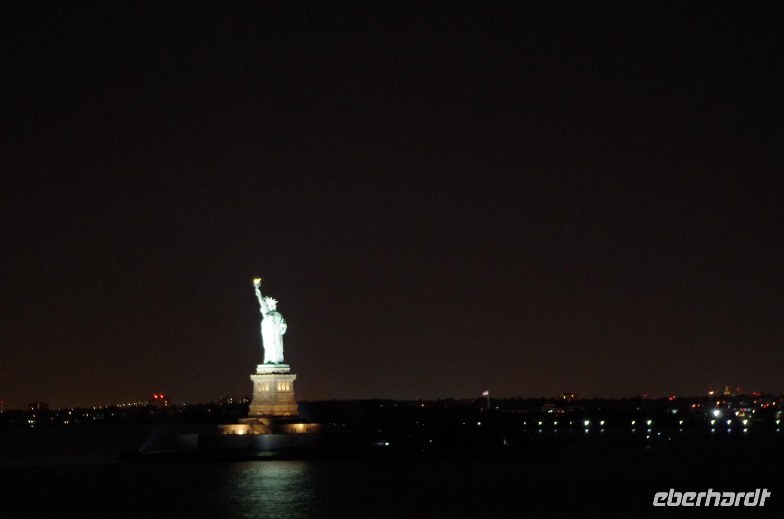 Wir werden zwar nicht mit strahlendem Sonnenschein geweckt, aber was nicht ist, kann ja noch werden :-) Wer möchte, kann um 06.30 Uhr im Frühstücksraum neben der Rezeption frühstücken gehen. Das Frühstück in den USA ist schon eine ganz andere Geschichte als bei uns in Deutschland. Während wir es gewohnt sind, von Porzellan-Geschirr und mit Besteck aus Stahl zu essen, ist dies unter Umständen in vielen amerikanischen Hotels weniger gewöhnlich. Zum Frühstück stehen uns zwar ausreichend Teller und Besteck zur Verfügung, aber die Teller sind aus Pappe und das Besteck aus Plastik. Na gut, dann frühstücken wir heute eben amerikanisch! Ab morgen auf der AIDAdiva erhalten wir dann "richtiges" Besteck und ordentliche Teller. Wir treffen uns mit den Koffern um 09.00 Uhr in der Hotellobby. Die vollständige Gruppe lernt sich endlich kennen. Nach einem problemlosen Check-Out lassen wir unser Gepäck im Bus verladen. Erst am späten Nachmittag fahren wir zum "Manhatten Cruise Ship Terminal, Pier 90, 50th Street", wo die AIDAdiva bereits auf uns wartet. Wir werden abermals von unserer örtlichen Reiseleiterin mit Wasser versorgt, so kann die interessante Stadtrundfahrt beginnen. Aufgrund der vom 19. bis 25. September 2017 stattfindenden 72. Sitzung der UN-Generalversammlung mit Überschrift "Focusing on People: Striving for Peace and a Decent Life for All on a Sustainable Planet" sowie dem Aufenthalt von Präsident Donald Trump in New York City sind einige Straßen rund um die Central Station, Trump Tower und dem Rockefeller Center gesperrt. Jedoch haben wir eine großartige Reiseleiterin, welche sich bestens in New York auskennt und den Busfahrer in die nahegelegensten Straßen führt. Wir fahren unter anderem am Madison Square Garden und Times Square vorbei, durch Greenvich Village, Soho und Little Italy zum Financial District und dem Battery Park City. Während der Fahrt erhalten wir viele interessante Informationen von unserer Reiseleiterin. Natürlich ist das Leben in New York nicht gerade preiswert, obwohl San Francisco die teuerste Amerikas und Boston ebenfalls preisintensiver als New York ist. Wir erfahren, dass der Mietpreis für ein Studio mit einem Raum, Küche und Bad in Manhattan ab 2.500 US-Dollar pro Monat aufwärts liegt. Eine Wohnung mit einem Schlafzimmer kostet zwischen 3.000 bis 4.000 US-Dollar im Monat, eine Zweiraumwohnung zwischen 4.000 und 5.000. Beispielsweise sind in Brooklyn und Queens die Mietpreise für eine Zweiraumwohnung zwar preiswerter mit Preisen ab 2.000 US-Dollar pro Monat je nach Distanz zum Zentrum, aber dennoch empfinden wir die Mietpreise als sehr hoch. New York ist aufgrund der Finanzindustrie mit der Wall Street, den Medien, den Hauptfernsehkanälen, einer Vielzahl an Verlagshäusern, den Werbeagenturen und den Theatern eine sehr bedeutende Stadt in Amerika. Bis 1910 ist NYC die Hauptstadt für Film und Fernsehen gewesen, danach wurde Hollywood gegründet. Ein weiterer Grund liegt womöglich auch im viel schönerem Wetter mit wenig Regen und keinem Schnee in Kalifornien. Anschließend besuchen wir das "National September 11 Memorial and Museum", besser bekannt als "9/11 Memorial". Zum Gedenken an die rund 3.000 Todesopfer der Terroranschläge am 11. September 2001 wurde dieses Mahnmal errichtet, auch zur Erinnerung an die Opfer des Bombenanschlags auf das World Trade Center 1993. Wir befinden uns im Süden von Manhattan am "Ground Zero". Das Mahnmal wurde an der Stelle erbaut, wo das ehemalige World Trade Center gestanden hatte. Wir sehen auch den am 12. September 2011 errichteten Gedenkpavillon und das am 15. Mai 2014 vom 44. Präsident der Vereinigten Staaten, von Präsident Barack Obama, eingeweihte Museum. Für eine Besichtigung müssen sich die Gäste vorher anmelden und nur zu einer den Gästen mitgeteilten bestimmten Zeit darf das Museum besucht werden. Es ist eine respektvolle und nachdenkliche Atmosphäre. Die Gäste erinnern sich wohl noch sehr genau daran, was sie am Tag des Anschlags am 11. September 2001 gemacht haben. Gegen 13.00 Uhr fahren wir von der Fährstation am Battery Park zuerst zur etwa 2,5 Kilometer von der Südspitze Manhattans entfernten Liberty Island und fotografieren ein weiteres Wahrzeichen von New York, nämlich die "Statue of Liberty", die Freiheitsstatue. Liebevoll wird sie auch "Lady Liberty" genannt. Die aus einem Eisengerüst bestehende und mit einer Kupferschicht überzogene Statue mit vollständigem Namen "Liberty Enlightening the World" wurde am 28. Oktober 1886 im Hafen von New York eingeweiht. Eigentlich war die Schicht braunes Kupfer, welche aber durch Verwitterung und Rosten ihre heutige grüne Farbe erhalten hat. Die 46 Meter hohe Statue (ohne Sockel) selbst war ein Geschenk Frankreichs, wobei die USA für den Sockel verantwortlich gewesen sind. Die Amerikaner haben das ursprünglich zum 100. Jahrestag der amerikanischen Unabhängigkeit 1876 erhaltende Geschenk aufgrund stockend liefernden Spendensammlungen beider Seiten erst zehn Jahre später erhalten. Als Darstellung der römischen Göttin der Freiheit mit Namen "Libertas" wurde die Staute vom Franzosen Frédéric-Auguste Bartholdi entworfen, welcher angeblich auch das Gesicht der "Lady Liberty" nach seiner eigenen Mutter bildete. Die Nase ist 1,37 Meter lang. Wir fotografieren die berühmte Lady aus verschiedenen Blickwinkeln, wobei wir uns ihr Aussehen näher betrachten. Sie ist in ein Gewand gekleidet, mit einer in den Himmel ragenden Fackel in der rechten und einer Tafel mit dem amerikanischen Unabhängigkeitsdatum in der linken Hand. Die auf den Kopf tragende Krone besteht aus sieben Zacken, wobei eine Zacke einem Kontinent entspricht. Zudem ist ihr rechter Fuß angehoben, das heißt, sie steht nicht, sondern sie "geht". Die um die Füße herum zerbrochenen Ketten stellen ein Symbol für die Befreiung dar. Für einen entspannten Spaziergang rund um die Insel haben wir ausreichend Zeit. Mit der Fähre fahren wir später nur wenige Minuten weit