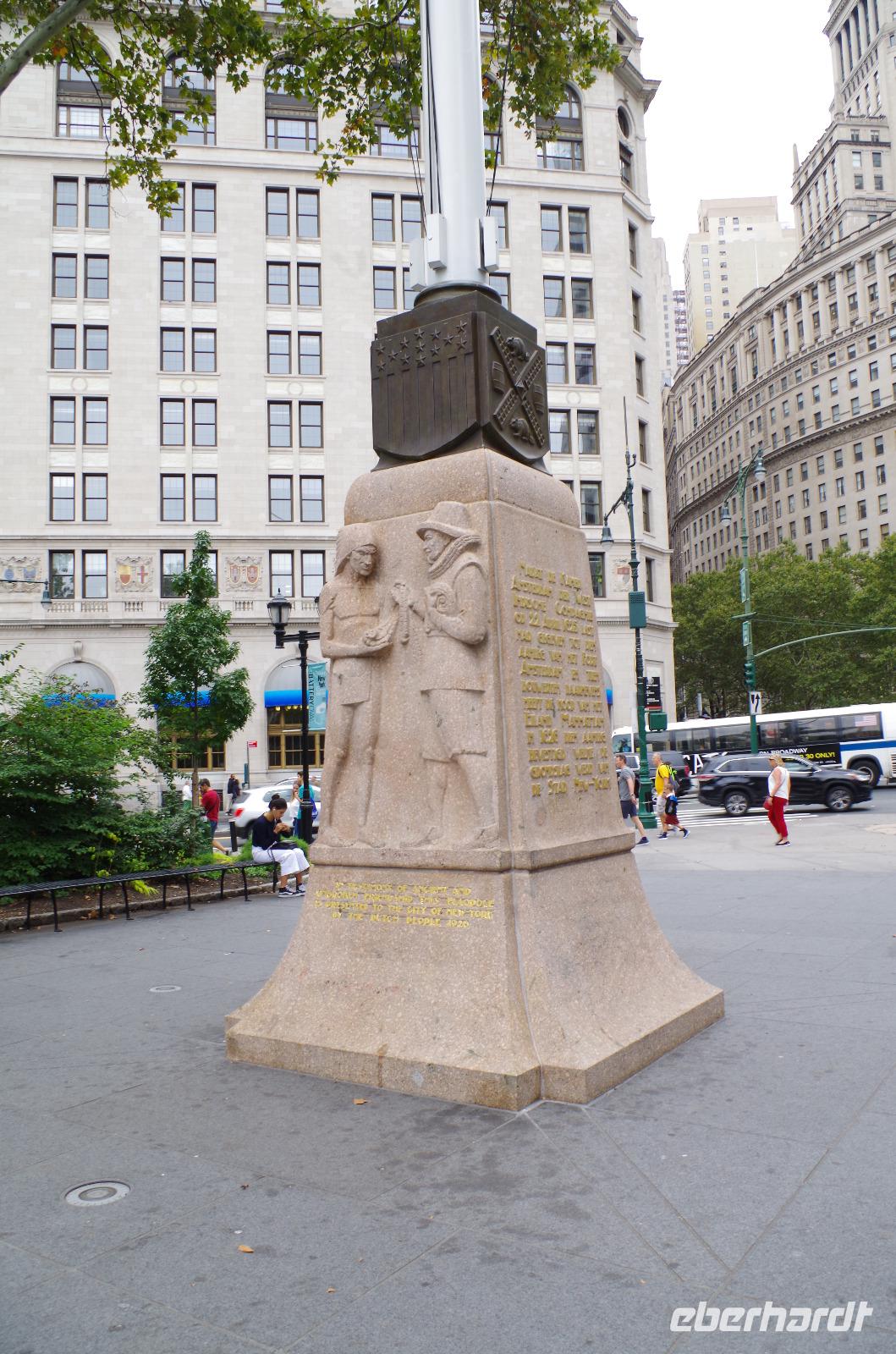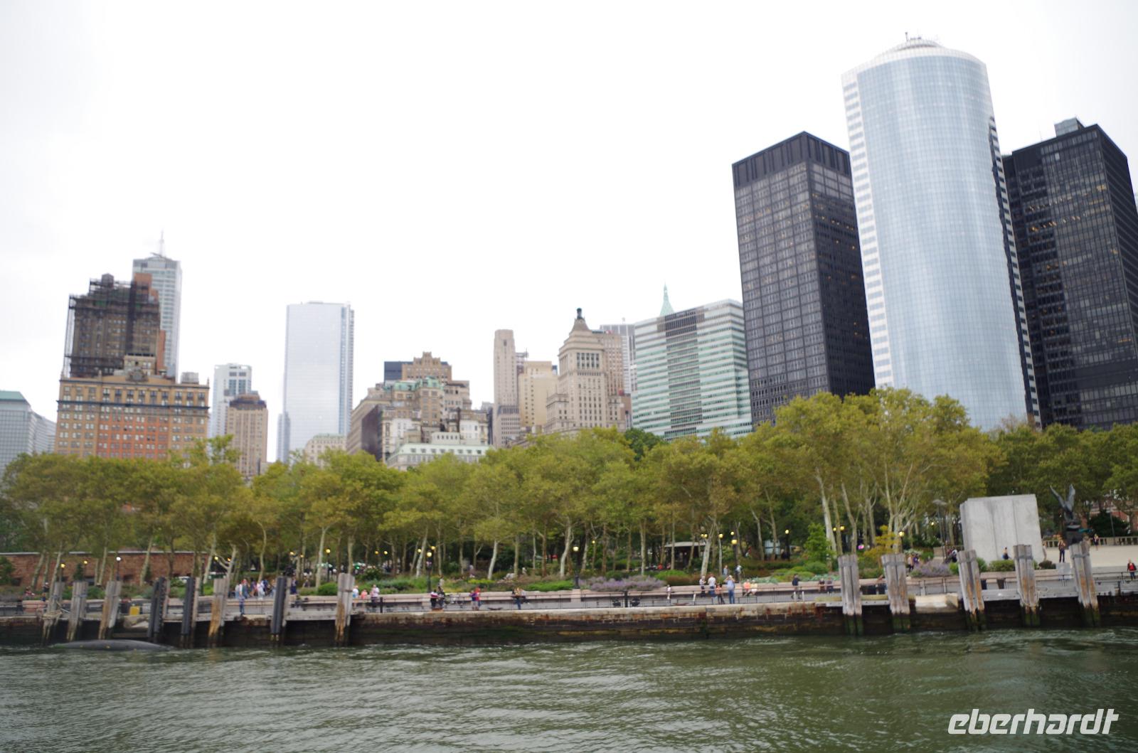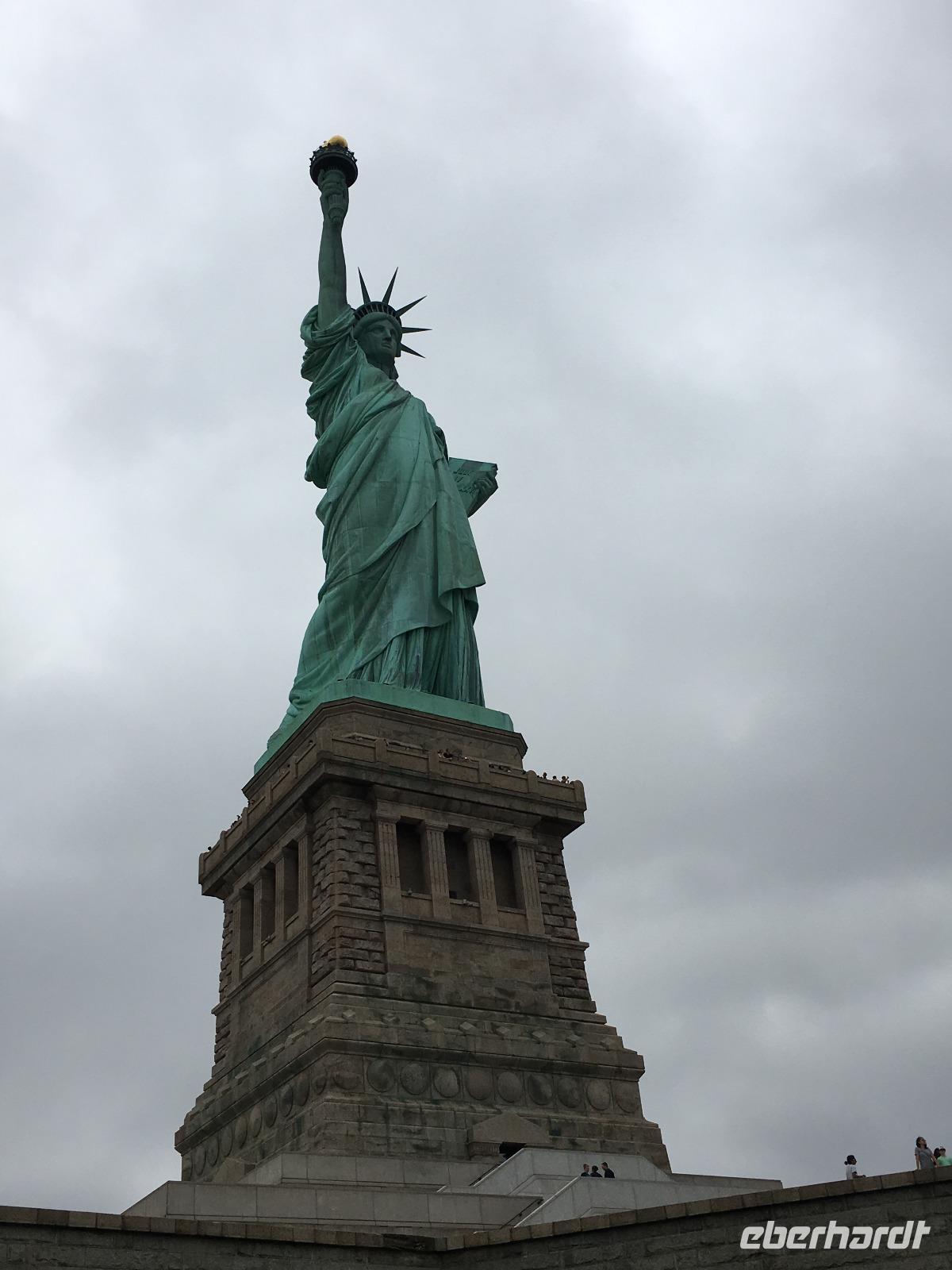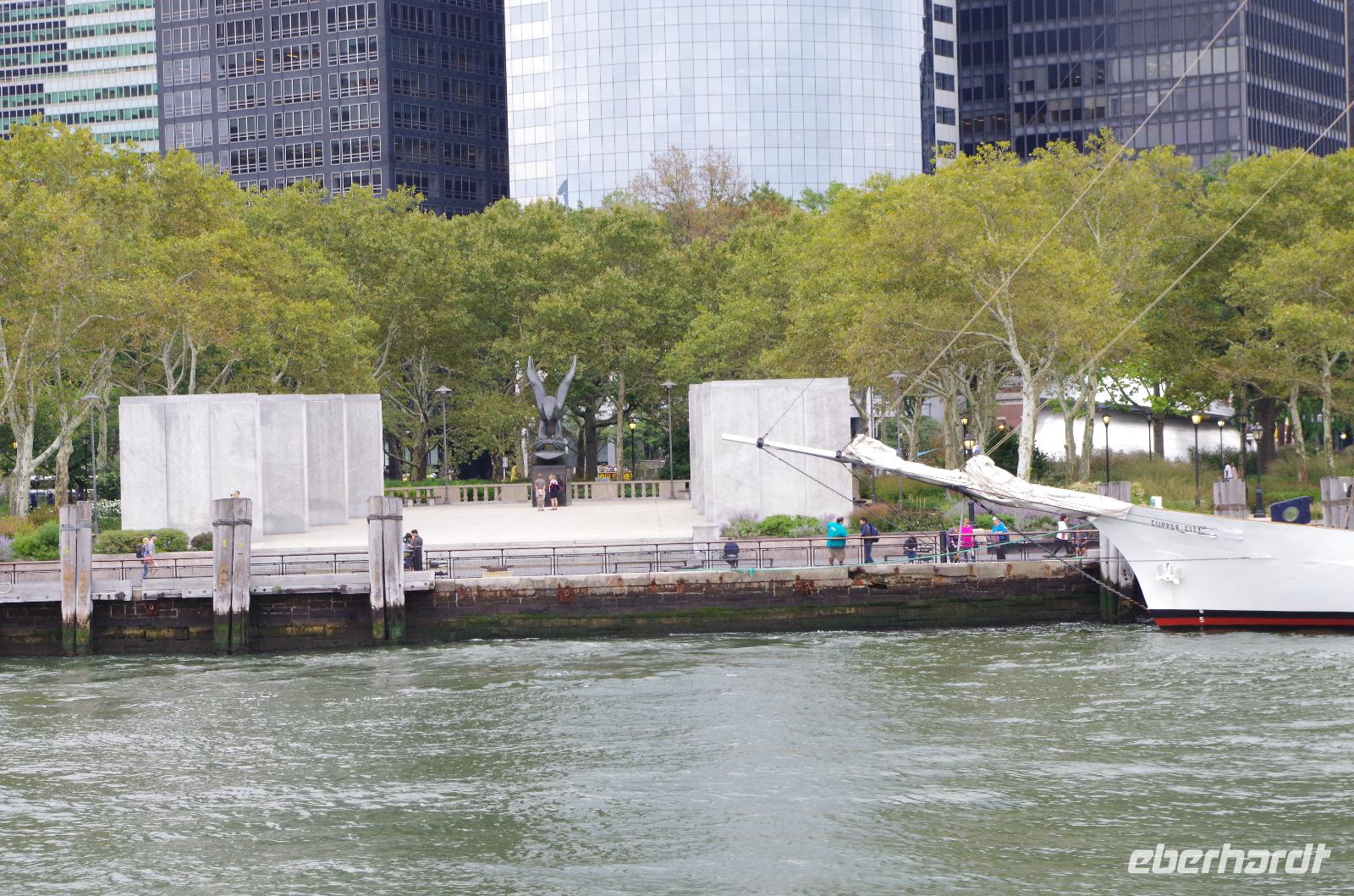 Wir werden zwar nicht mit strahlendem Sonnenschein geweckt, aber was nicht ist, kann ja noch werden :-) Wer möchte, kann um 06.30 Uhr im Frühstücksraum neben der Rezeption frühstücken gehen. Das Frühstück in den USA ist schon eine ganz andere Geschichte als bei uns in Deutschland. Während wir es gewohnt sind, von Porzellan-Geschirr und mit Besteck aus Stahl zu essen, ist dies unter Umständen in vielen amerikanischen Hotels weniger gewöhnlich. Zum Frühstück stehen uns zwar ausreichend Teller und Besteck zur Verfügung, aber die Teller sind aus Pappe und das Besteck aus Plastik. Na gut, dann frühstücken wir heute eben amerikanisch! Ab morgen auf der AIDAdiva erhalten wir dann "richtiges" Besteck und ordentliche Teller. Wir treffen uns mit den Koffern um 09.00 Uhr in der Hotellobby. Die vollständige Gruppe lernt sich endlich kennen. Nach einem problemlosen Check-Out lassen wir unser Gepäck im Bus verladen. Erst am späten Nachmittag fahren wir zum "Manhatten Cruise Ship Terminal, Pier 90, 50th Street", wo die AIDAdiva bereits auf uns wartet. Wir werden abermals von unserer örtlichen Reiseleiterin mit Wasser versorgt, so kann die interessante Stadtrundfahrt beginnen. Aufgrund der vom 19. bis 25. September 2017 stattfindenden 72. Sitzung der UN-Generalversammlung mit Überschrift "Focusing on People: Striving for Peace and a Decent Life for All on a Sustainable Planet" sowie dem Aufenthalt von Präsident Donald Trump in New York City sind einige Straßen rund um die Central Station, Trump Tower und dem Rockefeller Center gesperrt. Jedoch haben wir eine großartige Reiseleiterin, welche sich bestens in New York auskennt und den Busfahrer in die nahegelegensten Straßen führt. Wir fahren unter anderem am Madison Square Garden und Times Square vorbei, durch Greenvich Village, Soho und Little Italy zum Financial District und dem Battery Park City. Während der Fahrt erhalten wir viele interessante Informationen von unserer Reiseleiterin. Natürlich ist das Leben in New York nicht gerade preiswert, obwohl San Francisco die teuerste Amerikas und Boston ebenfalls preisintensiver als New York ist. Wir erfahren, dass der Mietpreis für ein Studio mit einem Raum, Küche und Bad in Manhattan ab 2.500 US-Dollar pro Monat aufwärts liegt. Eine Wohnung mit einem Schlafzimmer kostet zwischen 3.000 bis 4.000 US-Dollar im Monat, eine Zweiraumwohnung zwischen 4.000 und 5.000. Beispielsweise sind in Brooklyn und Queens die Mietpreise für eine Zweiraumwohnung zwar preiswerter mit Preisen ab 2.000 US-Dollar pro Monat je nach Distanz zum Zentrum, aber dennoch empfinden wir die Mietpreise als sehr hoch. New York ist aufgrund der Finanzindustrie mit der Wall Street, den Medien, den Hauptfernsehkanälen, einer Vielzahl an Verlagshäusern, den Werbeagenturen und den Theatern eine sehr bedeutende Stadt in Amerika. Bis 1910 ist NYC die Hauptstadt für Film und Fernsehen gewesen, danach wurde Hollywood gegründet. Ein weiterer Grund liegt womöglich auch im viel schönerem Wetter mit wenig Regen und keinem Schnee in Kalifornien. Anschließend besuchen wir das "National September 11 Memorial and Museum", besser bekannt als "9/11 Memorial". Zum Gedenken an die rund 3.000 Todesopfer der Terroranschläge am 11. September 2001 wurde dieses Mahnmal errichtet, auch zur Erinnerung an die Opfer des Bombenanschlags auf das World Trade Center 1993. Wir befinden uns im Süden von Manhattan am "Ground Zero". Das Mahnmal wurde an der Stelle erbaut, wo das ehemalige World Trade Center gestanden hatte. Wir sehen auch den am 12. September 2011 errichteten Gedenkpavillon und das am 15. Mai 2014 vom 44. Präsident der Vereinigten Staaten, von Präsident Barack Obama, eingeweihte Museum. Für eine Besichtigung müssen sich die Gäste vorher anmelden und nur zu einer den Gästen mitgeteilten bestimmten Zeit darf das Museum besucht werden. Es ist eine respektvolle und nachdenkliche Atmosphäre. Die Gäste erinnern sich wohl noch sehr genau daran, was sie am Tag des Anschlags am 11. September 2001 gemacht haben. Gegen 13.00 Uhr fahren wir von der Fährstation am Battery Park zuerst zur etwa 2,5 Kilometer von der Südspitze Manhattans entfernten Liberty Island und fotografieren ein weiteres Wahrzeichen von New York, nämlich die "Statue of Liberty", die Freiheitsstatue. Liebevoll wird sie auch "Lady Liberty" genannt. Die aus einem Eisengerüst bestehende und mit einer Kupferschicht überzogene Statue mit vollständigem Namen "Liberty Enlightening the World" wurde am 28. Oktober 1886 im Hafen von New York eingeweiht. Eigentlich war die Schicht braunes Kupfer, welche aber durch Verwitterung und Rosten ihre heutige grüne Farbe erhalten hat. Die 46 Meter hohe Statue (ohne Sockel) selbst war ein Geschenk Frankreichs, wobei die USA für den Sockel verantwortlich gewesen sind. Die Amerikaner haben das ursprünglich zum 100. Jahrestag der amerikanischen Unabhängigkeit 1876 erhaltende Geschenk aufgrund stockend liefernden Spendensammlungen beider Seiten erst zehn Jahre später erhalten. Als Darstellung der römischen Göttin der Freiheit mit Namen "Libertas" wurde die Staute vom Franzosen Frédéric-Auguste Bartholdi entworfen, welcher angeblich auch das Gesicht der "Lady Liberty" nach seiner eigenen Mutter bildete. Die Nase ist 1,37 Meter lang. Wir fotografieren die berühmte Lady aus verschiedenen Blickwinkeln, wobei wir uns ihr Aussehen näher betrachten. Sie ist in ein Gewand gekleidet, mit einer in den Himmel ragenden Fackel in der rechten und einer Tafel mit dem amerikanischen Unabhängigkeitsdatum in der linken Hand. Die auf den Kopf tragende Krone besteht aus sieben Zacken, wobei eine Zacke einem Kontinent entspricht. Zudem ist ihr rechter Fuß angehoben, das heißt, sie steht nicht, sondern sie "geht". Die um die Füße herum zerbrochenen Ketten stellen ein Symbol für die Befreiung dar. Für einen entspannten Spaziergang rund um die Insel haben wir ausreichend Zeit. Mit der Fähre fahren wir später nur wenige Minuten weit