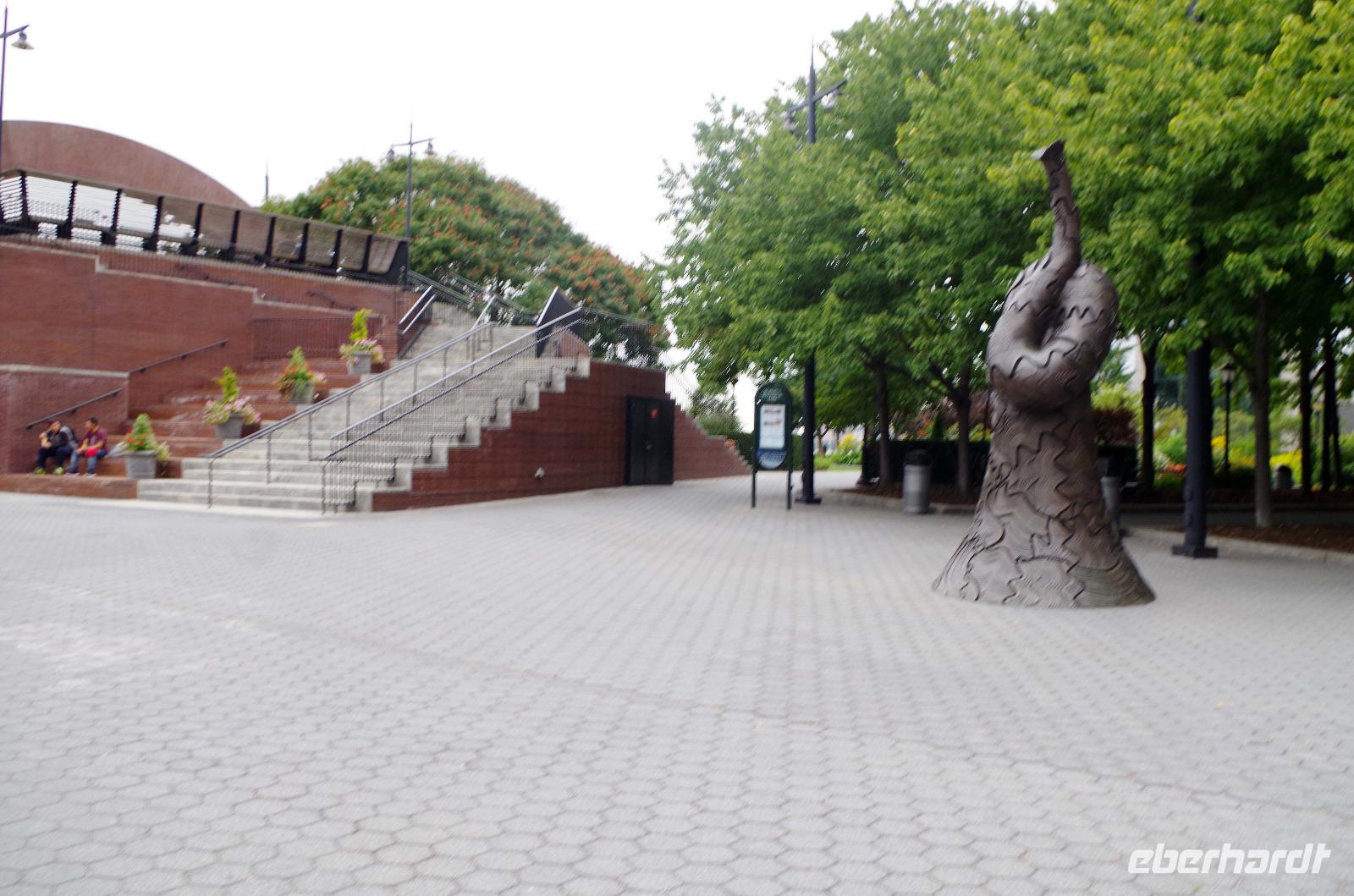 Am heutigen Tag werden wir unser Abenteuer New York am Abend mit dem Auslaufen der AIDAdiva aus dem Hafen abschließen. Hoffen wir nur, dass uns keine weiteren nicht geplanten Neuigkeiten erwarten! Ab 07.00 Uhr besteht die Möglichkeit, im "Weite Welt Restaurant" auf Deck 10 zu frühstücken. Die Wetteraussichten sehen auch nicht schlecht aus *freu* Es wird teilweise bewölktes Wetter bei bis zu 30 Grad Celsius erwartet. Wir treffen uns zur gewohnten Uhrzeit um 09.00 Uhr an der Rezeption, um gemeinsam weitere Linien des "Hop on, Hop off"-Busses BIG BUS NY zu fahren. Beim Einstieg erhalten wir abermals neue In-Ear Kopfhörer, um deutsche Informationen zu den einzelnen Sehenswürdigkeiten zu erhalten. An dieser Stelle sei zu erwähnen, dass die Kommentare bedauerlicherweise relativ wenig ins Deutsche übersetzt sind. Dies ist wirklich sehr schade, vor allem wenn der englischsprachige Guide an Bord teilweise viel ausführlichere Informationen zu den einzelnen Stationen wiedergibt. Wie am gestrigen Tag steigen wir am Standort "Circle Line Sightseeing Cruises in Hudson River Park - 42nd St & West Side Hwy" ein und fahren entlang der "Midtown Loop", welche wie bereits erwähnt eigentlich auch das Rockefeller Center und die Grand Central Station beinhaltet. Diese Sehenswürdigkeiten können die Gäste gern individuell besuchen, zu Fuß sind sie in wenigen Gehminuten erreichbar. Das sich über drei Straßenblocks 5th & 6th Ave sowie West 47th St & West 52nd St befindende Rockefeller Center ist ein aus 19 Hochhäusern bestehender Gebäudekomplex, wobei das bekannte Comcast Building, auch "30 Rock" genannt, 70 Stockwerke besitzt und mit 259,1 Metern das höchste Gebäude ist. Zum Rockefeller Center gehört beispielsweise auch die Radio City Music Hall. Die 6th Avenue wird auch als "Avenue of the Americas" bezeichnet, welche eine vom Norden befahrene Einbahnstraße ist und sie ehrt mit ihrem Namen die sich um Frieden zwischen den Staaten kümmernde Organisation Amerikanischer Staaten, kurz OAS. An dieser Stelle seien die fünf höchsten Gebäude New Yorks in Reihenfolge zu bringen: (1) One World Trade Center - 541,3 Meter, (2) 432 Park Avenue - 425,5 Meter, (3) Empire State Building - 381 Meter mit Antenne 443 Meter, (4) Bank of America Tower - 366 Meter und (5) Chrysler Building genauso wie New York Times Tower - 319 Meter. An der Ecke 42nd St und Park Ave befindet sich die Grand Central Station in Manhattan, wohl einer der berühmtesten amerikanischen Bahnhöfe, welcher auch in einer Vielzahl von Kinofilmen wie Armageddon oder Ghostbusters zu sehen ist. Besonders schön ist die Decke der Central Station mit Sternenhimmel und Bildern von Tierkreiszeichen. Heute fahren wir bis zum Empire State Building, wechseln die Linie und fahren ab der Station "Empire State Building / Korea Town - 5th Ave & W 32nd St" mit BIG BUS weiter entlang der "Downtown Loop". Bereits an der nächsten Haltestelle "Flatiron District - 5th Ave & W 23rd St" verlassen wir den Bus wieder, da wir keine guten Sitzplätze haben und auch die Luft nicht so angenehm ist. Unglücklicherweise ist dies nicht die beste Entscheidung gewesen :-( Wir müssen zwei Busse vorbeifahren lassen, da es keine freien Sitzplätze mehr gibt. Aber alle guten Dinge sind drei! Im dritten Bus rund 20 bis 30 Minuten später fahren wir bis zu "Statue of Liberty / Battery Park - State St & Pearl St". Bereits vor zwei Tagen haben wir uns gemeinsam mit dem 3,5 Tonnen schweren, rund 3,4 Meter hohen und 6 Meter langen "Charging Bull" fotografieren lassen, welcher auch "Bowling Green Bull" oder "Wall Street Bull" genannt wird. Diese von Arturo Di Modica geschaffene Bronzestatue stellt ein Sinnbild für die herausfordernde und kampfbereite Haltung an der Wall Street dar und ist somit dessen Erkennungsmerkmal. Weiterer Tagesprogrammpunkt ist die "Brooklyn Tour", an welcher wir dank des Zwei-Tages-Tickets teilnehmen können. Die nächste Fahrt startet um 12.00 Uhr, so dass wir noch ein wenig Zeit für einen individuellen Spaziergang im Park haben. Pünktlich zur Mittagszeit steigen wir an der Station "Statue of Liberty / Battery Park - State St & Pearl St" in den Bus ein. Diese Tour wird abermals von einem englischsprachigen Guide begleitet, welcher aber ausnahmsweise nicht gerade ein charmanter Reiseleiter ist. Die deutschen Kommentare funktionieren dank technischer Probleme nur bedingt. Die "Brooklyn Tour" dauert rund 1,5 Stunden ohne mögliche Ein- und Ausstiegspunkte. Gegründet wurde Brooklyn 1634 von niederländischen Immigranten. Im rund 183 Quadratkilometer großen Brooklyn leben mehr als 2,5 Millionen Menschen. Gegen 13.30 Uhr verlassen wir den Bus am Ausstieg "Statue of Liberty / Battery Park - State St & Pearl St". Wir wechseln die Straßenseite, steigen am Standort "One World Observatory - Fulton St & Church St" wieder in den Bus ein und fahren den "Downtown Loop" zurück zum Schiff. Die Rückfahrt hat sich aufgrund der UN-Generalsversammlung und diverser Absperrungen ebenfalls geändert. Dieses Mal ist dies nicht unbedingt ein Nachteil für uns, da wir auf der Rückfahrt direkt bei der AIDAdiva am Pier 90 aussteigen können. Für ein Mittagessen gegen 15.00 Uhr ist es zwar bereits zu spät, aber Kaffee und Kuchen im "Weite Welt Restaurant" sind auch nicht zu verachten und um 17.30 Uhr können wir bereits zum Abendessen gehen. Der Großteil der Gäste trifft sich an den bereits zur liebevollen Gewohnheit gewordenen Tischen und tauscht sich zu den Highlights des Tages bei einem tollen Abendessen aus. Da wir heute Abend endlich unsere Weiterreise Richtung Kanada antreten, müssen wir für die Einreise bis 18.00 Uhr noch eine kanadische Zollerklärung ausfüllen und an der Rezeption abgeben. Eine deutsche Ausfüllhilfe wird von AIDA beigefügt sowie steht die Reisebegleitung für Fragen jederzeit zur Verfügung. Um 19.30 Uhr schauen wir uns die tolle Show "Can You Feel It" der AIDA-Stars im Theatrium Deck 9 bis 11 an. Danach haben wir einen weiteren "Pflich