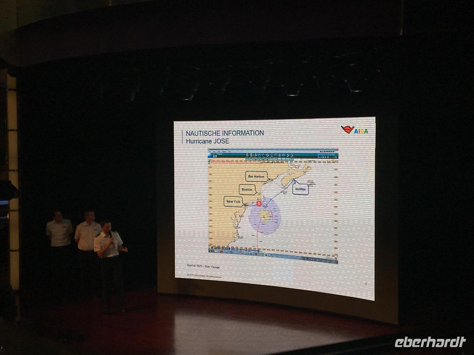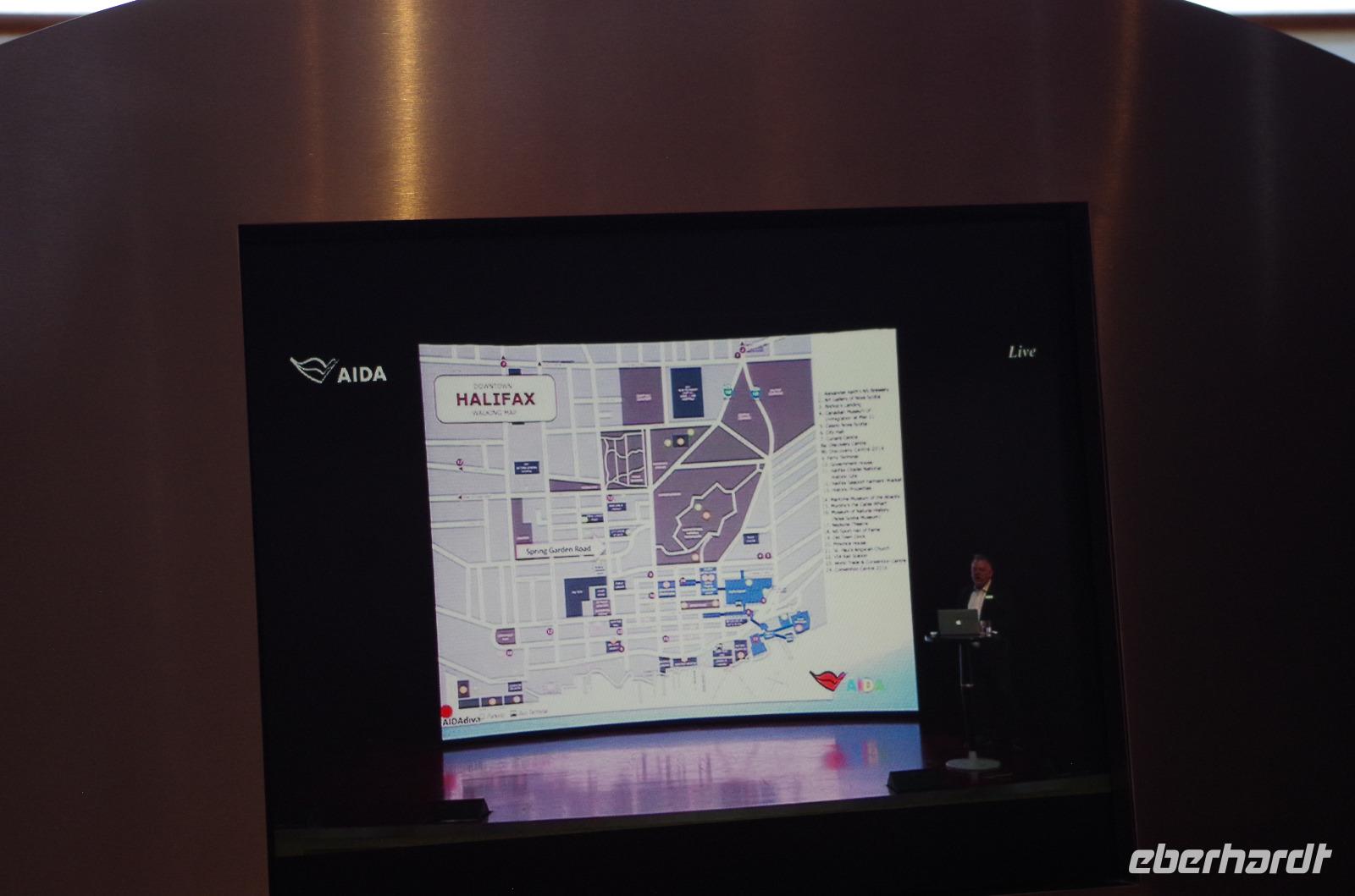Heute haben wir unseren ersten Tag auf See. Das Frühstück gestaltet jeder für sich, auch wenn sich viele Gäste in den Buffet-Restaurants auf Deck 9 und 10 treffen. Wir haben um die 22 Grad und es ist leicht bewölkt. Von New York in den USA bis Halifax in Kanada sind es rund 613 Seemeilen, dies entspricht circa 1.135 Kilometern. Der Hurrikan José hat dafür gesorgt, dass wir zwei Tage später als geplant in New York gestartet sind. Seine Ausläufer werden wir auch heute noch spüren!!! Bereits seit der Nacht ist der Seegang sehr stark, teilweise mit Wellen bis zu fünf Metern. Die ersten Schiffsgäste besorgen sich bereits Tabletten gegen Übelkeit, welche vorsorglich an der Rezeption ausgegeben werden. Der eigentlich an diesem Tag von Eberhardt TRAVEL geplante Sektempfang wird aufgrund des doch ungemütlichen Wellengangs auf einen anderen Tag auf See verschoben. Um 10.45 Uhr findet im Theatrium auf Deck 9 bis 11 der interessante Vortrag "Halifax und Nova Scotia: Rauer Charme und Lebensfreude" von Lektor Boris Henn statt. In den vergangenen Tagen haben wir das Schiff bereits ganz gut kennengelernt. Für die "Neulinge" ist der Anfang oftmals etwas holprig auf so einem großen Schiff, aber unsere Orientierung wird von Tag zu Tag besser. Wichtige Ebenen sind Deck 9 bis Deck 11. Im Theatrium finden viele Veranstaltungen wie Shows, Vorträge und Präsentationen statt. Für einen leckeren Cocktail eignen sich die verschiedenen Bars "Anytime Bar", "AIDA Bar", "Diva Bar", "Time Out Bar", "Vinothek" und "Café Mare". In den Buffet-Restaurants "Markt Restaurant", "Weite Welt Restaurant", das "Bella Vista Restaurant" und die "Pizzeria Mare" können wir zu Mittag oder Abend essen. Im "Markt Restaurant" ist beispielsweise das Abendessen jeden Tag einem anderem Thema gewidmet. Auf unserer Reise genießen wir leckere Gerichte zu den Themen Welcome-Dinner, Weltreise und Farwell sowie Köstlichkeiten der Länder Italien, Portugal, USA, Spanien, Frankreich, Griechenland und auch der Alpen. An Bord gibt es ebenso tolle À-La-Carte-Restaurants wie das Buffalo Steak House, die Sushi Bar und das Gourmet-Restaurant Rossini. Die Öffnungszeiten sind täglich im Tagesprogramm AIDA HEUTE zu finden. Das Programmheft für den nächsten Tag erhalten wir immer direkt auf unsere Kabine am Vorabend. Einige Gäste treffen sich heute im "Weite Welt Restaurant" zu einem köstlichen Mittagessen. Den Nachmittag gestalten die Gäste individuell. Zur Erholung und Entspannung dienen die Sauna oder die Wellness-Oase. Damit wir an Bord auch ja nicht verhungern - wie das funktionieren soll, ist wirklich fraglich - werden wir nachmittags von 15.00 Uhr bis 16.00 Uhr zu Kaffee und Kuchen verführt. Neben einem exklusiven Abendprogramm mit spannender Artistik und mitreißenden Tanzshows werden auf dem Kreuzfahrtschiff auch verschiedene Tanz- und Sportkurse angeboten. Zum entspannten Zeitvertreib dient zudem das Spiel "Shuffleboard". Sportliche Aktivitäten bringen Glücksgefühle hervor und können den vielen leckeren kulinarischen Versuchungen an Bord entgegen wirken. Wer möchte, kann zudem im Fitnessstudio trainieren oder einmal rundum das Schiff auf der Jogging-Strecke laufen. Möchten sich die Gäste im Golf austesten, dann können sie am Schnuppergolf-Simulator teilnehmen. Zum Abendessen treffen sich die Gäste und die Reisebegleitung um 18.30 Uhr an unseren bekannten Rundtischen im "Weite Welt Restaurant" auf Deck 10. Es gibt in den Hauptrestaurants verschiedene Öffnungszeiten, wobei wie bereits erwähnt im "Markt Restaurant" zudem verschiedene kulinarische Themenabende stattfinden. Unsere Kellner sind abermals sehr charmant. Im Anschluss an ein gutes Essen schauen sich die meisten Gäste um 19.30 Uhr Martins Prime Time mit Kapitäns- & Offiziersvorstellung und um 20.30 Uhr die Vorstellungsshow der AIDA-Stars im Theatrium an. Die Sänger und Sängerinnen haben wirklich großartige Stimmen! Um 21.30 Uhr findet in der "AIDA Bar" auf Deck 10 das Alpenglühn mit Entertainment Manager Martin als DJ, den Gastgebern & die Wies'n Eröffnung statt. Wird ein Maß bestellt, dann erhält der Gast einen Jägermeister im Schnapsglas aufs Haus dazu! Wir gönnen uns noch das ein oder andere alkoholische oder alkoholfreie Getränk. Danach wünschen wir uns eine gute Nacht und freuen uns bereits auf Morgen, das wunderbare Halifax in Kanada wartet schon auf uns :-)