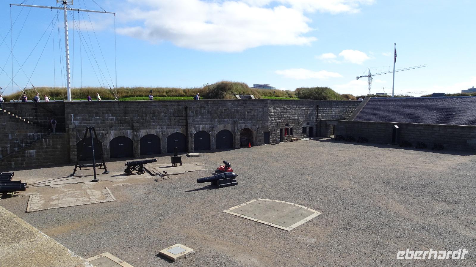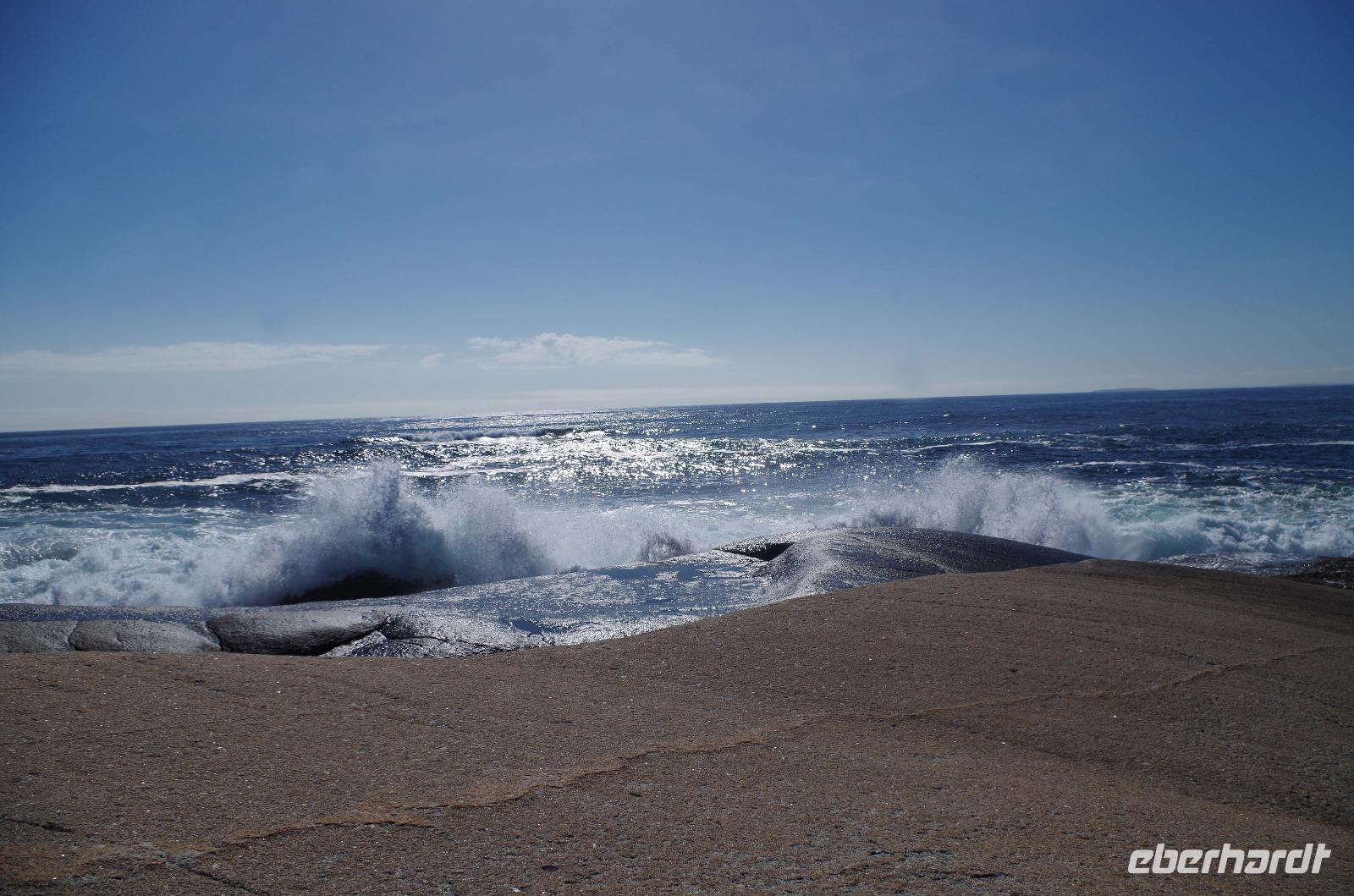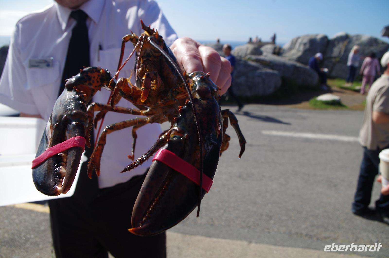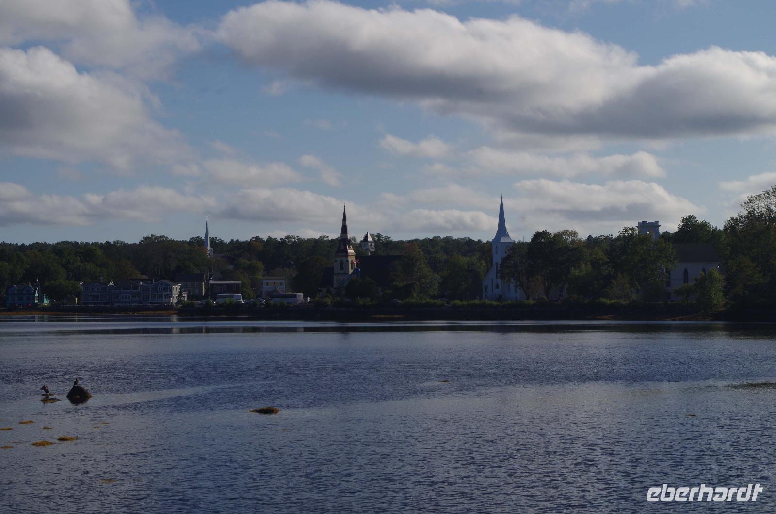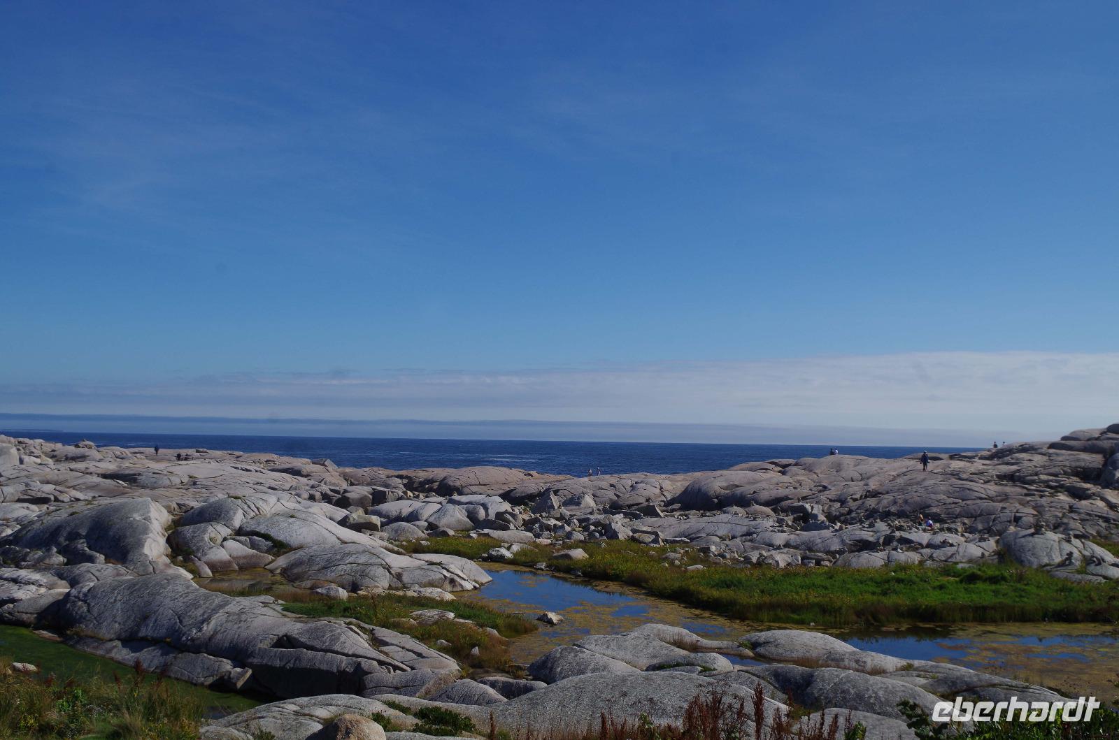 Ein neuer Tag beginnt, ein neues Abenteuer wartet auf uns :-) Heute unternehmen die meisten Gäste einen an Bord gebuchten, teilweise englischsprachigen Ausflug. Zum Frühstück treffen sich einige Gäste im "Marktrestaurant" auf Deck 9. Es ist leicht bewölkt bei fast 24 Grad Außentemperatur, die Wetteraussichten schauen also abermals richtig gut für den heutigen Tag aus :-) Wir erreichen um 12.00 Uhr den Pier 22 der 1749 von Engländern, Schweizern und Deutschen gegründeten Stadt Halifax in Kanada. Erst am Abend gegen 20.00 Uhr werden wir die rund 857 Seemeilen bzw. 1.587 Kilometer bis Québec antreten. Für den Landgang sind die Mitnahme der Bordkarte sowie der Reisepass erforderlich. Sowohl in den USA als auch in Kanada ist es vorgeschrieben, den Original-Reisepass und keine Kopie mit sich zu führen. Gefragt wurden wir danach zwar nicht, aber es ist besser, die geforderten Dokumente mit sich zu führen. Offizielle Währung ist der Kanadische Dollar CAD. Ein Geldwechsel ist an der Rezeption möglich, dabei entsprechen 10 CAD circa 7 Euro. Die Gäste können auch ihre US-Dollar in Euro umtauschen, wobei 10 US-Dollar rund 9 Euro sind. Die Provinz Neuschottland bietet eine rund 10.000 Kilometer lange Küste. In der Hauptstadt leben etwa 375.000 Einwohner. Wichtige Sehenswürdigkeiten sind der Citadel Hill, die Halifax Citadel, der Uhrturm, die St. Paul's Anglican Church, das Province House, der Brewery Market, der Halifax Public Garden sowie das "Museum Pier 21 National Historic Site of Canada". Unsere Eberhardt Gäste haben sich verschiedene Ausflüge ausgesucht. Zu empfehlen sind HFX18 "Die Höhepunkte Neuschottlands" und HFX11 "Die Höhepunkte von Halifax". Um 12.15 Uhr treffen sich neun Reisegäste und eine Reisebegleitung in der AIDA Bar auf Deck 10. Wir haben den Ausflug HFX18 "Die Höhepunkte Neuschottlands" gebucht. Bei diesem siebenstündigen Ausflug werden wir zu den einzelnen kleinen Ortschaften im Bus gefahren und vor Ort haben wir Freizeit zur individuellen Erkundung. Um gemeinsam im Bus zu fahren, treffen wir uns bereits zehn Minuten vor der eigentlichen Uhrzeit am Treffpunkt. Nach Rückfrage durch die Reisebegleitung können wir noch vor allen anderen Teilnehmern zum Bus laufen. Unser Ausflug soll eigentlich um 12.30 Uhr starten, aber diese Zeit werden wir bedauerlicherweise aufgrund einer weniger guten Organisation durch AIDA nicht einhalten. Der Ausgang ist auf Deck 5 bei der Rezeption. Jedoch gibt es nur einen Ausgang sowohl für Gruppen als auch für individuelle Landgänge. Wenn mehrere 100 Menschen gleichzeitig von Bord gehen möchten und es nur einen Ausgang gibt, dann ist natürlich mit ein paar Minuten Wartezeit zu rechnen. Die Gäste stehen teilweise im Treppenhaus bis auf Deck 9 und die Fahrstühle sind überlastet. Erst rund 30 bis 40 Minuten später erreichen wir den Hafen. Wir sind die ersten bei den vier verschiedenen Bussen des Ausflugs HFX18. Natürlich möchten wir gern mit einer deutschsprachigen Reiseleitung im Bus fahren, so dass wir den dritten Bus auswählen. Um 13.00 Uhr startet dann endlich unser Ausflug mit der deutschsprachigen Reiseleiterin und Schweizerin Marian sowie unserer Busfahrerin Alica im Bus Nummer 9. Marian lebt schon über 30 Jahre in Halifax. Dieser 1749 gegründete Ort ist einer der wichtigsten Häfen an der Nord-Ost-Küste von Nordamerika und wir befinden uns momentan am östlichsten Punkt vom Festland sowie am nahesten zu Europa. Aufgrund der Erweiterung des Suezkanals können mehr und mehr Kreuzfahrtschiffe hier anlegen. Die Einmaligkeit des Hafens besteht darin, dass er auch im Winter eisfrei bleibt und nicht auf die Gezeiten angewiesen ist. Den berühmten Pier 21 sehen wir gleich nach unserer Busabfahrt. Von Marian erfahren wir, dass der Pier 21 für Kanada das ist, was Ellis Island für Amerika bedeutet. Bis 1972 sind am Pier 21 bis zu einer Millionen Menschen angekommen, welche dann mit dem Zug größtenteils weiter ins Landesinnere unter anderem nach Québec oder bis in den Westen Kanadas gereist sind. Wir wissen, dass Kanada mit etwa 10 Millionen Quadratkilometern das zweitgrößte Land der Welt ist. Interessant ist sicher auch, dass die Strecke von Halifax nach Vancouver und auch nach London in etwa gleich lang ist. Sie beträgt circa 4.400 Kilometer. Wir fahren zuerst an der Ostküste die "Leuchtturm-Route" entlang zum rund 45 Kilometer entfernten Fischerdorf Peggy's Cove am St. Margarets Bay. Der Name "Leuchtturm-Route" stammt von den mehr als 1.000 Leuchttürmen in Neuschottland. Während der Fahrt erzählt uns Marian unter anderem, dass der durchschnittliche Kaufpreis für ein Haus in Halifax bei rund 310.000 CAD liegt. Auf unserem Weg fahren wir an dichten Wäldern mit Laub- und Nadelbäumen sowie dem bekannten Ahornbaum vorbei. Schließlich ist Kanada auch für seinen sehr süßen Ahornsirup berühmt. Marian erzählt uns, dass es rund 50 bis 75 Jahre dauert, bevor ein Ahornbaum angezapft werden kann und Ahornsirup abgibt. Wer Land in Halifax besitzt, hat auch in der Regel Ahornbäume gepflanzt, so dass jeder Ahornsirup gewinnen und verkaufen kann. Die Saison dauert von Anfang März bis Mitte April. Die Bäume werden mit Schläuchen angezapft und der Saft mit Behältern aufgefangen. Der "Ahornsaft" besteht zu 98 Prozent aus Wasser und zu 2 Prozent aus Zucker. Dieser Saft wird dann eingekocht bis dieser etwa 66 Prozent an Zucker aufweist. Anschließend darf er als "Pure Maple Syrup" verkauft werden, solange keine Zusatzstoffe hinzugefügt worden sind. Viel interessanter ist wohl der Fakt, dass aus einem Ahornbaum eine Flasche von rund 350 Millimeter Ahornsirup pro Jahr hergestellt werden kann. Dies ist wohl der wichtigste Grund dafür, warum Ahornsirup so teuer ist. Dennoch ist Ahornsirup oder auch Ahornbutter ein beliebtes Souvenir an unsere geliebten Daheimgebliebenen. Dabei sei zu erwähnen, dass Ahornbutter keine Butter ist, sondern einfach nur Ahornsirup in fester statt in flüssiger Form. In Halifax sind unt