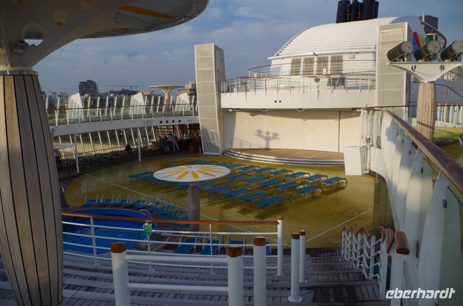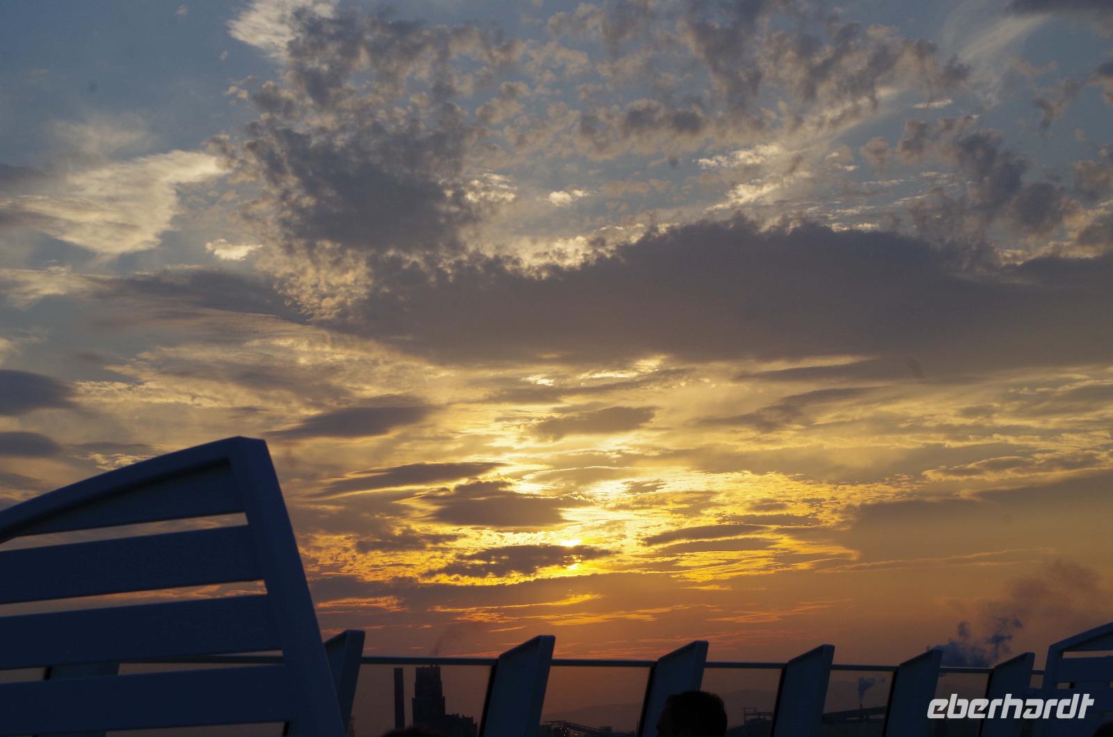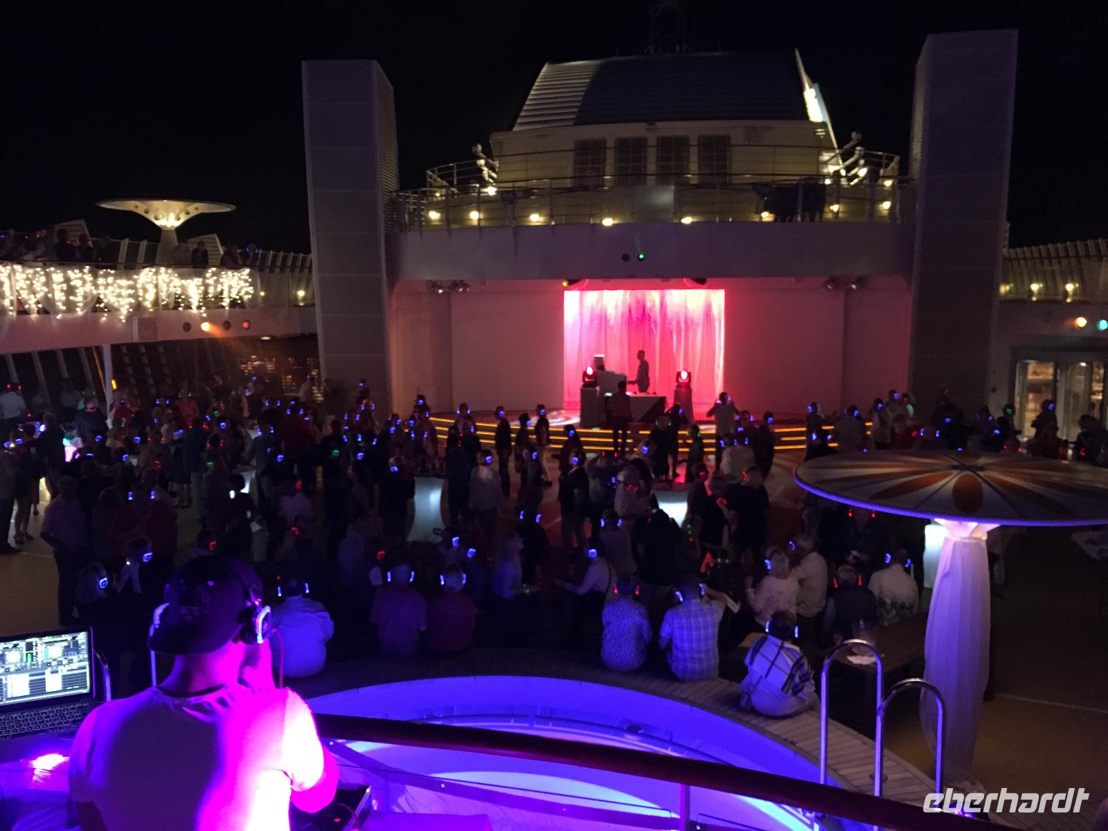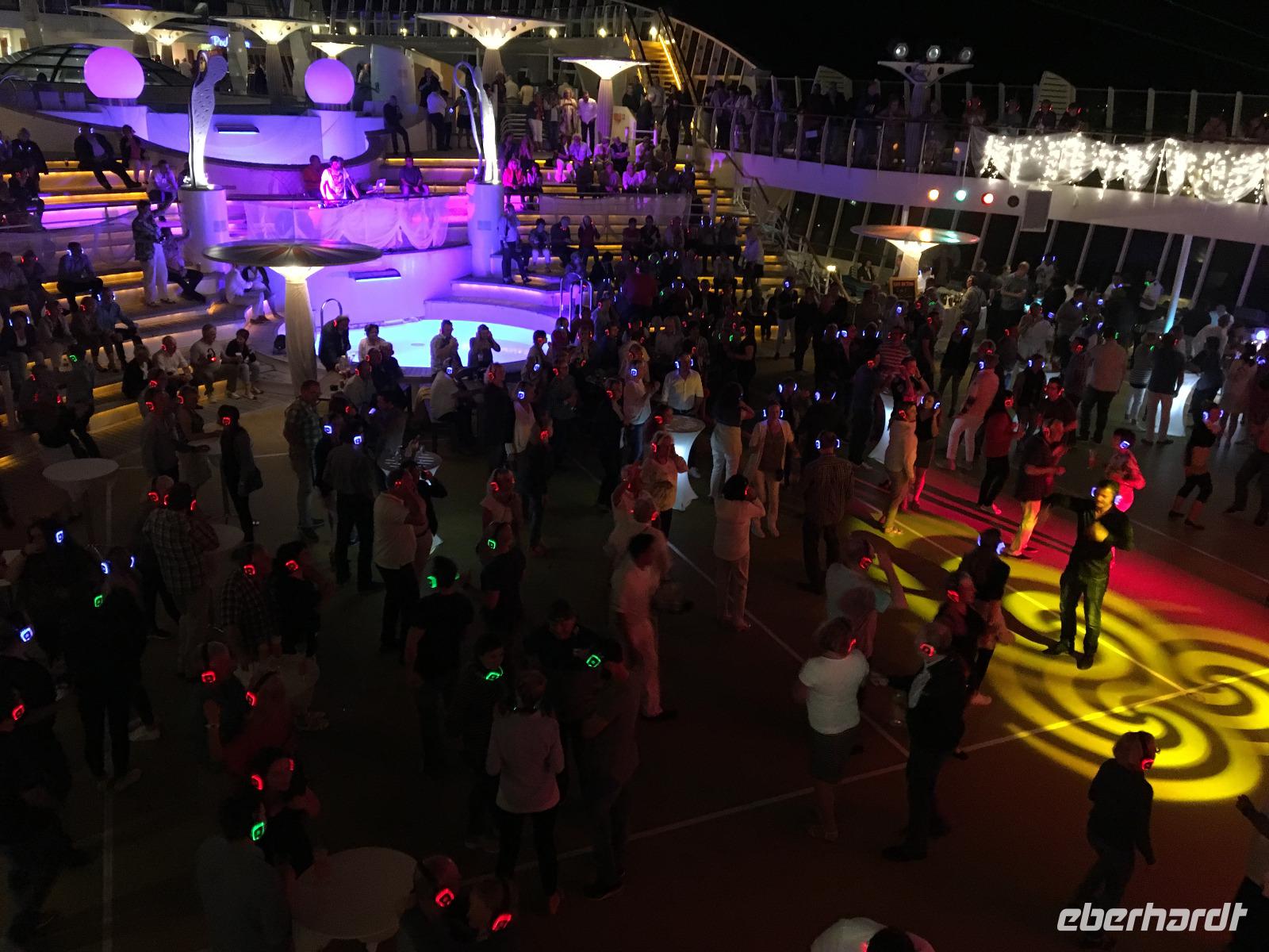 Ein weiterer Tag zur Erholung auf See erwartet uns. Frühstücken können wir heute wieder ab 08.00 Uhr im "Weite Welt Restaurant". Es ist wechselhaft bei rund 22 Grad. Wir erfahren weitere interessante Fakten zur Seemannssprache, welche unter anderem vom Niederländischen, Englischen und Plattdeutsch aufgrund der internationalen Besatzung geprägt ist. Das Bedürfnis nach Sicherheit steht bei der Seemannssprache an erster Stelle. Folglich wurden die Begriffe eindeutig nach Funktion und Art charakterisiert, auch zur Vermeidung einer Mehrdeutigkeit. Die Begriffe Back- und Steuerboard sind uns bestens bekannt. Vom Heck zum Bug gesehen entspricht Backboard "Bd" der linken und Steuerboard "Stb" der rechten Seite. Des Weiteren bedeutet zum Beispiel "achtern" auf einem Schiff "ganz hinten". Das Veranstaltungsprogramm beginnt unter anderem um 10.30 Uhr mit dem unterhaltenden Vortrag "Montreal & Québec: Wo Amerika französisch ist" von Lektor Boris Henn im Theatrium auf Deck 9 bis 11. Zum Mittagessen und Nachmittagskaffee treffen sich einige Eberhardt Gäste abermals im "Weite Welt Restaurant" oder auch im "Bella Vista". Natürlich darf die Erholung und Entspannung an einem solchen Tag nicht zu kurz kommen! Am Nachmittag findet aber noch ein wichtiges Gruppentreffen statt :-) Bereits in der Nacht zuvor haben die Eberhardt Gäste eine Einladung zum (vom ersten Tag auf See verschobenem) exklusiven Sektempfang erhalten. Um 11.30 Uhr treffen wir uns in der AIDA Bar, um gemeinsam beim Eberhardt TRAVEL Sekt Empfang auf eine traumhafte Reise anzustoßen. Das ein oder andere Lächeln entsteht vielleicht schon beim Hören des "Touristengedichts" durch die Reisebegleitung. Es folgt aber noch eine weitere Überraschung! Denn um 17.00 Uhr haben wir ein wichtiges Fotoshooting, wo auch unser erstes gemeinsames Gruppenfoto aufgenommen wird. Wir werden aber nicht allein auf diesem Foto zusehen sein, sondern unser sympathischer griechischer Kapitän Nikos Nitschai wird sich zu uns gesellen. Ein wirklich tolles lustiges Foto von der gesamten Eberhardt Reisegruppe entsteht *freu* Das Abendessen findet wie gewohnt für die meisten Gäste um 18.00 Uhr im "Weite Welt Restaurant" statt. Bei gutem Essen, leckerem Wein und tollen Gesprächen lassen wir einen schönen erholsamen Tag gemeinsam ausklingen. Später am Abend wird um 19.30 Uhr Martins Prime Time gezeigt. Um 20.30 Uhr schauen wir uns "Die Queen-Show: I Want It All" mit den AIDA-Stars im Theatrium an. Musik zum Tanzen bietet ab 21.00 Uhr die Wunschbox mit der Band "Guys and Rosie" in der AIDA Bar auf Deck 10 oder die Black & White Party mit DJ Marcial in der Anytime Bar auf Deck 12.