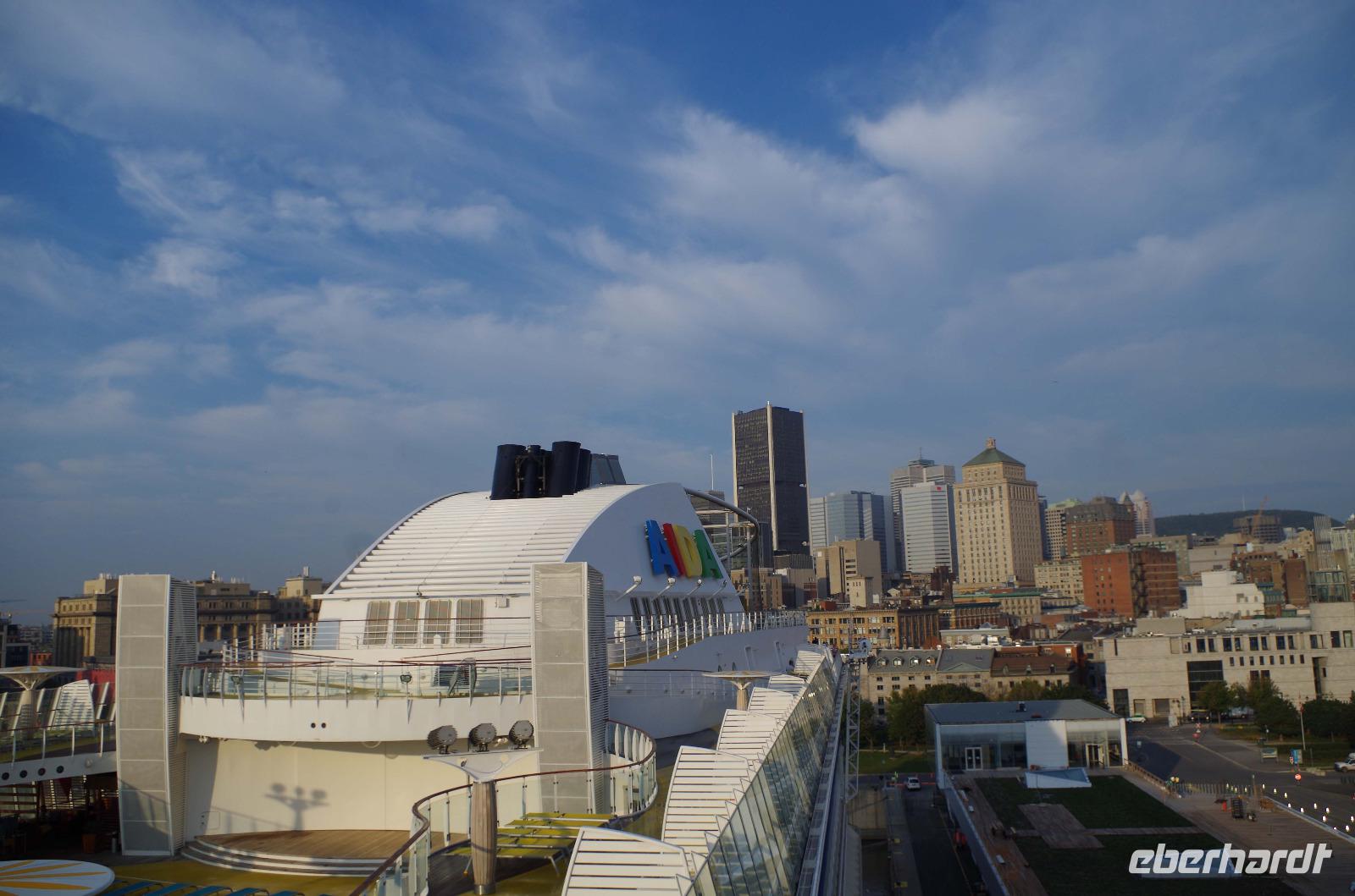Ein weiterer sonniger Tag beginnt :-) Um 08.00 Uhr erreichen wir die zweitgrößte französischsprachige Stadt der Welt, welche aber nicht in Frankreich liegt. Rund 1,6 Millionen Menschen leben in dieser vor 375 Jahren am 17. Mai 1642 gegründeten Metropole am Sankt-Lorenz-Strom. Die AIDAdiva liegt am "Montreal Alexandra Quay, Cruise Terminal 1" an. Es ist teilweise bewölkt bei abermals rund 29 Grad Celsius. Frühstück ist bereits ab 07.00 Uhr im "Markt Restaurant" oder im "Weite Welt Restaurant" möglich. Wie bereits am Vortag treffen wir uns um 08.30 Uhr auf Deck 5 bei der Rezeption, um gemeinsam von Bord zu gehen. Heute findet abermals ein Eberhardt-Exklusiv-Ausflug statt. Bereits nach wenigen Minuten steigen wir in den richtigen Bus und pünktlich um 09.00 Uhr starten wir zusammen mit unserer Reiseleiterin Rosi zur Stadtrundfahrt durch Montreal. Zuerst fahren wir rund 20 Minuten zum sich im Herzen der historischen Altstadt befindenden Platz "Place d'Armes". Hier besuchen wir die beeindruckende Kathedrale "Notre-Dame-Basilika" von innen und auch den Hauptsitz der ersten Bank des Landes, der "Bank of Montreal". Wir erblicken den ersten kanadischen Wolkenkratzer, der 1888 eröffnete "New York Life Building", sowie das Denkmal von Offizier Paul de Chomedey, sieur de Maisonneuve. Er war neben Jeanne Mance ein Mitbegründer der Stadt und bis 1669 der erste Gouverneur von Montreal. Gegen 10.15 Uhr geht unsere Fahrt weiter. Nur wenige Minuten später sind wir der Formel 1 sehr nah, in dem wir über die Formel-1-Rennstrecke "Circuit Gilles-Villeneuve" fahren. Unterwegs zum Mount Royal Park legen wir einen kurzen Fotostopp mit tollem Blick auf Montreal ein. Vom Hausberg Mont Royal, von welchem die Metropole auch ihren Namen erhalten hat, können die Skyline der Metropole und der Sankt-Lorenz-Strom sehr gut gesehen werden. Rund 1,5 Stunden später erreichen wir den Mount Royal Park und unternehmen einen entspannten Spaziergang zum "Chalet du Mont-Royal". Anschließend fahren wir mit dem Bus zur Untergrundstadt von Montreal, wo wir entlang einer Vielzahl an Shoppingmöglichkeiten vorbeilaufen. Zurück im Hafen pünktlich um 14.00 Uhr endet unser exklusiver Ausflug und wir verabschieden uns freundlich von unserer deutschen Reiseleiterin Rosi. Sehenswert ist sicherlich auch der rund 748.600 Quadratmeter große und weltweit zweitgrößte Botanische Garten "Jardin botanique de Montréal", welcher aus 30 Themengärten und zehn Gewächshäusern besteht. Während sich die Gäste ein verspätetes Mittagessen oder Kaffee und Kuchen im "Weite Welt Restaurant" gönnen, spazieren einige Gäste direkt im Anschluss an Stadtrundfahrt durch diese faszinierende Metropole, unter anderem auch über den Marktplatz "Place Jacques-Cartier" mit dem Denkmal von Admiral Nelson vorbei. Am heutigen Tag werden sicherlich auch die letzten Souvenirs für unsere geliebten Daheimgebliebenen erworben :-) Zurück an Bord nehmen wir um 18.00 Uhr am letzten Abend an den uns bekannten Rundtischen im "Weite Welt Restaurant" unseren Sitzplatz ein und genießen ein sehr gutes Abschiedsdinner. Um 19.00 Uhr wird im Theatrium "Ihr Reisefilm: Unvergessliche Momente" in vollständiger Länge gezeigt. Da die Leipziger Gäste aufgrund der Flugverspätung keinen so schönen Start in unsere gemeinsame Reise gehabt haben, werden sie von Eberhardt TRAVEL heute auf einen leckeren Cocktail, Bier oder Wein eingeladen. Wir stoßen rückblickend auf eine wirklich sehr schöne Reise an. Die offizielle Verabschiedung durch den General Manager Kai Botschek und Entertainment Manager Martin Bechtel mit anschließender Farewell-Show "Fireworks & Poolparty mit DJ Marcial" beginnt um 21.30 Uhr. Wir lassen den letzten Abend auf der AIDAdiva dann noch gemeinsam bei einem von AIDA spendierten Glas Sekt zum Abschied auf dem Pooldeck 11 ausklingen.