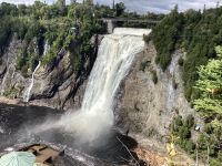 Nachdem wir uns mit dem historischen Teil der Stadt vertraut gemacht haben, fahren wir zum Wasserfall Montmorency. Dieser hat gleich zwei Besonderheiten. Er ist 30 Meter höher, als die Niagarafälle und er gehört den Kanadier ganz allein. Nach diesen Ausflug in die Natur, bei dem nun tatsächlich die ersten Blattverfärbungen entdeckt werden, geht es zu unserem Hotel. Leider sind noch nicht alle Zimmer bezugsfertig. Wir lösen dies jedoch alle gemeinsam, indem Koffer in schon fertige Zimmer untergestellt werden. Dann geht es auch schon wieder hinaus, schließlich lockt das schöne Wetter und der kleine Hunger meldet sich auch. Um diesen zu stillen, müssen wir wahrlich nicht weit gehen, schließlich bietet sich im Umkreis des Hotels so ziemlich alles, was der Magen begehrt.