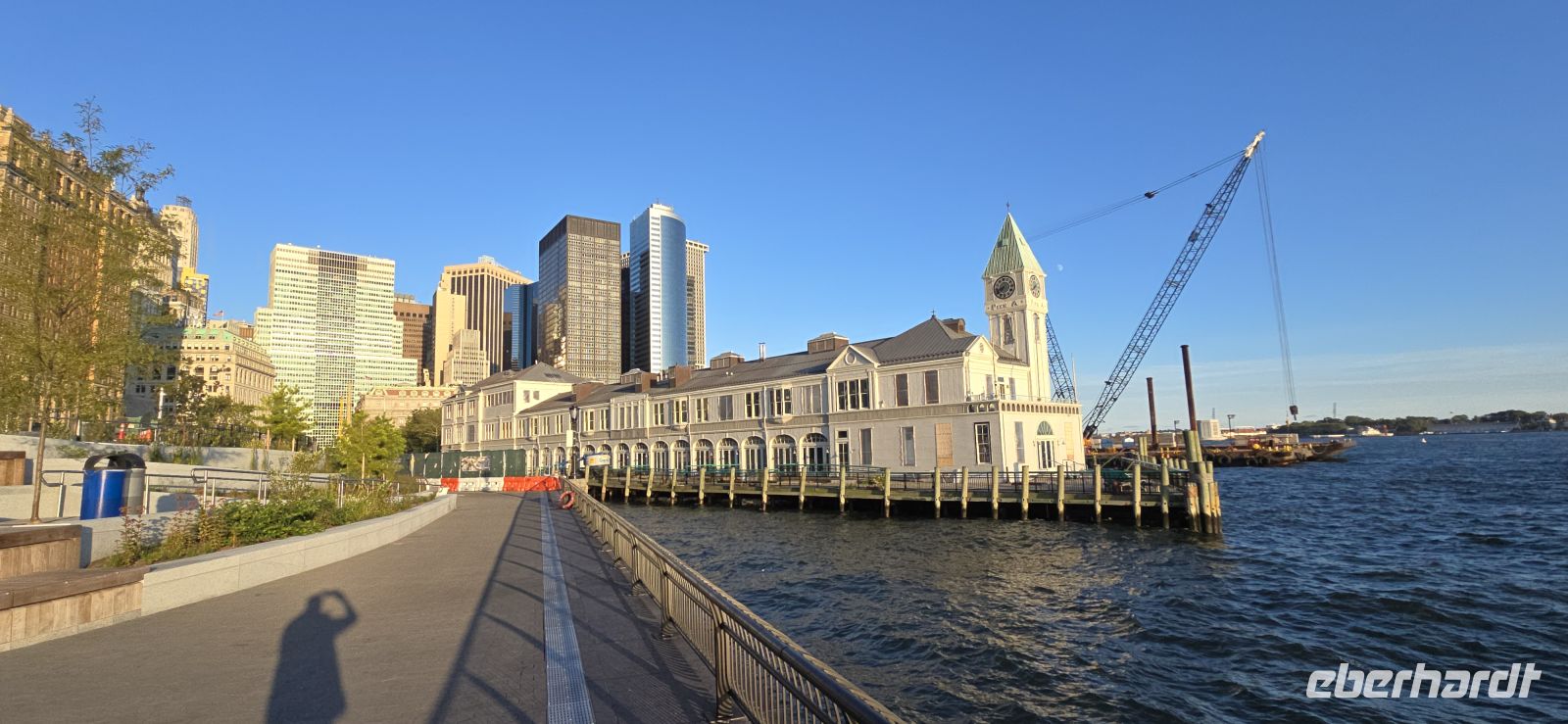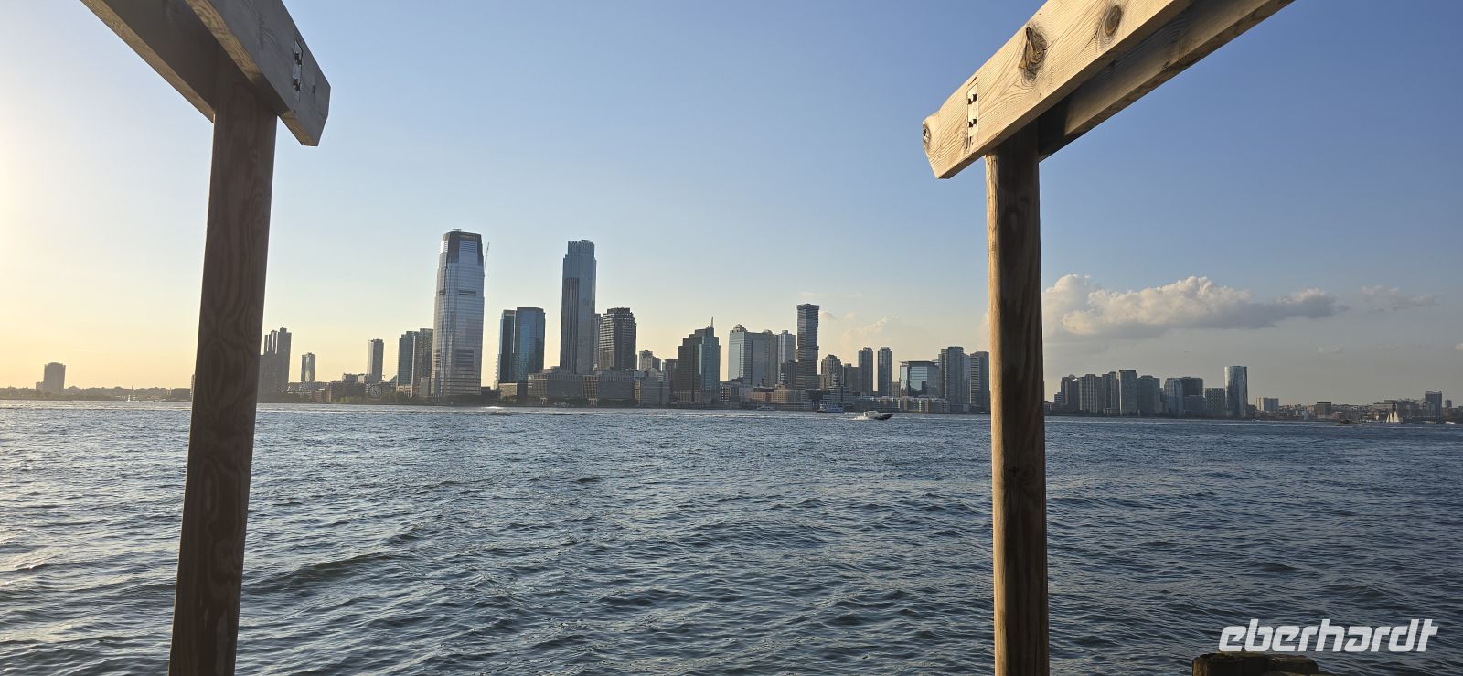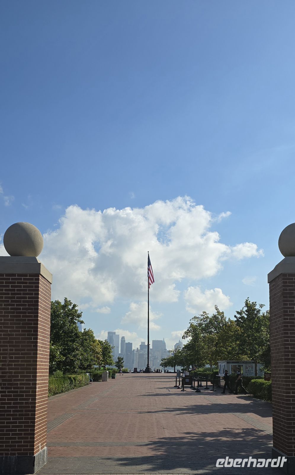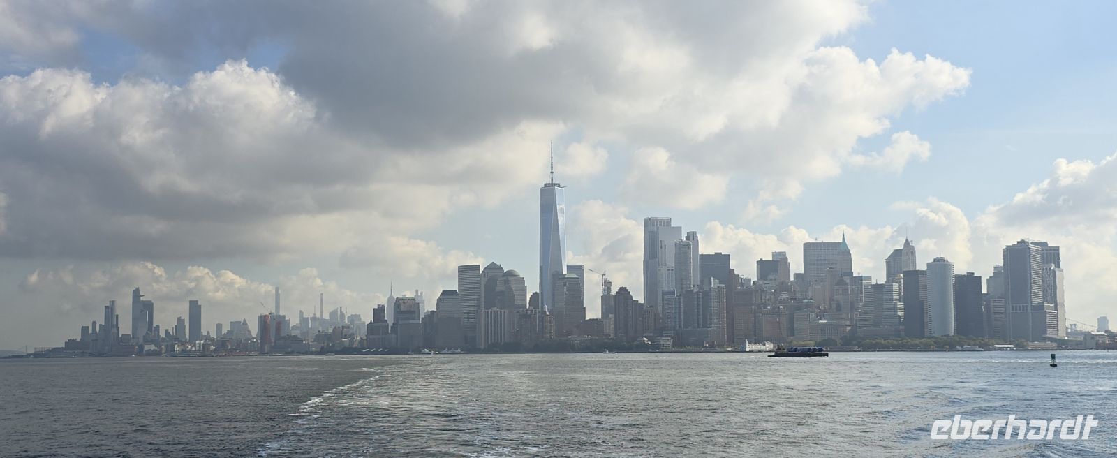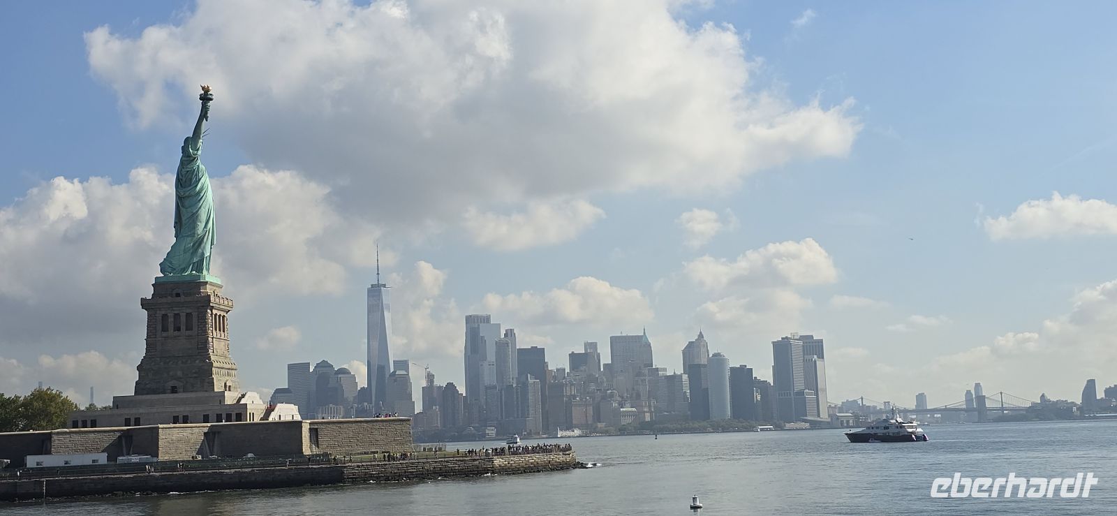 Von dort aus spazierten wir gemeinsam zum Fähranleger im Battery Park. Trotz der vielen Menschen ging die Sicherheitskontrolle erstaunlich zügig, und wir hatten Glück: Unsere Gruppe schaffte es rechtzeitig auf die frühe Fähre. Schon während der Überfahrt eröffneten sich großartige Ausblicke auf Manhattan und die Bucht – ein Moment, der uns alle sofort in Reisestimmung versetzte.