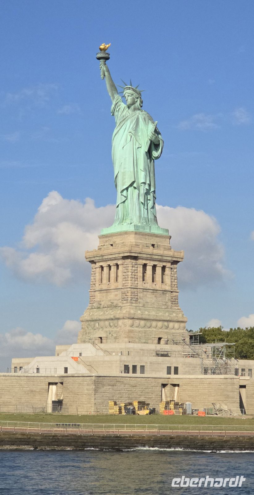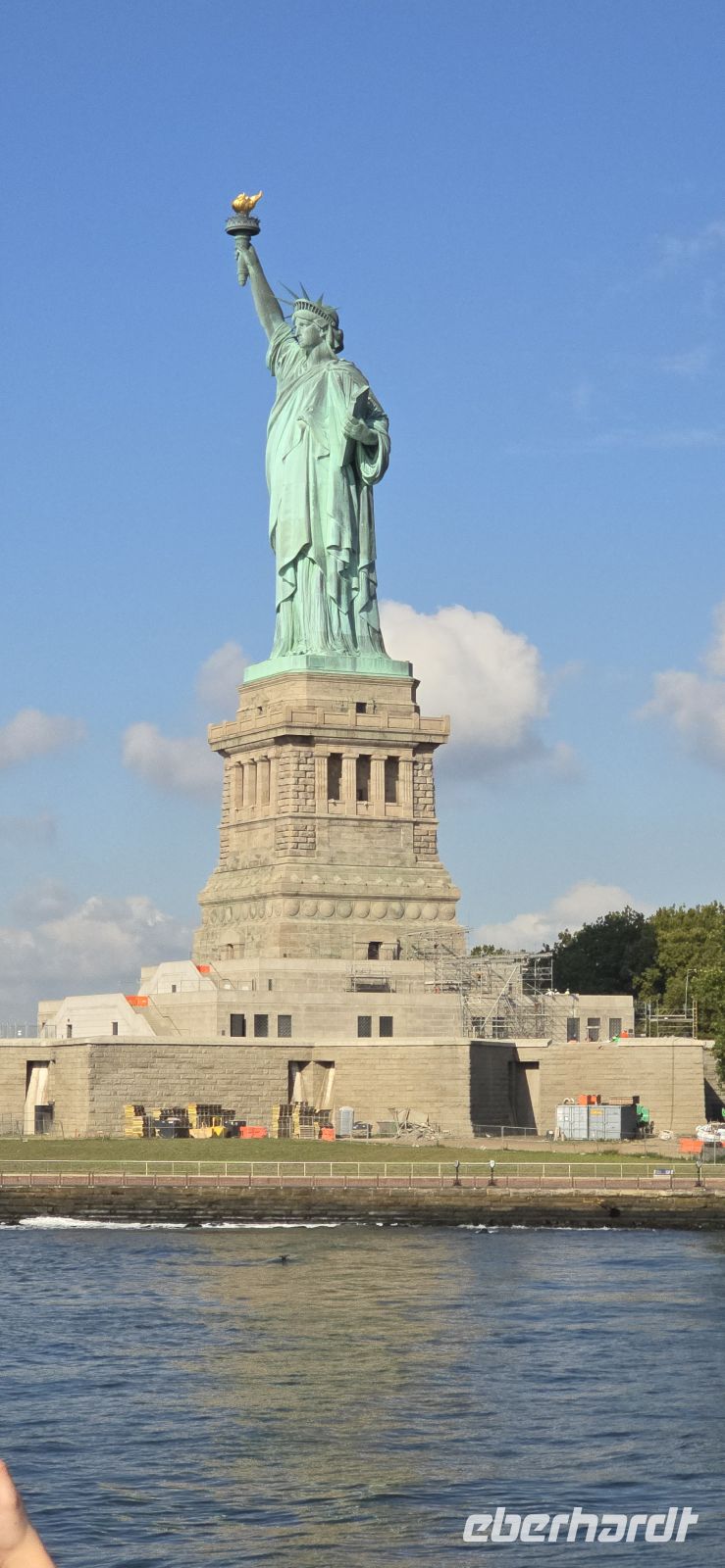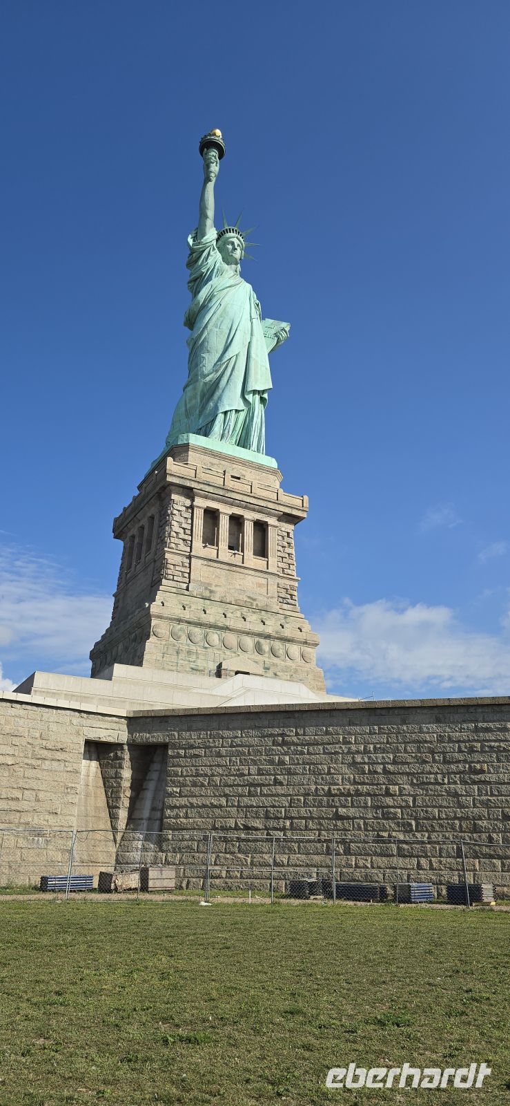 Auf Liberty Island angekommen, bot sich die Gelegenheit für die ersten Erinnerungsfotos mit der Freiheitsstatue. Majestätisch erhob sie sich vor uns – ein Symbol, das man schon tausendmal gesehen hat und das doch erst beim persönlichen Erleben seine ganze Wirkung entfaltet.
