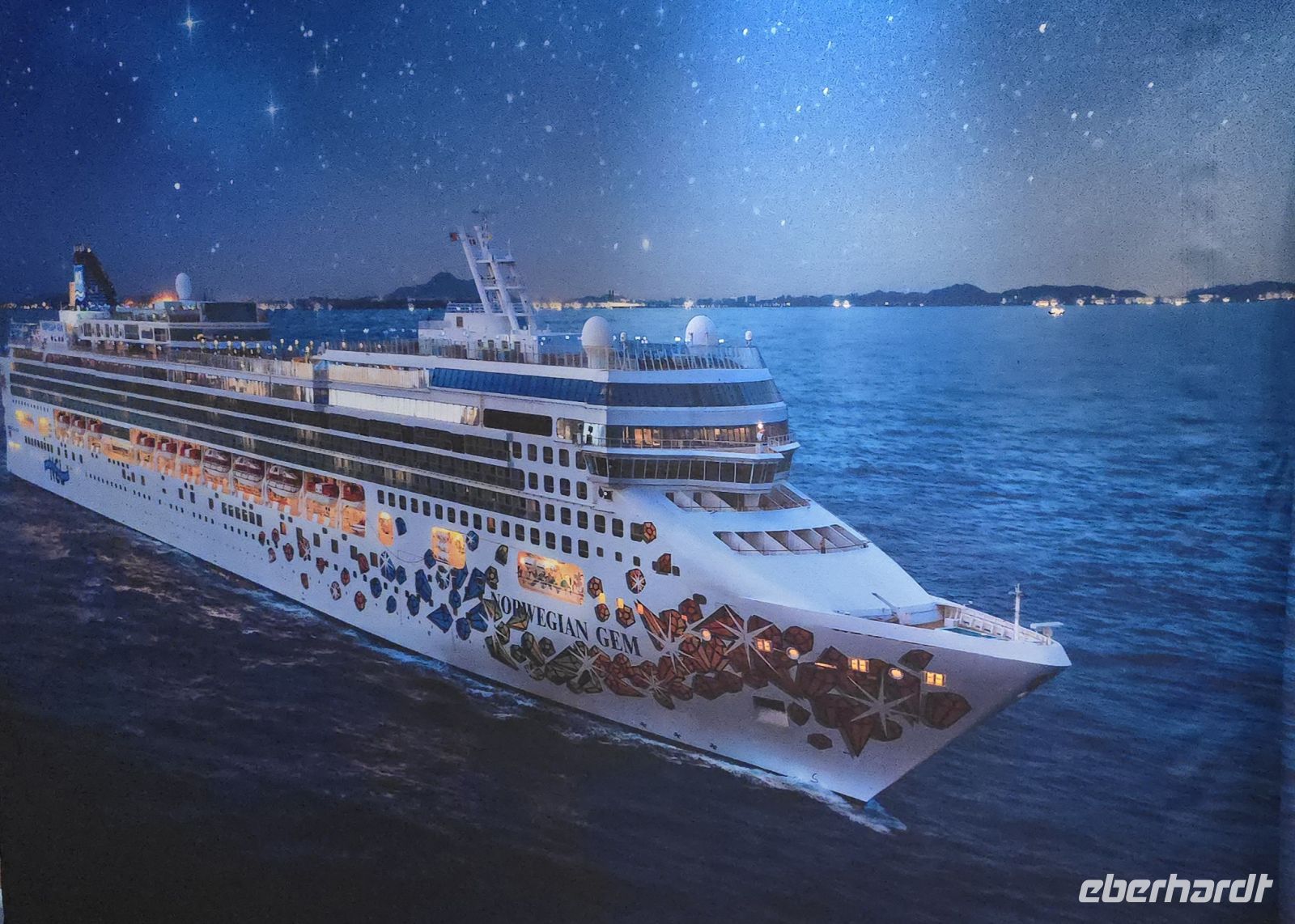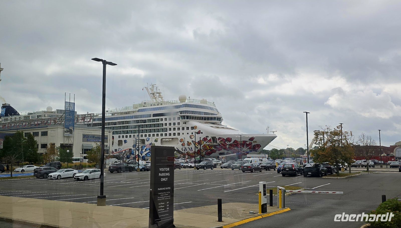 Nach einer kurzen Pause bei New Haven – mit Kaffee, Donuts, McDonald’s und der Gelegenheit für WLAN und sanitäre Stopps – setzten wir die Fahrt fort. Gegen Mittag erreichten wir das Kreuzfahrtterminal in Boston. Zunächst hieß es Gepäck abgeben, Kofferanhänger anbringen, die Pässe bereithalten und den Sicherheitscheck durchlaufen. Alles ging erstaunlich reibungslos, sodass wir schon kurz darauf an Bord der Norwegian Gem waren.