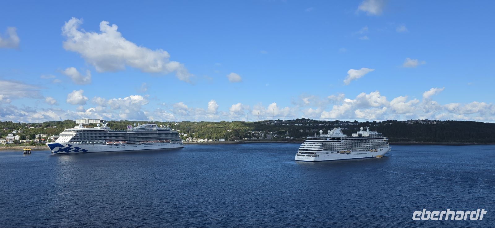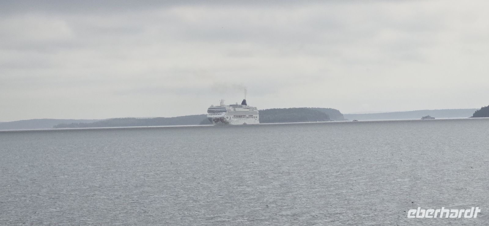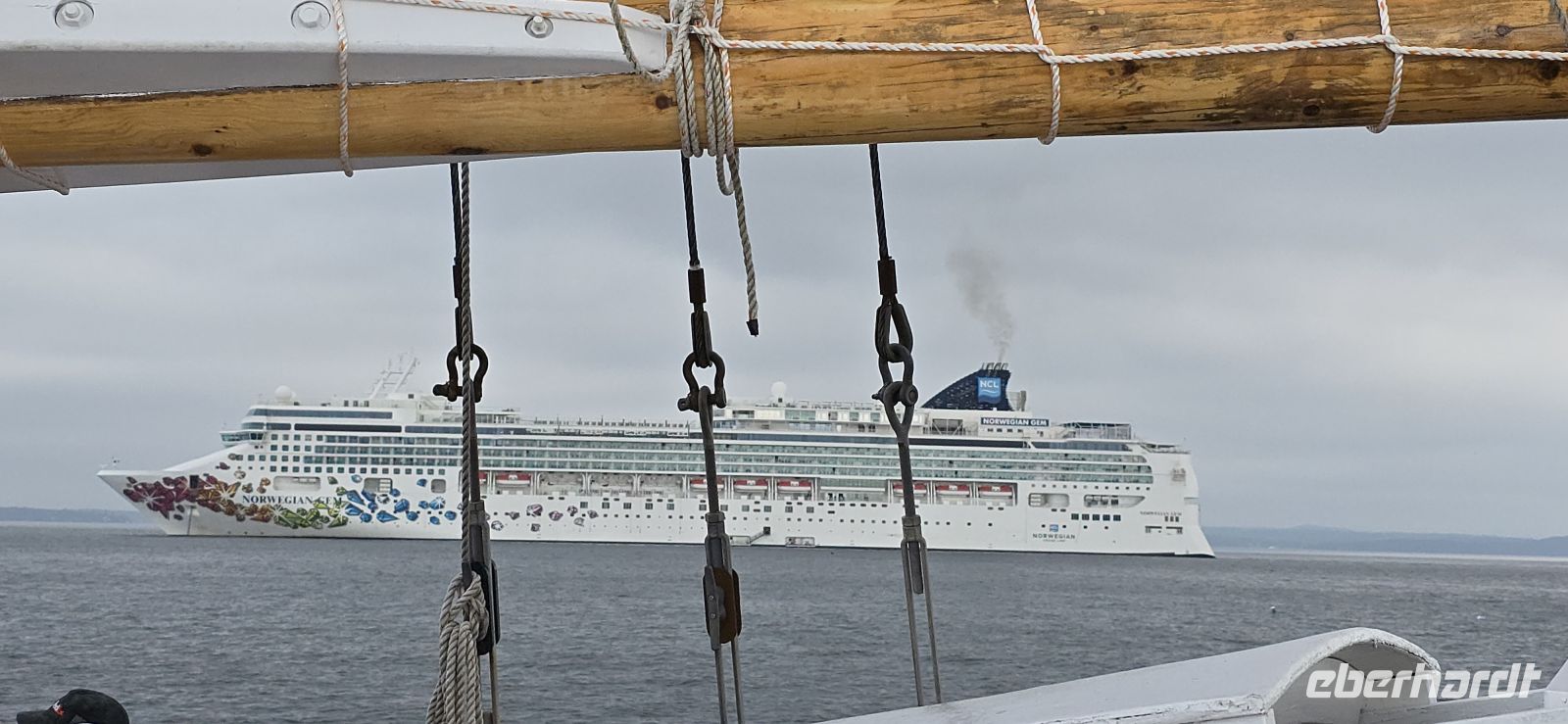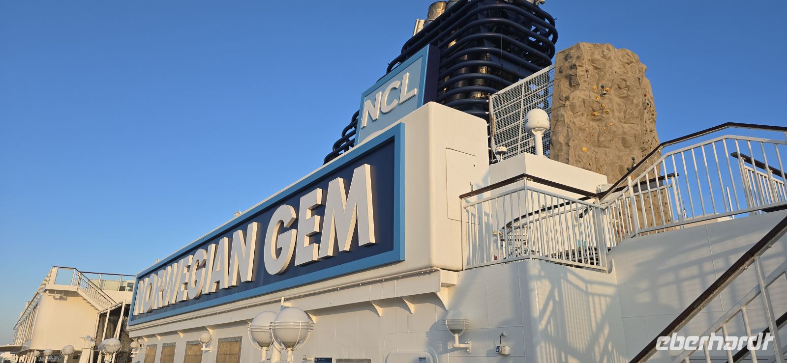 Von Land aus haben wir immer wieder fantastische Blicke auf unser Schiff, die *Norwegian Gem*, bevor uns die Tender wieder zurück an Bord bringen. Dort klingt der Nachmittag entspannt bei Kaffee und einem ruhigen Moment an Deck aus.