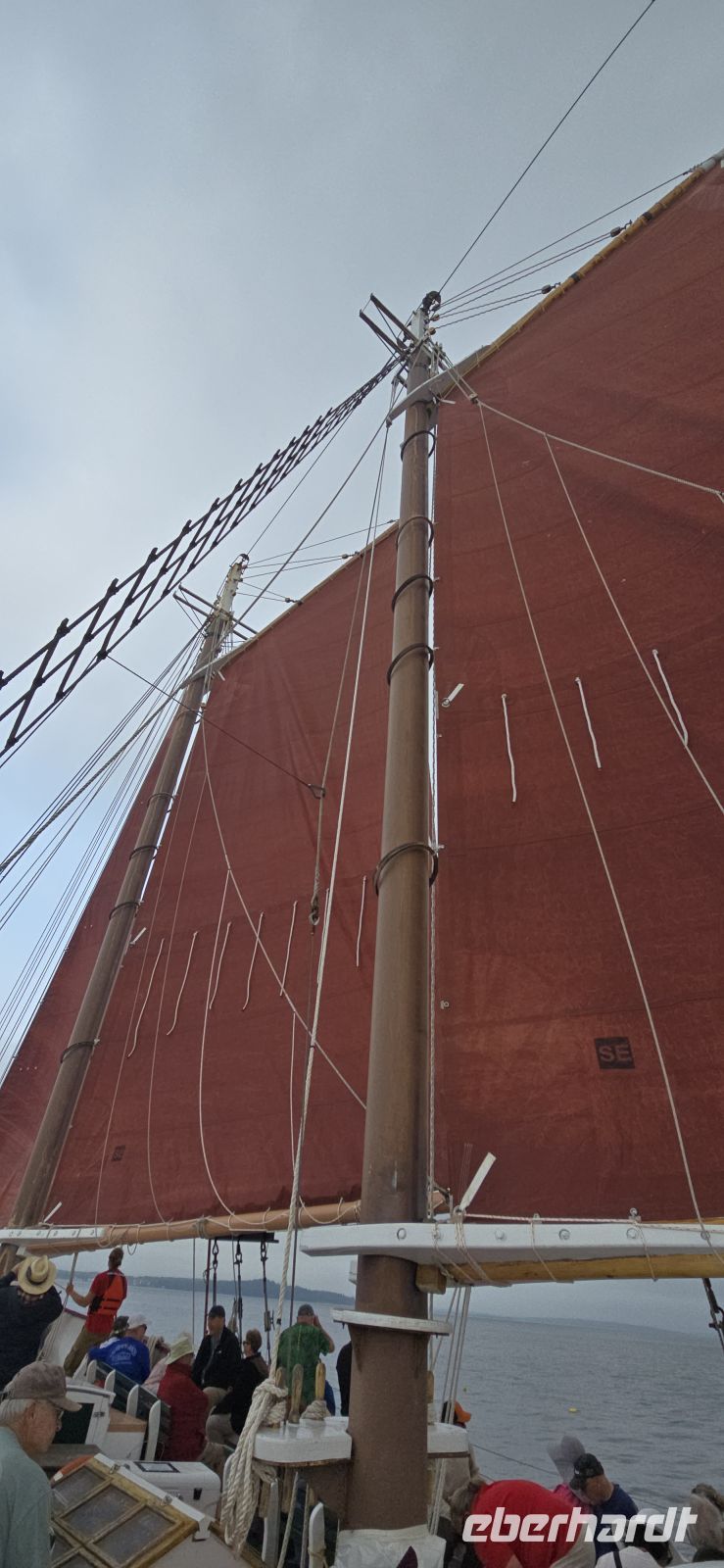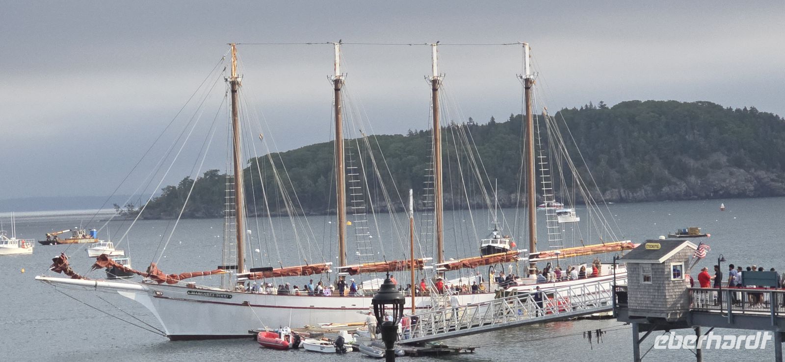 Der Vormittag stand ganz im Zeichen von Natur und maritimer Atmosphäre. Zunächst führte uns eine Busfahrt durch den Arcadia Nationalpark, wo wir in etwa anderthalb Stunden die Schönheit der zerklüfteten Küstenlandschaft, tiefgrüner Wälder und malerischer Ausblicke genießen konnten. Danach erwartete uns ein ganz besonderes Erlebnis: eine Fahrt auf dem viermastigen Schoner Margaret Todd. Unter vollen Segeln glitten wir durch die Bucht von Bar Harbor – begleitet von Möwen, Wasservögeln und dem Anblick von Robben, die sich neugierig im Wasser tummelten. Ein unvergesslicher Moment war auch der Blick zurück auf die Norwegian Gem, die majestätisch vor Anker lag.